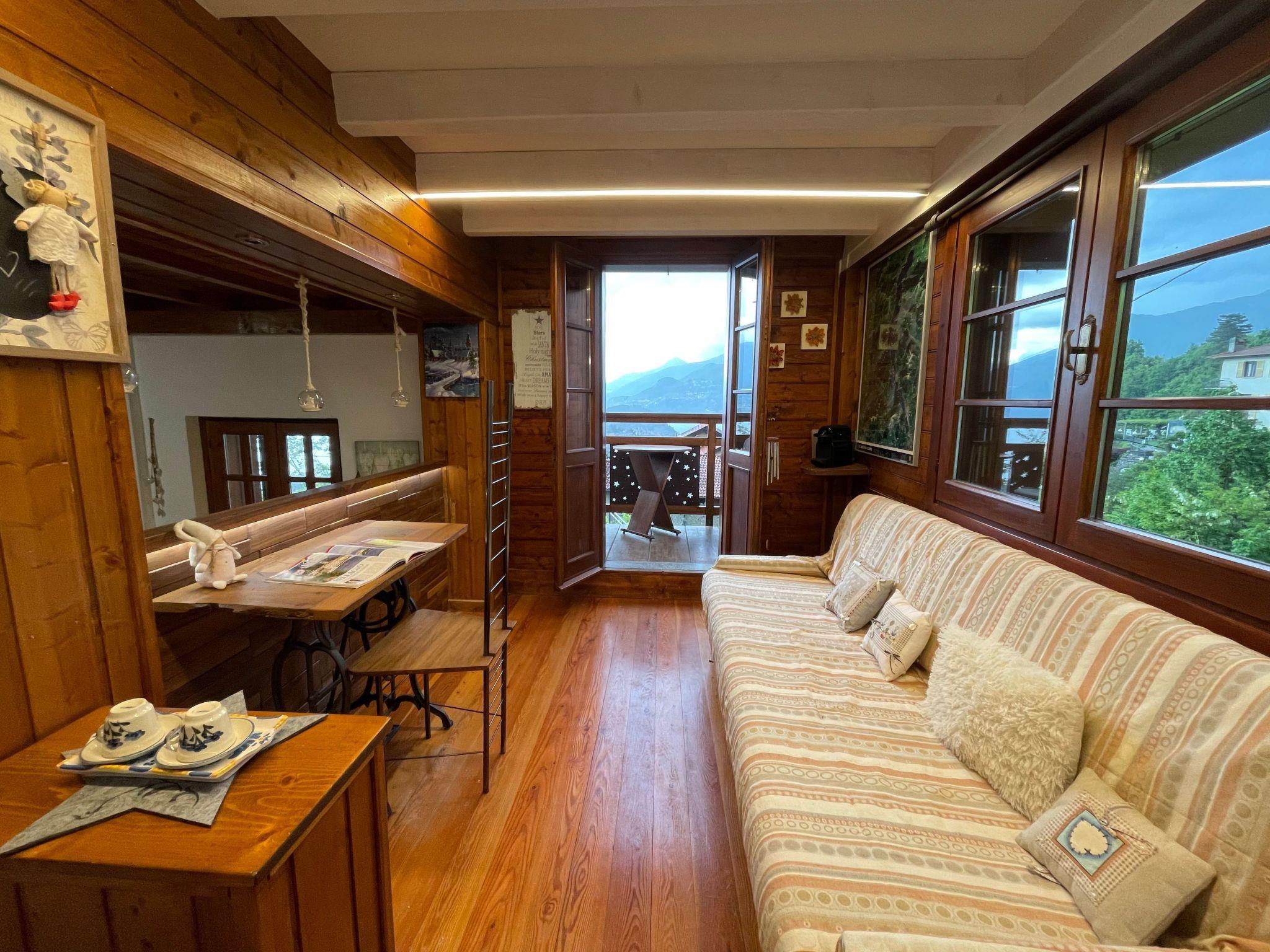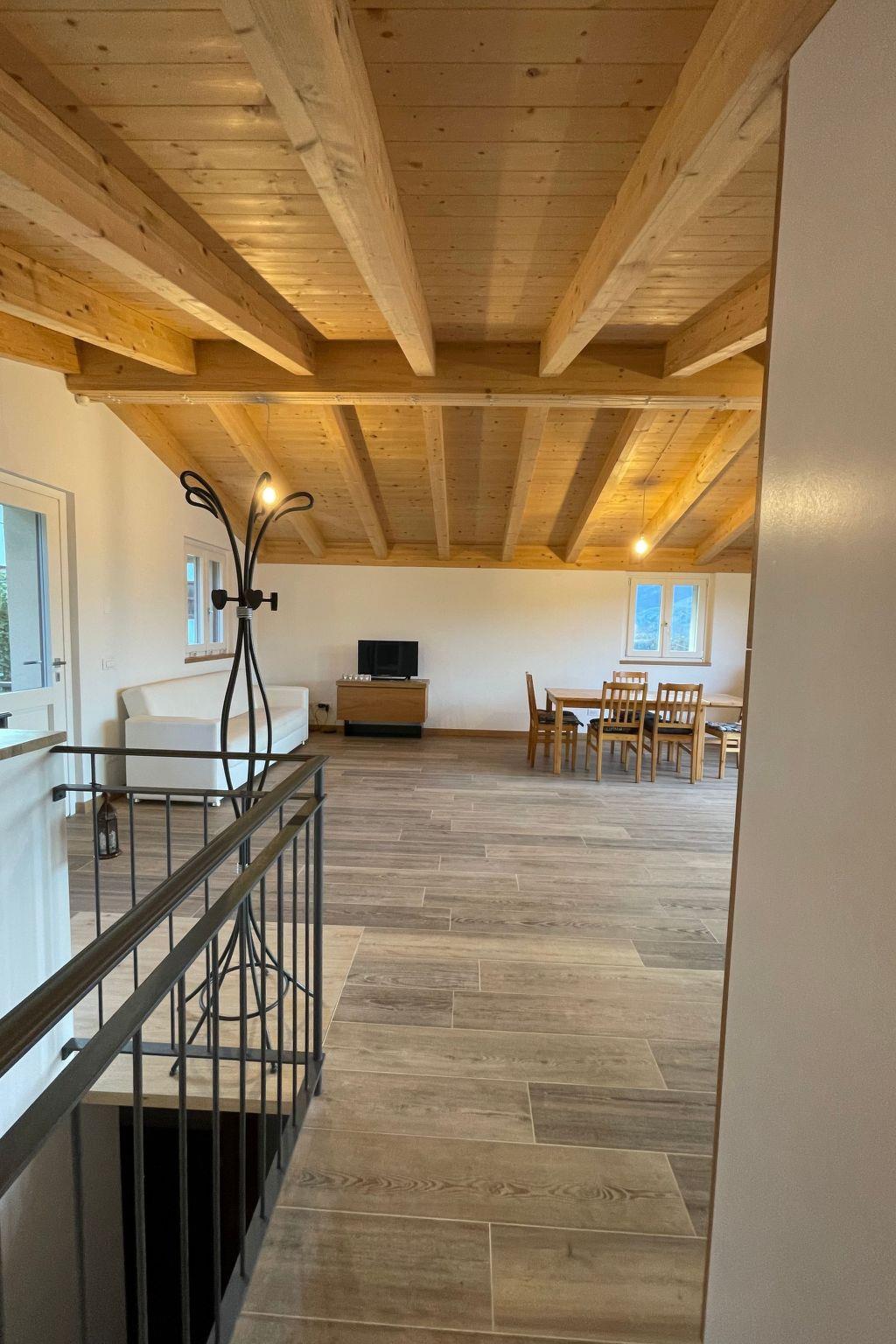 On the first floor there is a large 50sqm open space with living room, dining area, well-equipped kitchen and a bathroom. In addition there is a large balcony with a view of the lake and mountains
