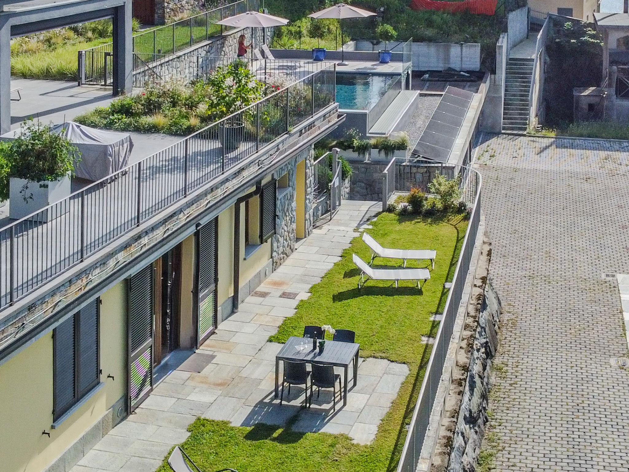 Comfortable hillside complex "La Terrazza sul Lago". 2 houses in the residence. In the hamlet Lezzeno 3 km from the centre of Bellano, 7 km from the centre of Varenna, 84 km from the centre of Milano, in a sunny, elevated position on a slope, 3 km from the lake. For shared use: swimming pool (8 x 3 m, depth 140 cm, seasonal availability: 15.May. - 30.Sep.). Outdoor shower. Private: property 80 m2, meadow. In the house: storage room for bicycles. Room cleaning on request (extra). Stepped path (6 steps) to the house. Parking. Shop 3 km, supermarket 3 km, restaurant 2 km, bus stop 50 m, railway station "Bellano" 3 km, ferry "Bellano" 3 km, pebble beach "Lido di Bellano" 3 km. Surf school 3 km, sailing school 3 km. Nearby attractions: Santuario Madonna delle Lacrime, Orrido di Bellano, Castello di Vezio Varenna, Cascata dell Acquafraggia Chiavenna. Well-known lakes can easily be reached: Lago di Mezzola. Hiking paths: Sentiero del Viandante, Monte Muggio, Monte Legnone.
