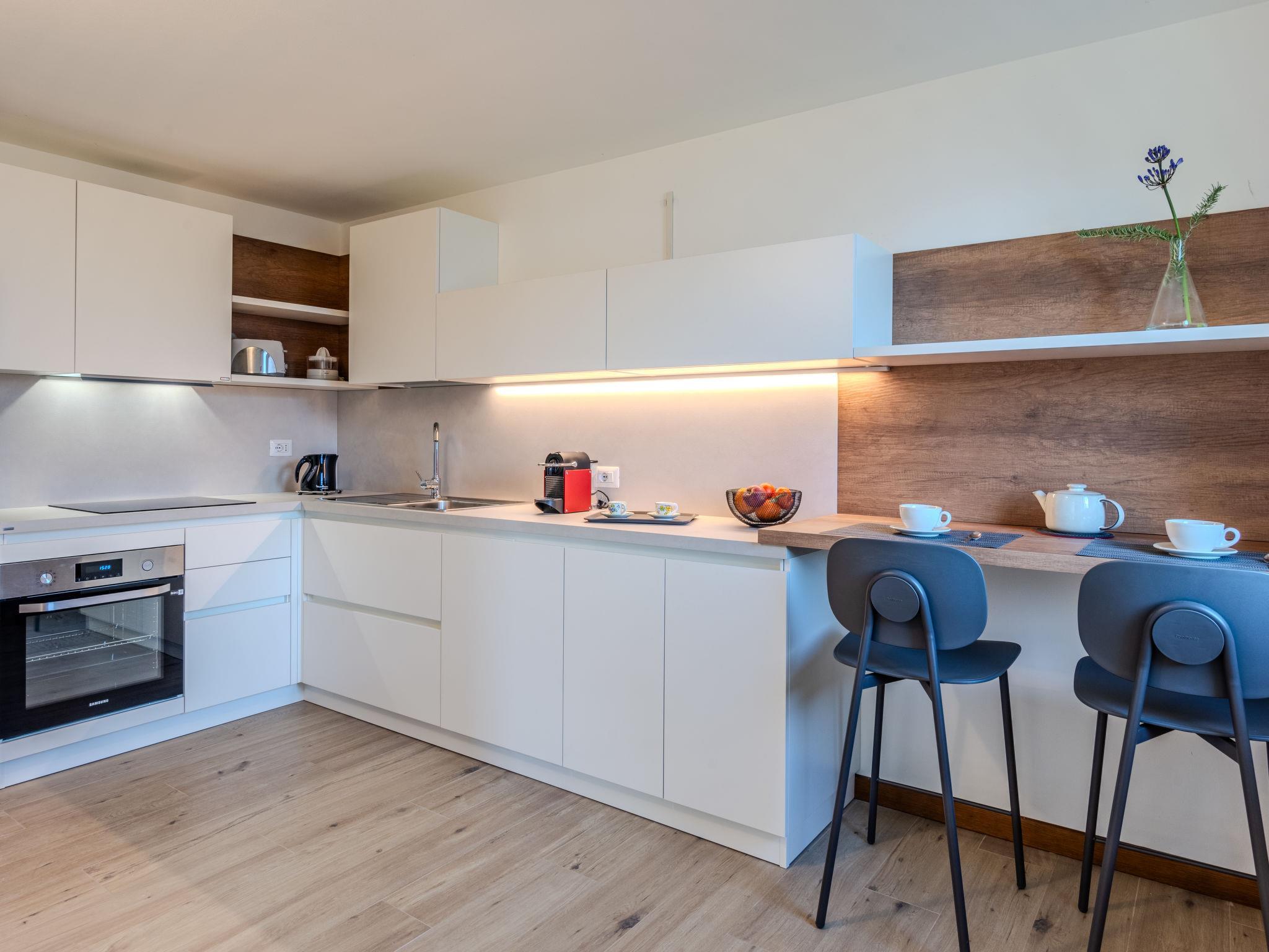 3-room house 90 m2, on the upper ground floor. Modern and tasteful furnishings: open living/sleeping room with 1 double sofabed, dining table and TV. Exit to the garden. 1 double bedroom. 1 room with 2 beds. Kitchen (oven, dishwasher, 4 induction hot plates, toaster, kettle, electric coffee machine, Capsules for coffee machine (Nespresso) extra). Shower/bidet/WC. Patio. Terrace furniture, electric barbecue, deck chairs (2). Very beautiful view of the lake and the mountains. Facilities: washing machine, children's high chair, baby cot for up to 2 year olds, hair dryer. Internet (WiFi, free). Parking (1 car). Please note: non-smokers only. Fire extinguisher. Underfloor heating/cooling. IT097008C29RP3ULFB