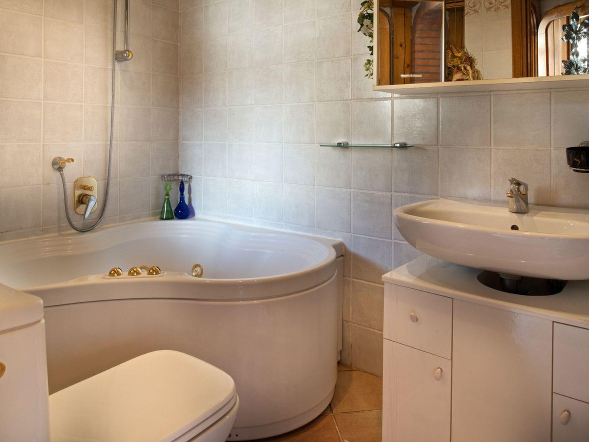The interior of this three-storey gem is a real experience. On the ground floor, the rustically furnished living/dining room with open-plan kitchen and fireplace promises cosy hours. A highlight is the luxurious bathroom with bath, shower and jacuzzi as well as the adjoining conservatory, which is ideal for dining. The latter creates a warm atmosphere with its lovely furnishings. On the first floor there is a spacious bedroom with a large double bed, wardrobe, chest of drawers and TV, which offers a wonderful view of the mountains. The second floor serves as another living room with convertible single beds, an additional children's bed and a cosy TV corner.
