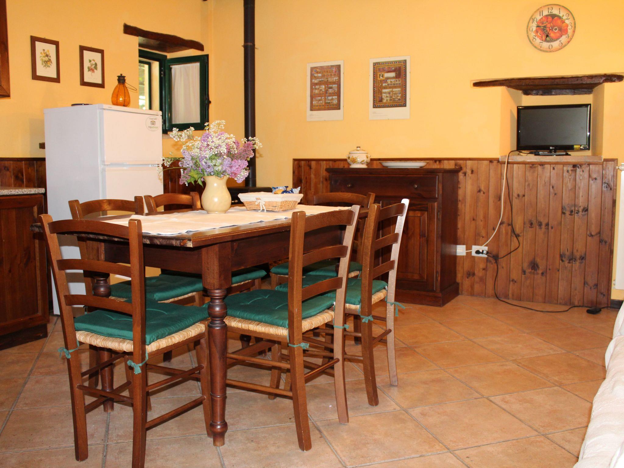 The interior of the flat is designed to make you feel immediately at home. Furnished with care, it offers a spacious triple room with a double bed and a single bed, ideal for families or groups of friends. The bathroom is equipped with all necessities, while the kitchen, complete with living room, invites for shared moments in front of the wood-burning stove. This family environment is perfect for relaxing after a day of exploring.