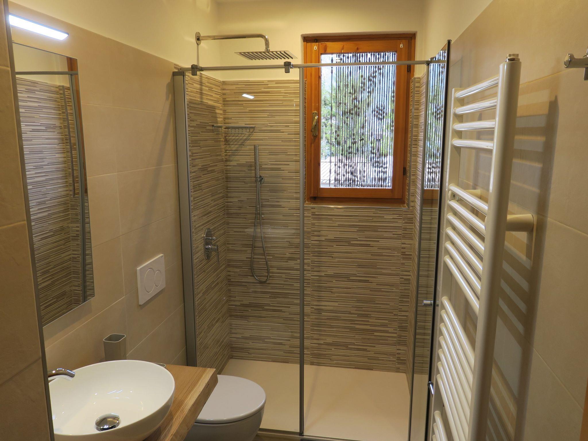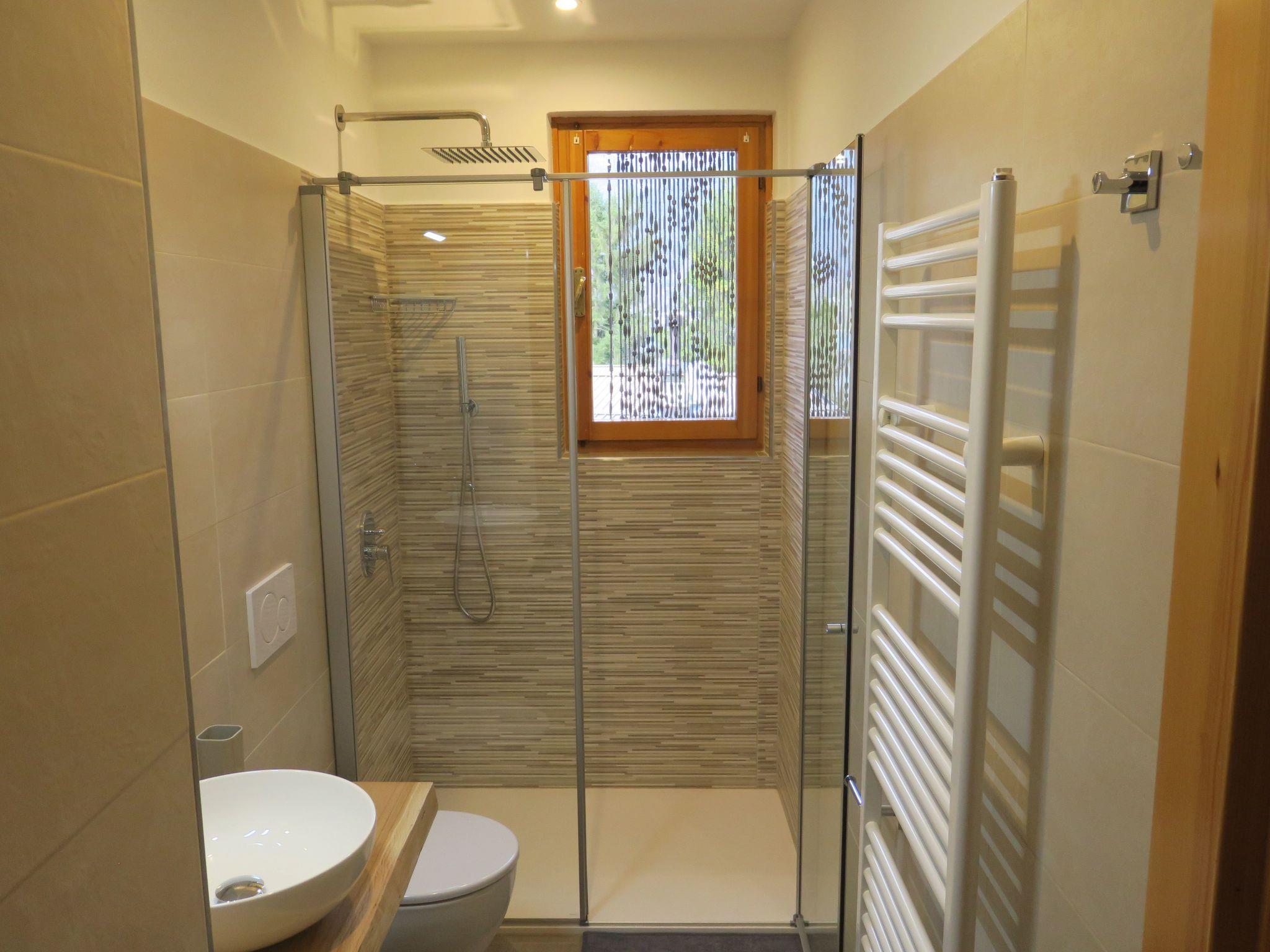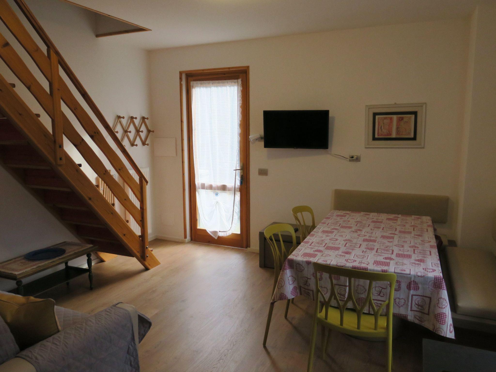 The interior of the flat is neat and cosy. On the first floor, you will find a living room furnished with a table, benches and chairs, a comfortable sofa and a satellite TV. The kitchenette is fully equipped with a fridge, freezer, oven, induction hob and dishwasher. Not to mention the coffee machine, indispensable for a good start to the day. Completing the floor is a double bedroom with balcony and a bathroom with spacious shower and toilet. Going up the internal wooden staircase, you reach the attic floor, where there are two further double bedrooms and a second bathroom with shower and toilet.