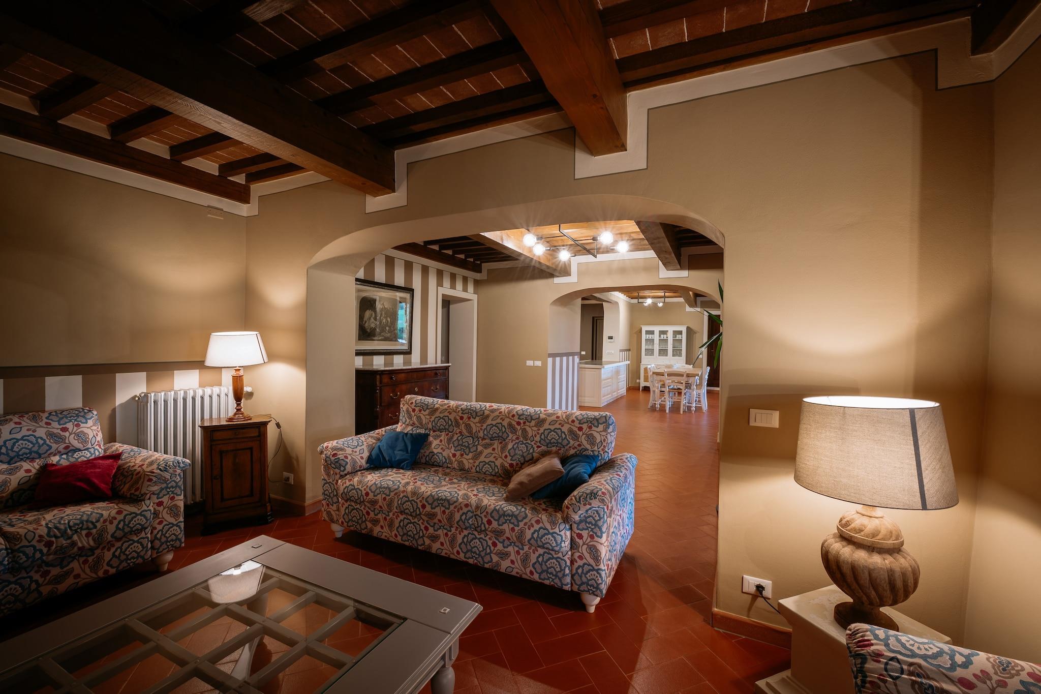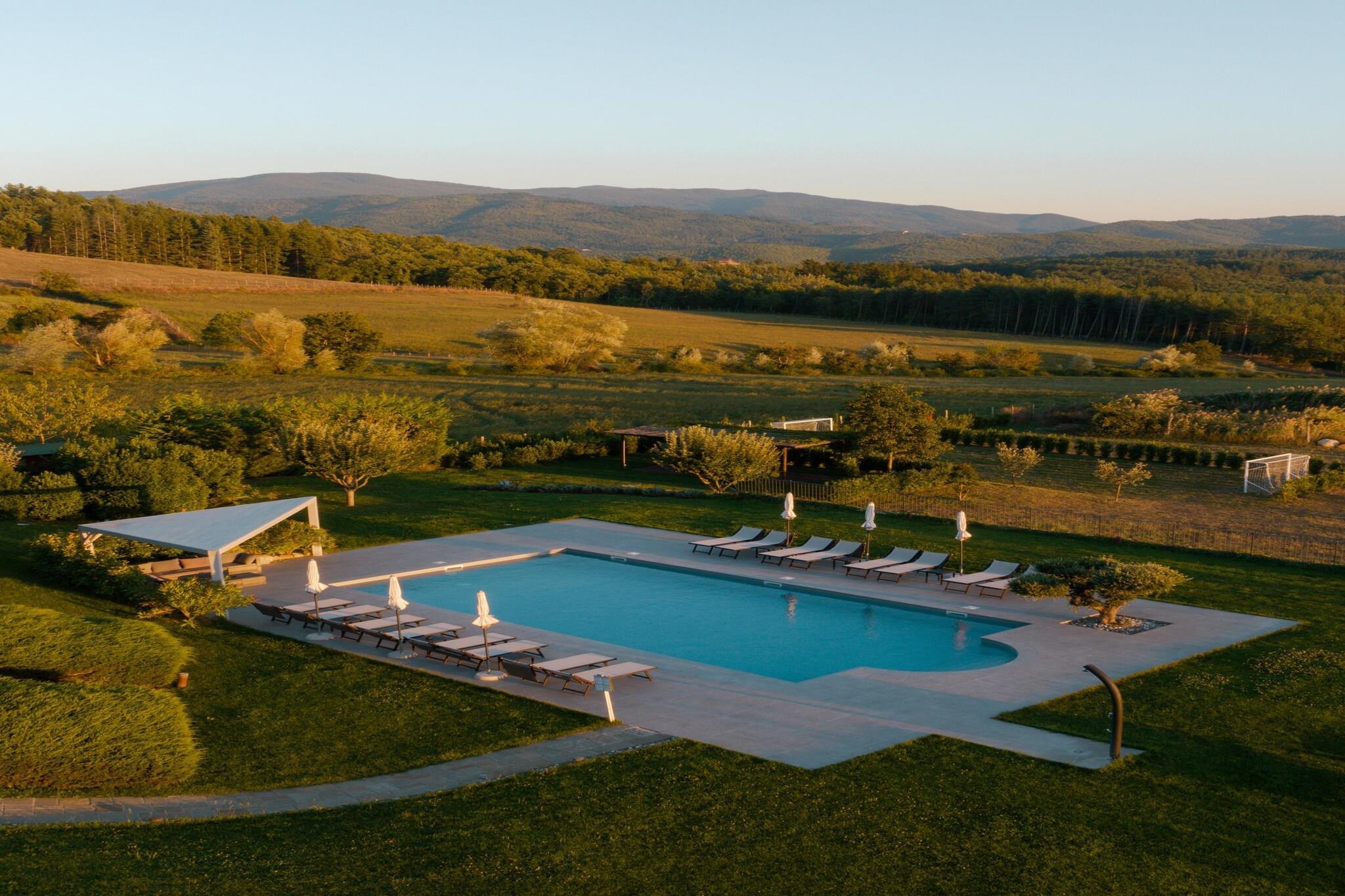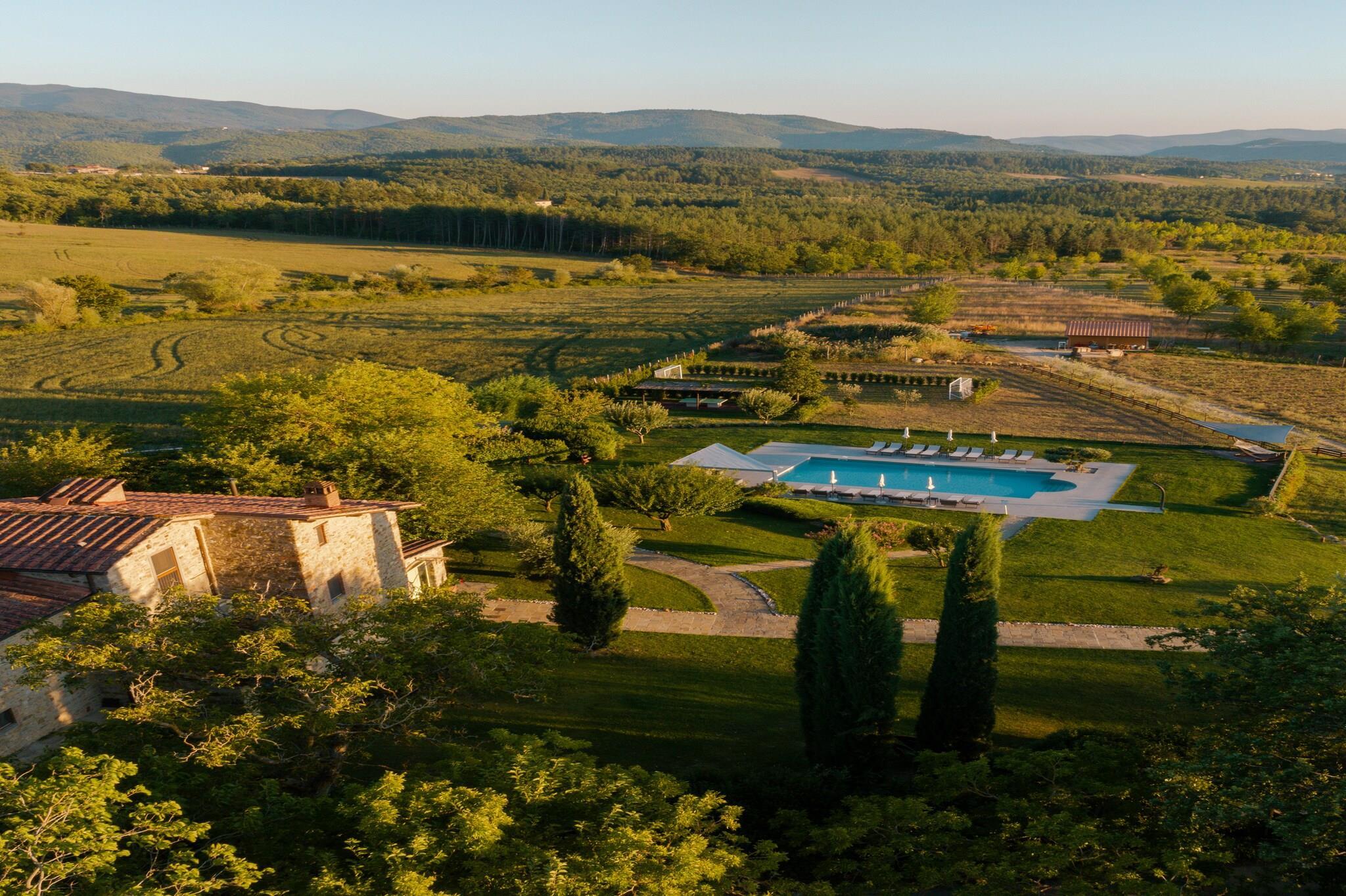 The interior is fully furnished and is characterized by a bright open-space that connects the living room to the kitchen with the garden view. On the ground floor you will find a room framed and embellished by a majestic fireplace flanked by three comfortable sofas, a satellite TV, a studio designed for those who love reading, a bathroom and a kitchen suitable for all your needs. It is divided into three floors connected by rustic stone stairs and consists of 12 modern and spacious double bedrooms with 12 private bathrooms. The whole house is provided with Wi-Fi. The Tuscan structure being surrounded by clean and fresh air does not need air conditioning and you can keep the windows open, equipped with mosquito nets in every room. The interior design wisely combines antique and modern furniture. In all rooms you will find massive solid wood beams and the terracotta attic and floors together with plenty of processed chestnut wood, emphasize the rustic character of this villa. The holiday home is provided with 12 double bedrooms with panoramic view of the area and 12 private bathrooms equipped with bed linen and shower. The rooms are located on the first, second and third floors and are connected by stone stairs. On the first floor there are two large suites and one suite with a double sofa bed, suitable for children who would like to sleep next to their parents. This room has a glass door through which you have access to an exclusive courtyard, ideal for an aperitif for two. On the second floor there are four double bedrooms and on the third floor there are three double bedrooms too, all with a private bathroom. On the top floor there is a double bedroom and an additional twin bedroom, which opens onto a second bedroom with a double bed suitable for two children. All of them have a private bathroom. The rooms are furnished in a modern rustic style that reflects the luxury of the structure and the simplicity of Tuscany. Each room has the name of a town, recalling the Casentino history. We have carefully and precisely chosen the best quality products for you. The living room has a bright and cozy entrance with a view of the entire property and the valley. It is equipped with armchairs and sofas that have been handcrafted by a historic local company. In the living room you will find many beautifully designed lamps, the master fireplace and a 4K satellite TV where you can watch documentaries, movies and cartoons. Subscriptions to Netflix and Amazon Prime are included too. The kitchen is located on the ground floor where it forms an open-space with the living room. Next to it you will find a guest bathroom and a secondary entrance leading to the garden. Bright and welcoming are the features that strike at first glance. The uniquely designed kitchen is equipped with customized furniture. There is an electric oven, gas hob with five burners, large fridge with freezer, microwave, dishwasher and refrigerator cellar with red and white wines department. From the kitchen you get to an adjoining room where there is a pizza oven and there is plenty of space for food and drink supplies. The windows that flank the dining table show a breathtaking view of the garden and pool. The kitchen has been made to celebrate and enjoy your stay trying to cook or calling a real chef. If you would like to be spoiled by a local chef with a Tuscan/Italian menu to celebrate and enjoy a special evening, we can arrange it for you. On the outside, thanks to an enchanting garden of 25000 square meters made of cypresses, olive trees and oleanders, you will be immersed in the valley’s nature. The illuminated pool (16m x 5m x 1,5m) with panoramic view, gazebo, umbrellas and comfortable sun beds will make you live a unique experience. The sofas by the pool, the outdoor shower and the large hammock will offer you comfort and relaxation for the entire duration of the holiday. Two stunning solid oak wooden tables are located in the large roofed veranda and are perfect to have lunch, dinner, to celebrate and spend time in case of bad weather. Near the veranda is the masonry barbecue area, ideal for grills with family and friends. The view focuses on the imposing gelso tree (which gives name to the structure) in front of the villa. The scenic lighting throughout the garden and around the swimming pool creates a suggestive atmosphere. In the large covered veranda there are two magnificent solid oak tables. Ideal to sit comfortably while celebrating and eating all meals with the whole group. The view falls on the imposing tree directly in front, which gives name to the holiday structure: Il Gelso. Next to the veranda is the brick barbecue area, perfect for your barbecues. Enjoying the mild summer evenings here with friends or family members is definitely the highlight of every holiday day. The picturesque lighting throughout the garden and around the pool makes these evenings unforgettable. In the center of the well-kept garden is the swimming pool (16m x 5m x 1.5m) with internal lighting for the night and sun shower and beds. The location is idyllic, surrounded by nature with the sun shining all day long. In the relaxation area you will find comfortable sofas and the super relaxing hammock to rest at any time of the day. The poolside tables are ideal for sipping your favorite drink and enjoying it while watching your children play and admiring the view. For the little ones there is a table tennis table sheltered by a canopy in case of bad weather and next to it a soccer field to challenge the whole family. Services list: Hot water Gas for cooking Electricity (up to 200 KWh/ week) Heating Linen for beds, bathrooms and kitchen with weekly change Barbecue Wood for the barbecue Moka Kettle Washing machine Fridge with freezer Toaster Dishwasher Coffee machine Oven Microwave oven Wifi 4K satellite TV Netflix subscription Amazon Prime subscription Shower cabin Basin Toilet Bidet Sinks Hairdryer Cooling fan mosquito net Studio Pool Outdoor s