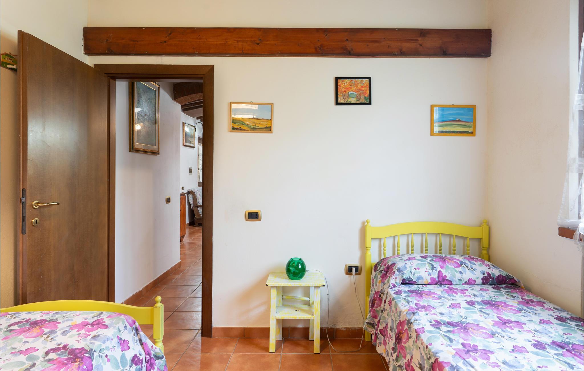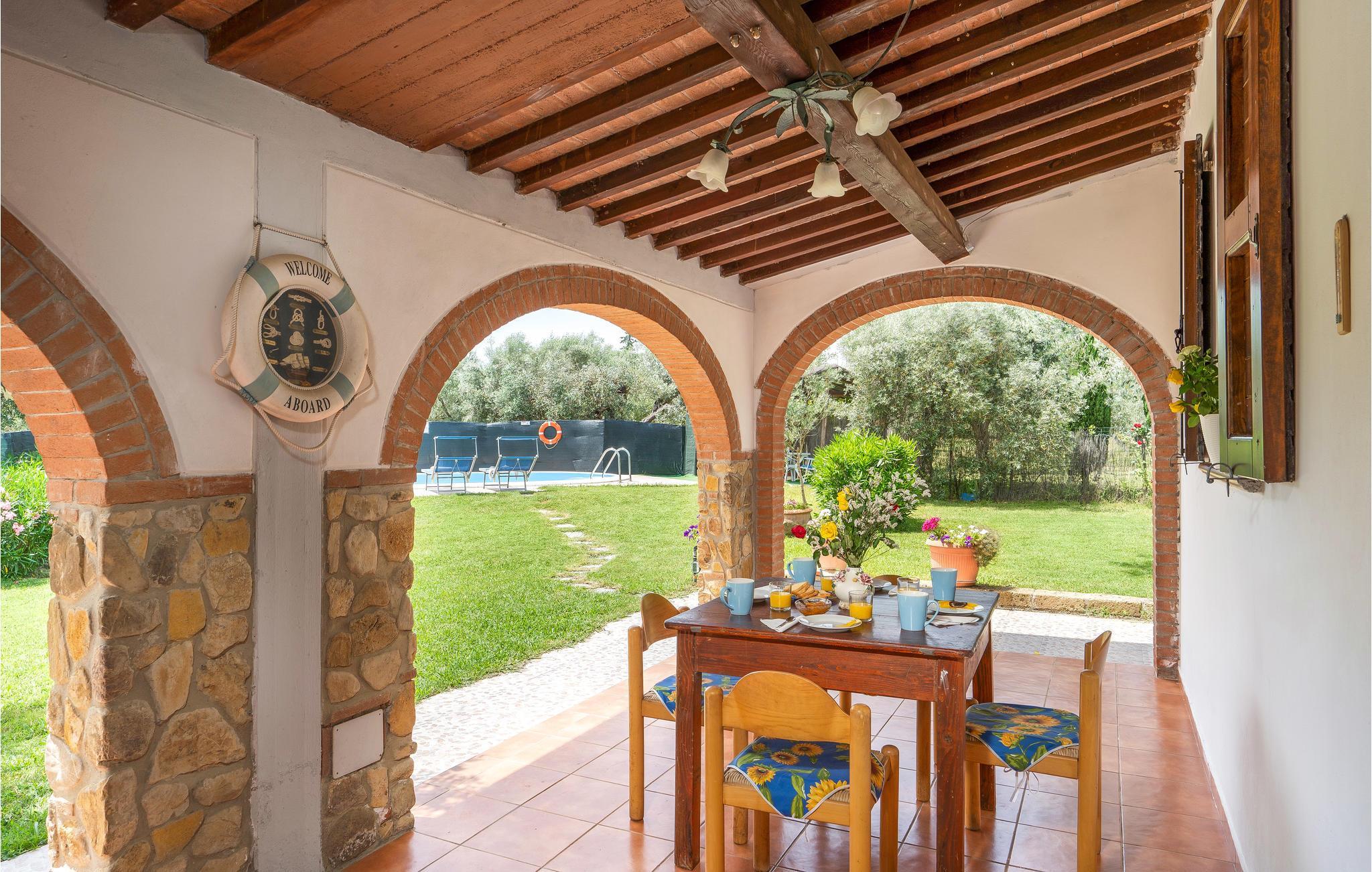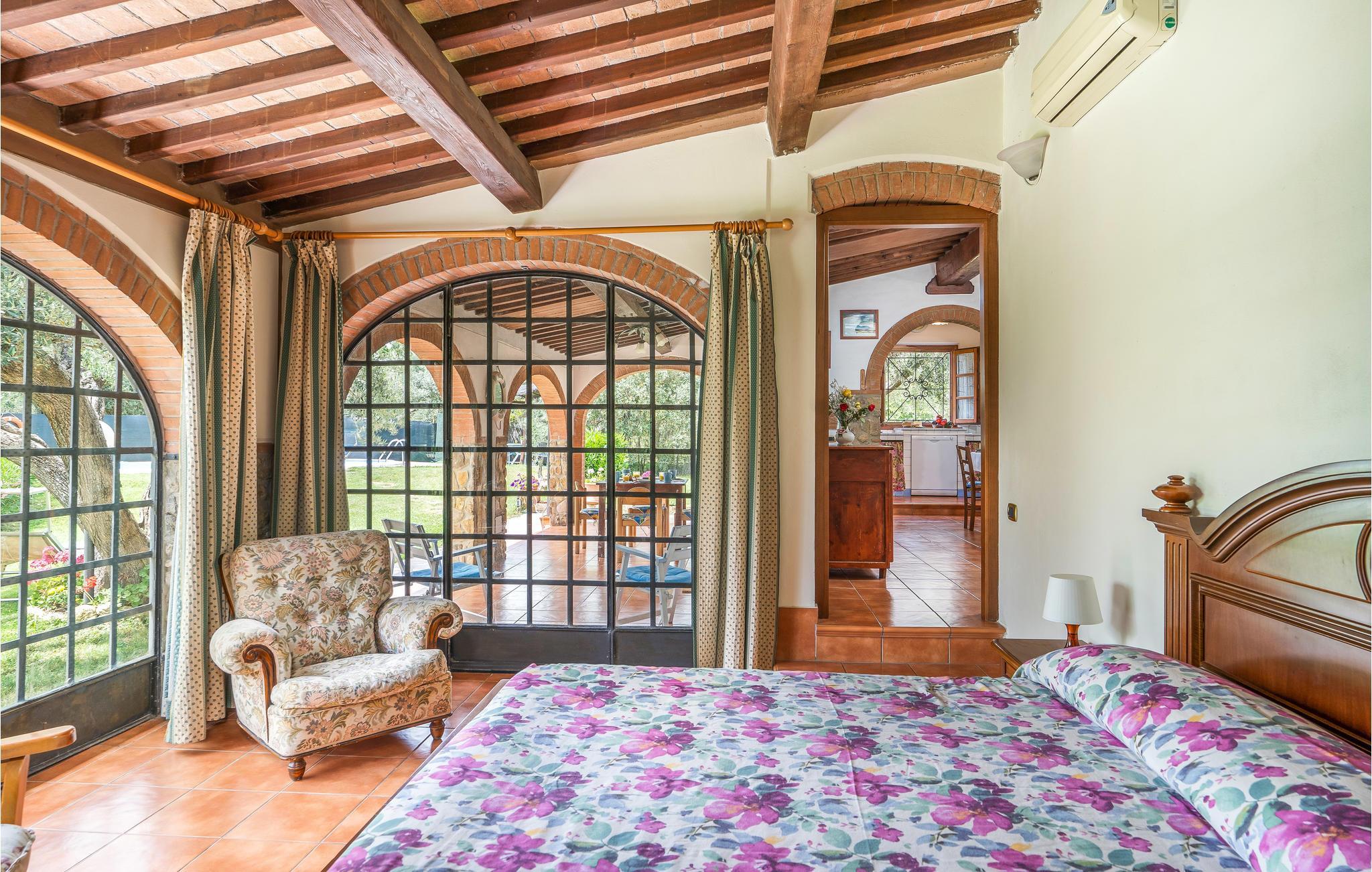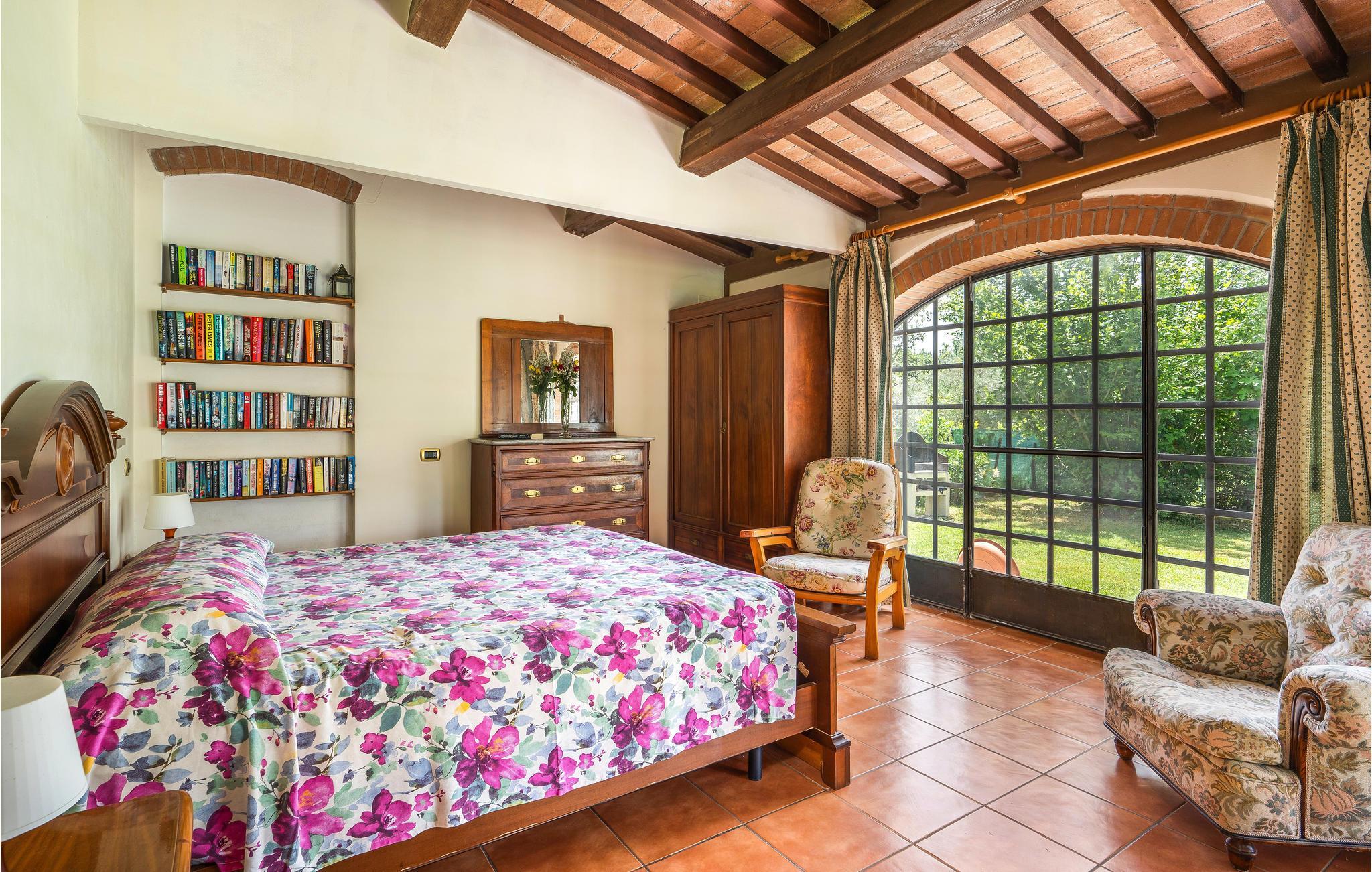 Dette indbydende hus har en idyllisk beliggenhed omgivet af det fantastiske toscanske landskab. Læn jer tilbage i de indbydende, autentisk møblerede værelser, designet i stil med en gammel landejendom. Gamle trælofter, klinkegulve og buede vinduer giver indretningen charme. Om aftenen kan I gøre det hyggeligt sammen ved det lange spisebord.