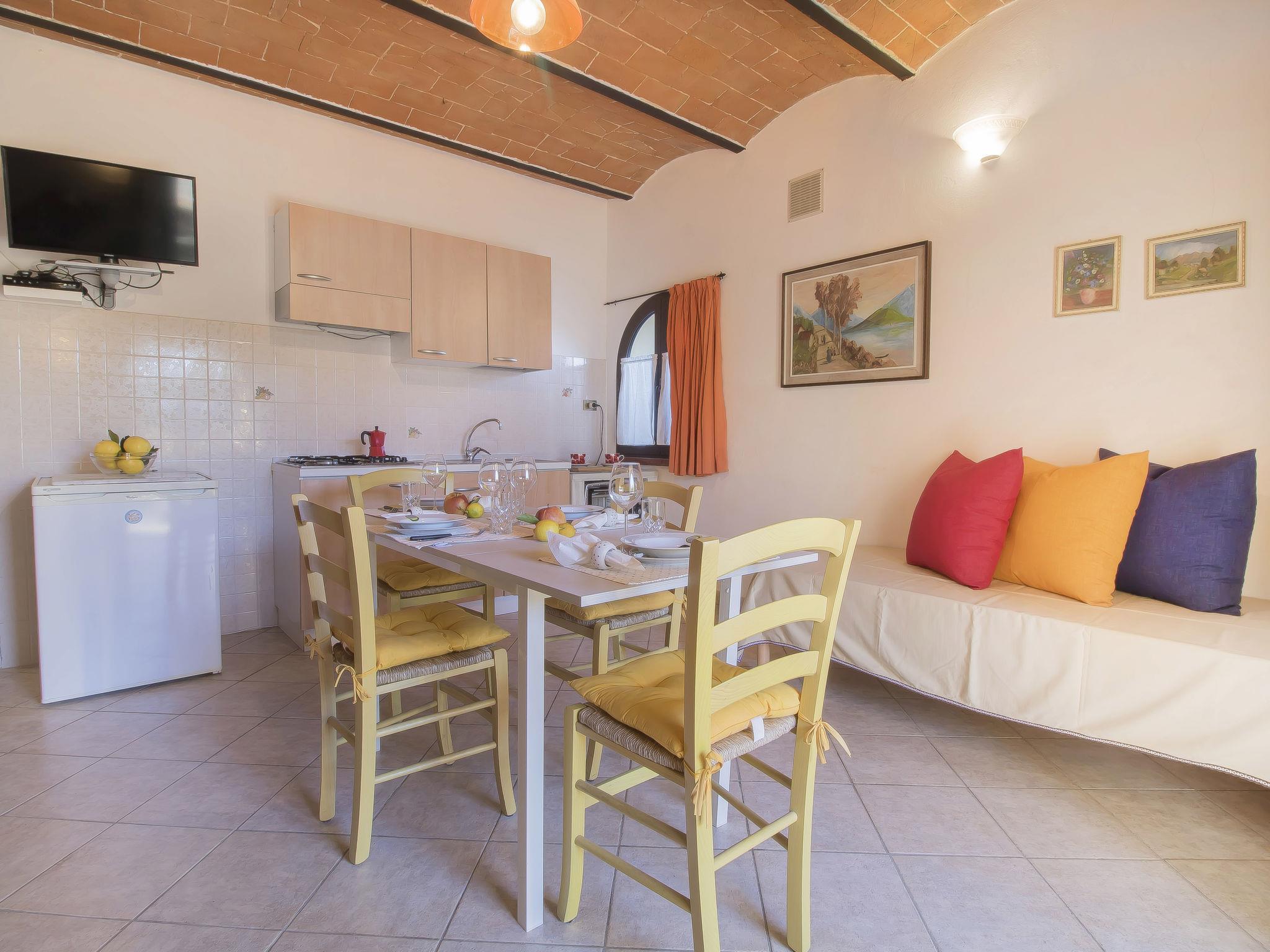 "Le Granaglie", 2-room apartment 40 m2, on the ground floor. Very simple and rustic furnishings: living room with 1 double sofabed, kitchen corner and TV. 1 double bedroom. Exit to the patio. Shower/bidet/WC. Heating (extra). Small patio. Terrace furniture. Facilities: Internet (WiFi, free). Please note: maximum 1 pet/ dog allowed. Private entrance. IT049001B5A7CNW82R