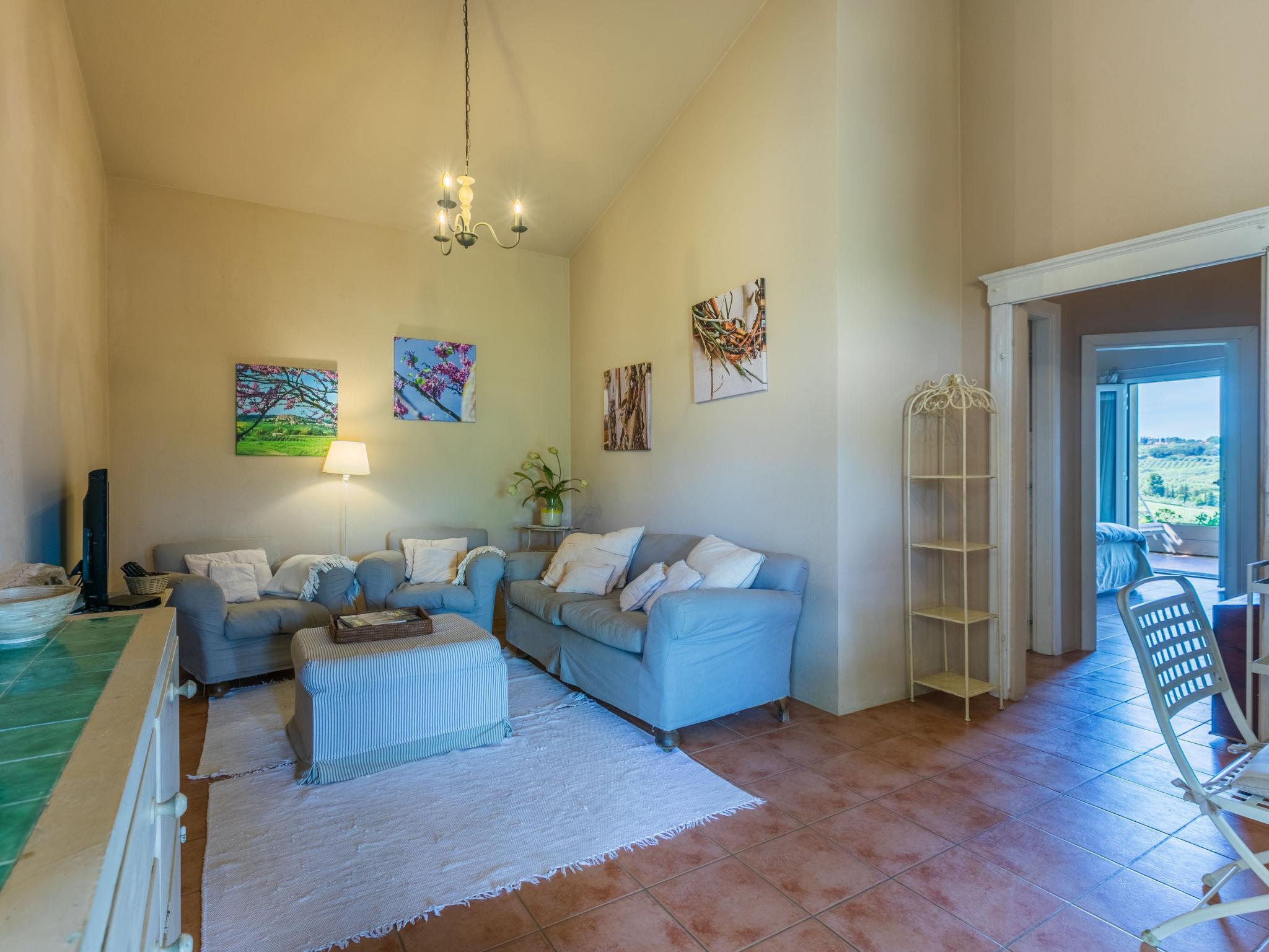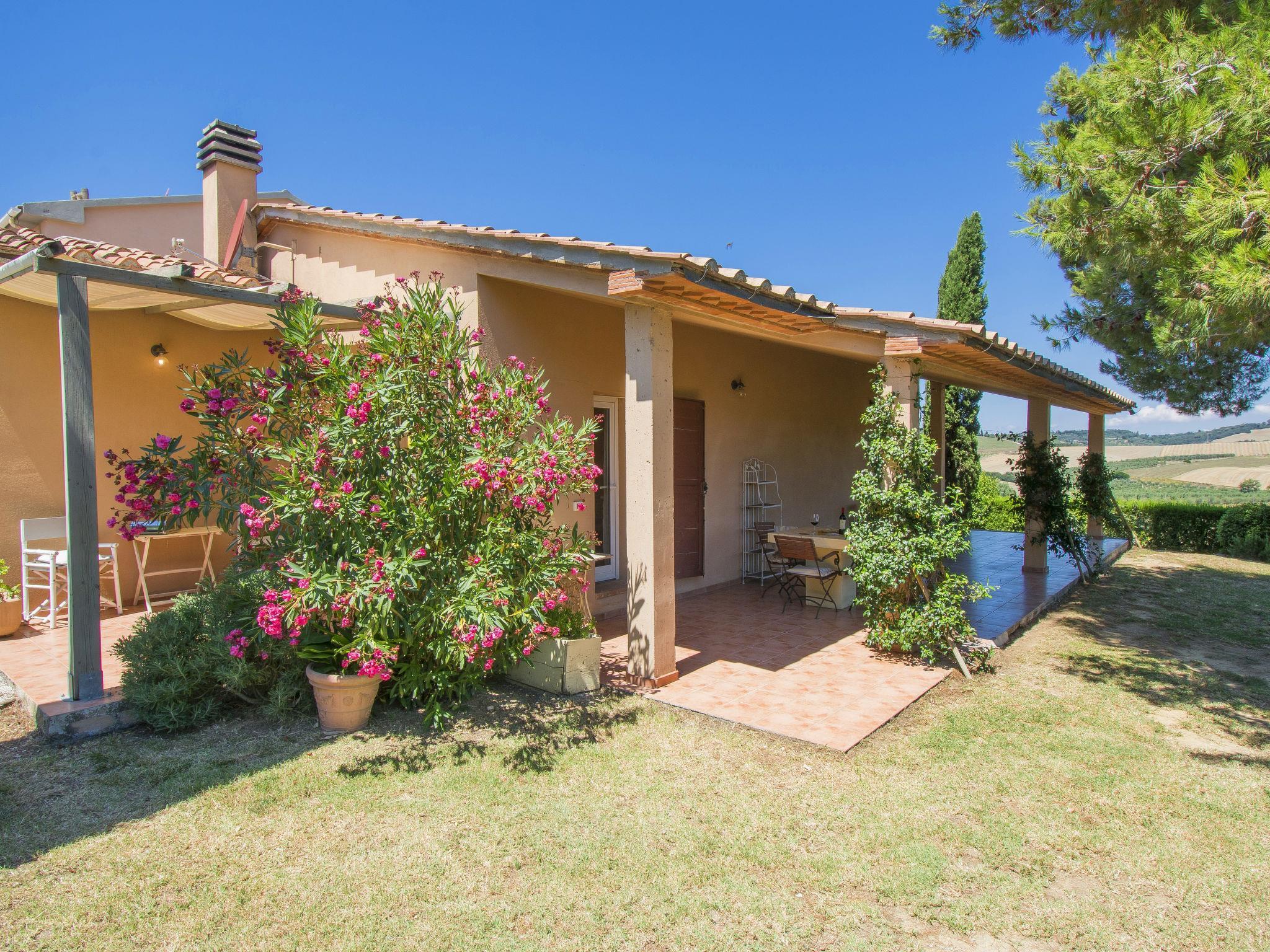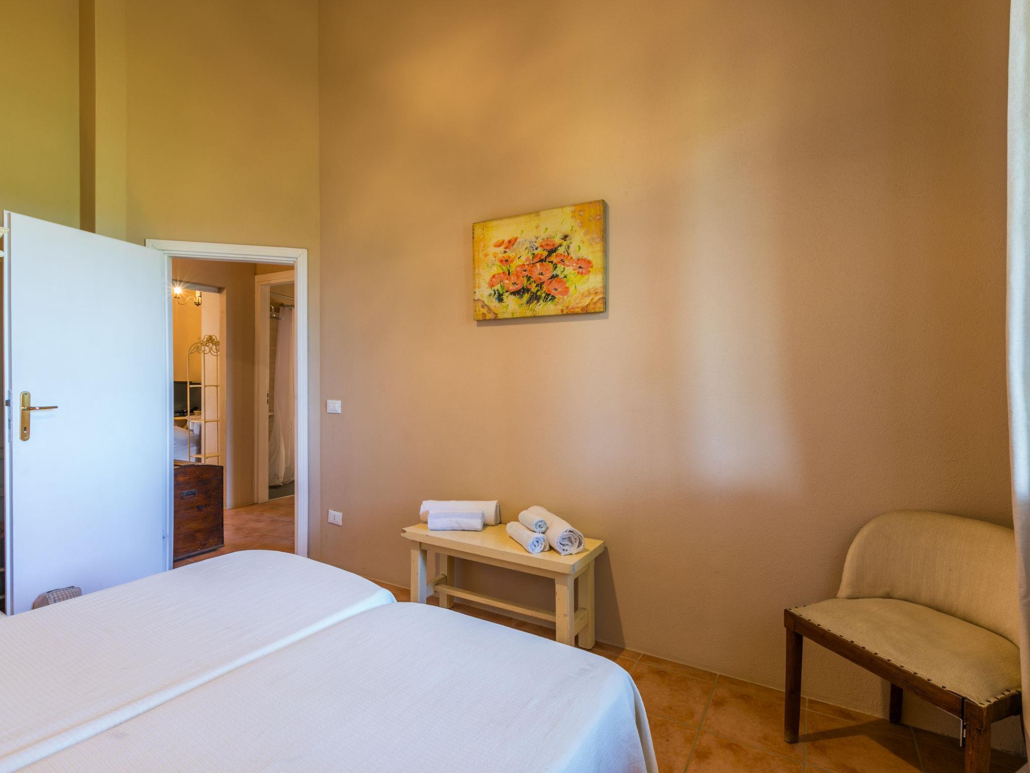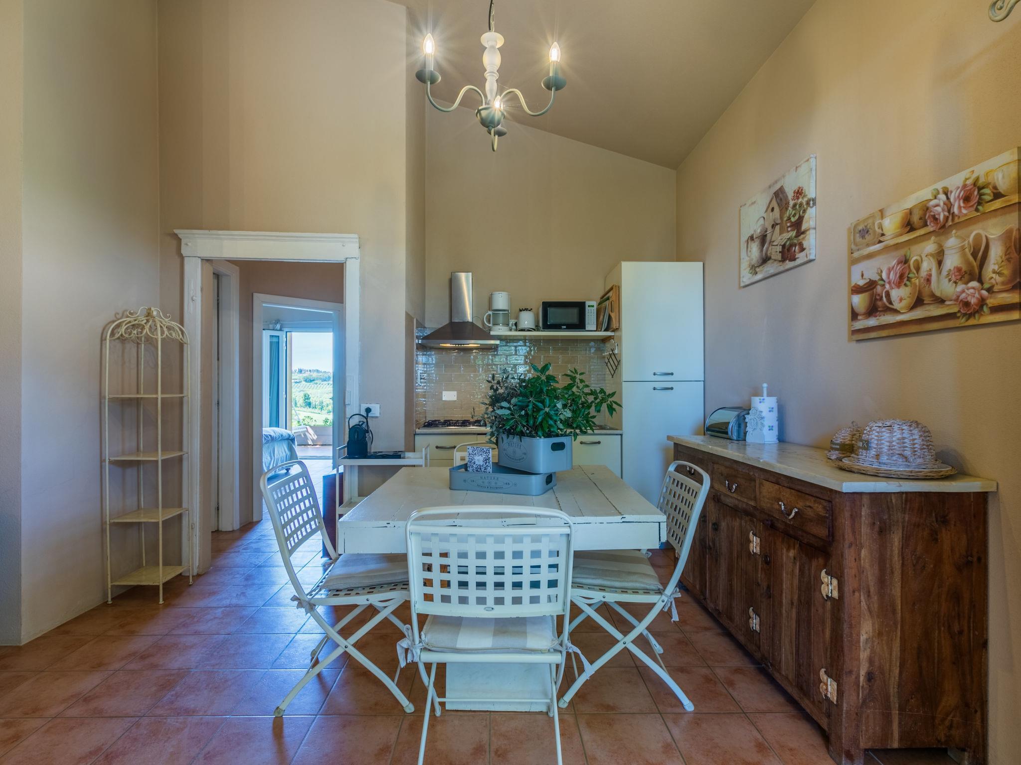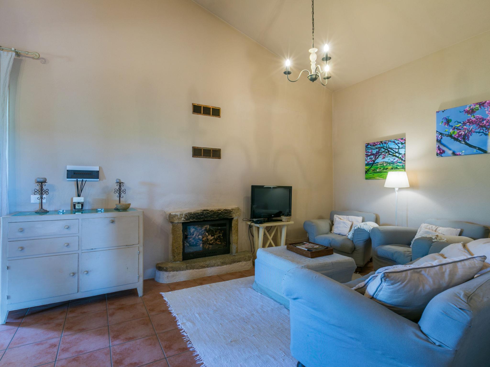 "La Carraia", 3-room house 55 m2. Tasteful and cosy furnishings: living/sleeping room with 2 beds (80 cm), open-hearth fireplace, dining table and TV. Exit to the terrace. 1 room with 2 beds (80 cm). 1 room with 1 french bed (160 cm). Exit to the terrace. Open kitchen (4 hot plates, dishwasher, microwave, freezer, electric coffee machine, Capsules for coffee machine (Nespresso) extra). Shower/WC. Electric heating, gas heating, air-conditioning. Panoramic view of the countryside. Facilities: washing machine, dryer, safe, children's high chair, baby cot. Internet (WiFi, free). IT049001B556HHB8U4