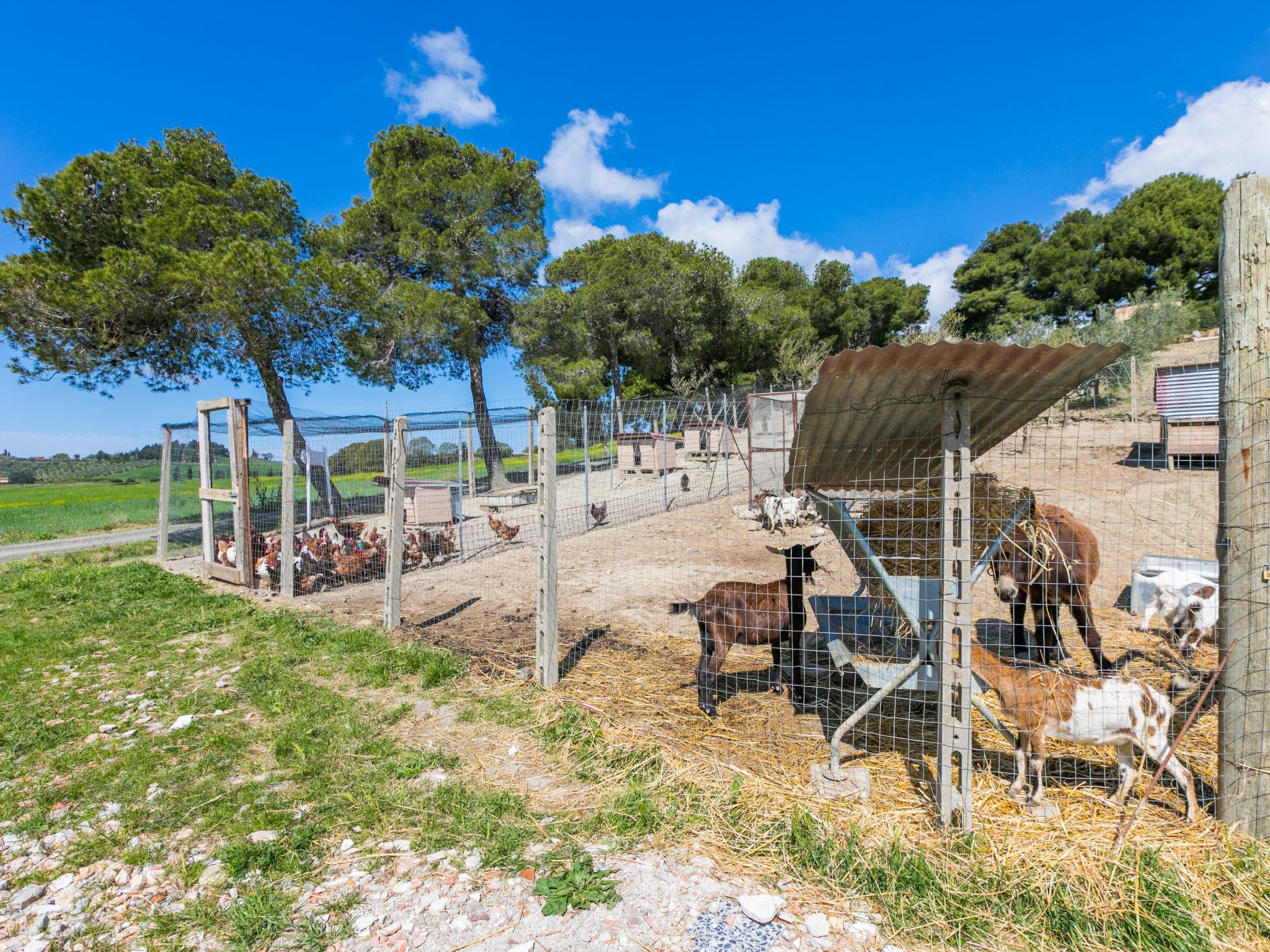 Large working farm "Campo al Quattrino", 400 m a.s.l., surrounded by fields and vineyards. 1.9 km from the centre of Bibbona, 6.8 km from the centre of Casale Marittimo, in a sunny position, 16 km from the sea. For shared use: natural state property, courtyard. In the complex: restaurant, WiFi. Breakfast full board half board on request (extra). Storeroom available. Motor access (1 km via unmade road). Grocery 1.6 km, supermarket 10 km, shopping centre 10 km, bakery 1.6 km, bus stop 2 km, sandy beach "Marina di Bibbona" 16 km, thermal baths "Calidario" 34 km. Marina 24 km, riding stable 17 km. Nearby attractions: Pisa 65 km, Lucca 90 km, Firenze 112 km. Local sale of farm products. Please note: the owner lives on the same property. The owner has a dog.