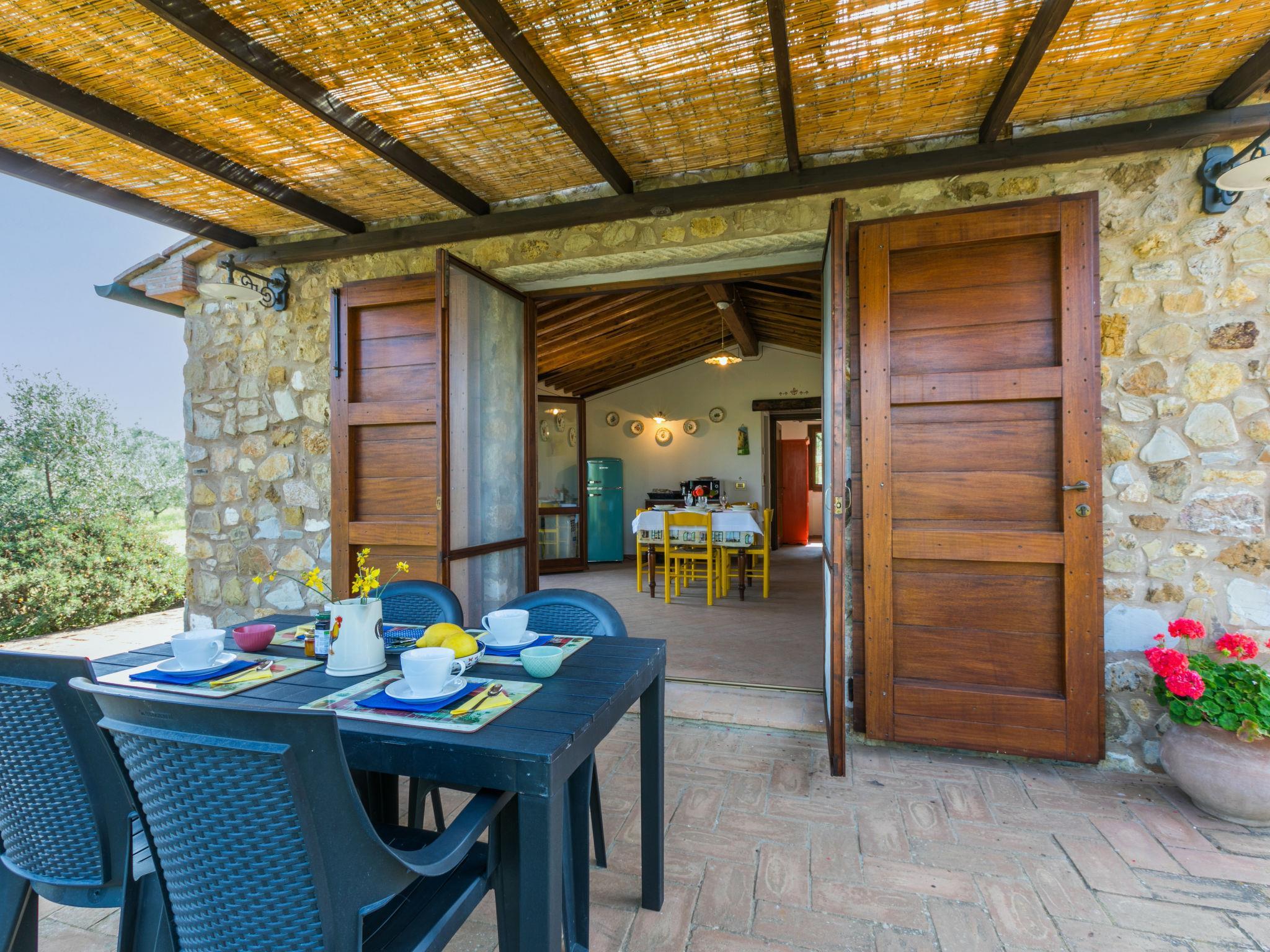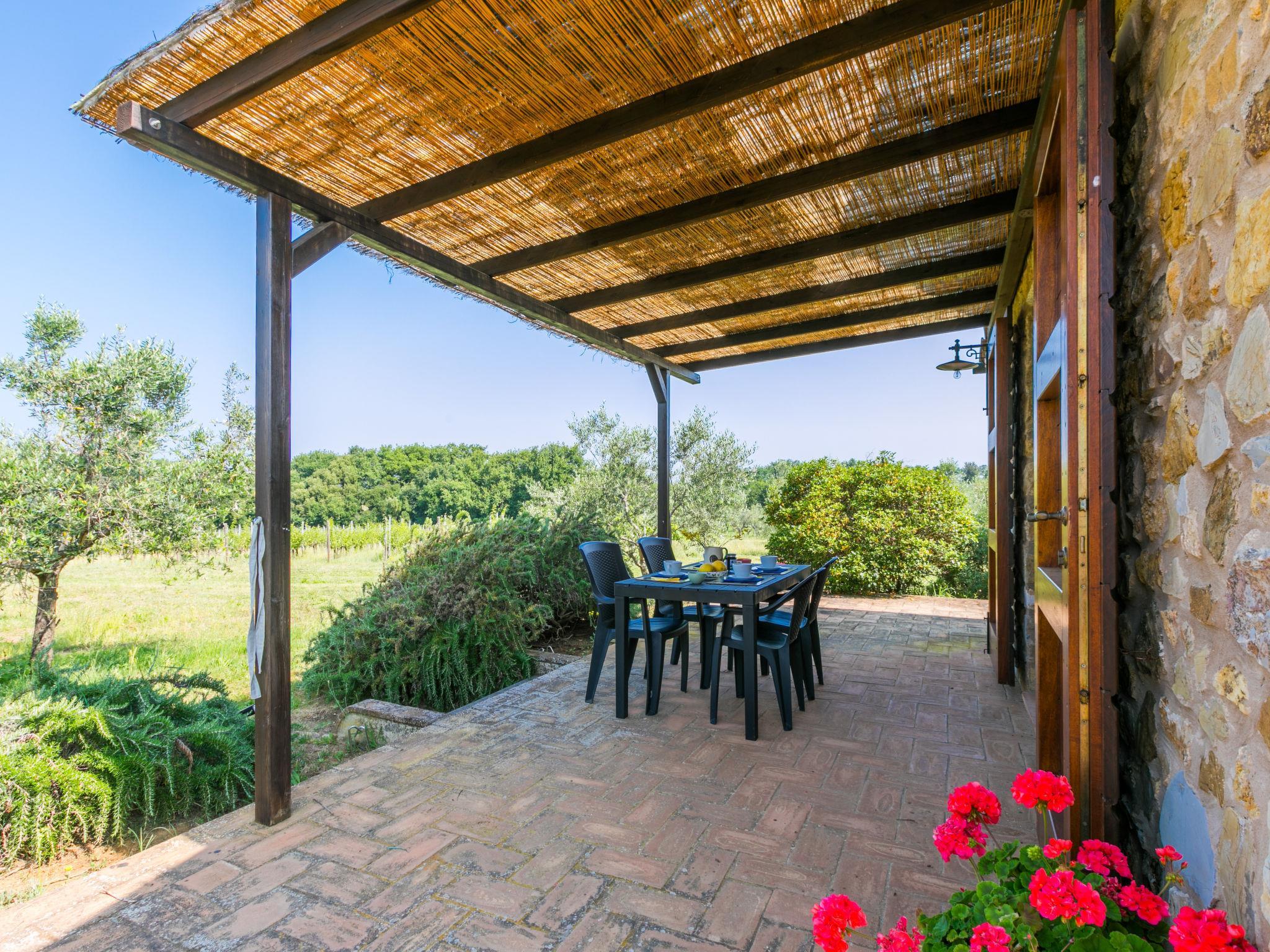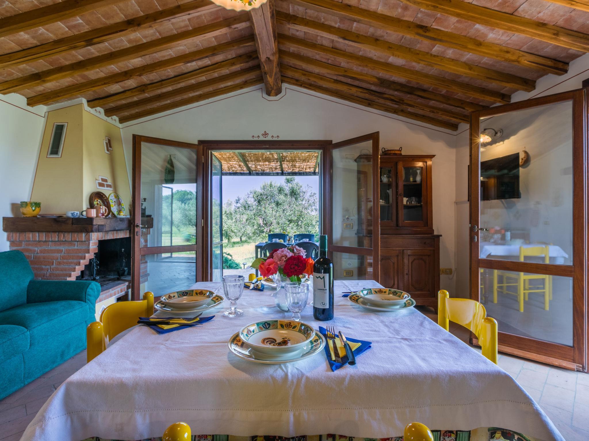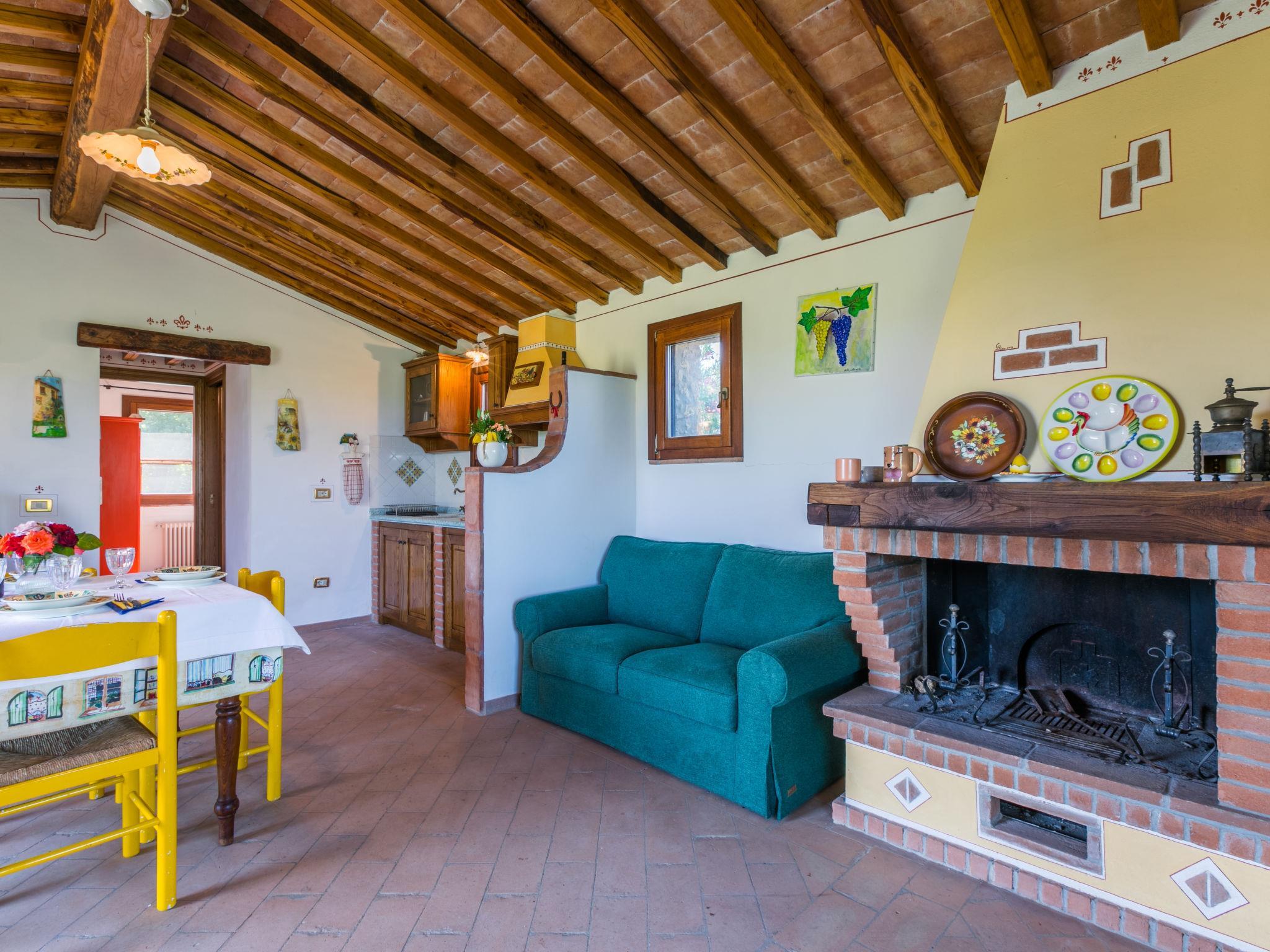 "Rustico", 3-room house 68 m2. Cosy furnishings: living/sleeping room with 1 sleeping facility, open-hearth fireplace and TV. Exit to the patio. 1 double bedroom. 1 room with 1 french bed (1 x 140 cm, length 195 cm). Kitchenette (Gas stove, 4 gas rings, toaster, kettle, microwave, electric coffee machine) with dining table. Exit to the terrace. Shower/bidet/WC. Gas heating. Patio 20 m2. Terrace furniture, deck chairs (4). Beautiful view of the countryside. Facilities: washing machine, mosquito net, children's high chair, baby cot for up to 2 year olds, hair dryer. Internet (WiFi, free). Please note: smoke alarm, fire extinguisher. IT049001C2Y2V8CMAL