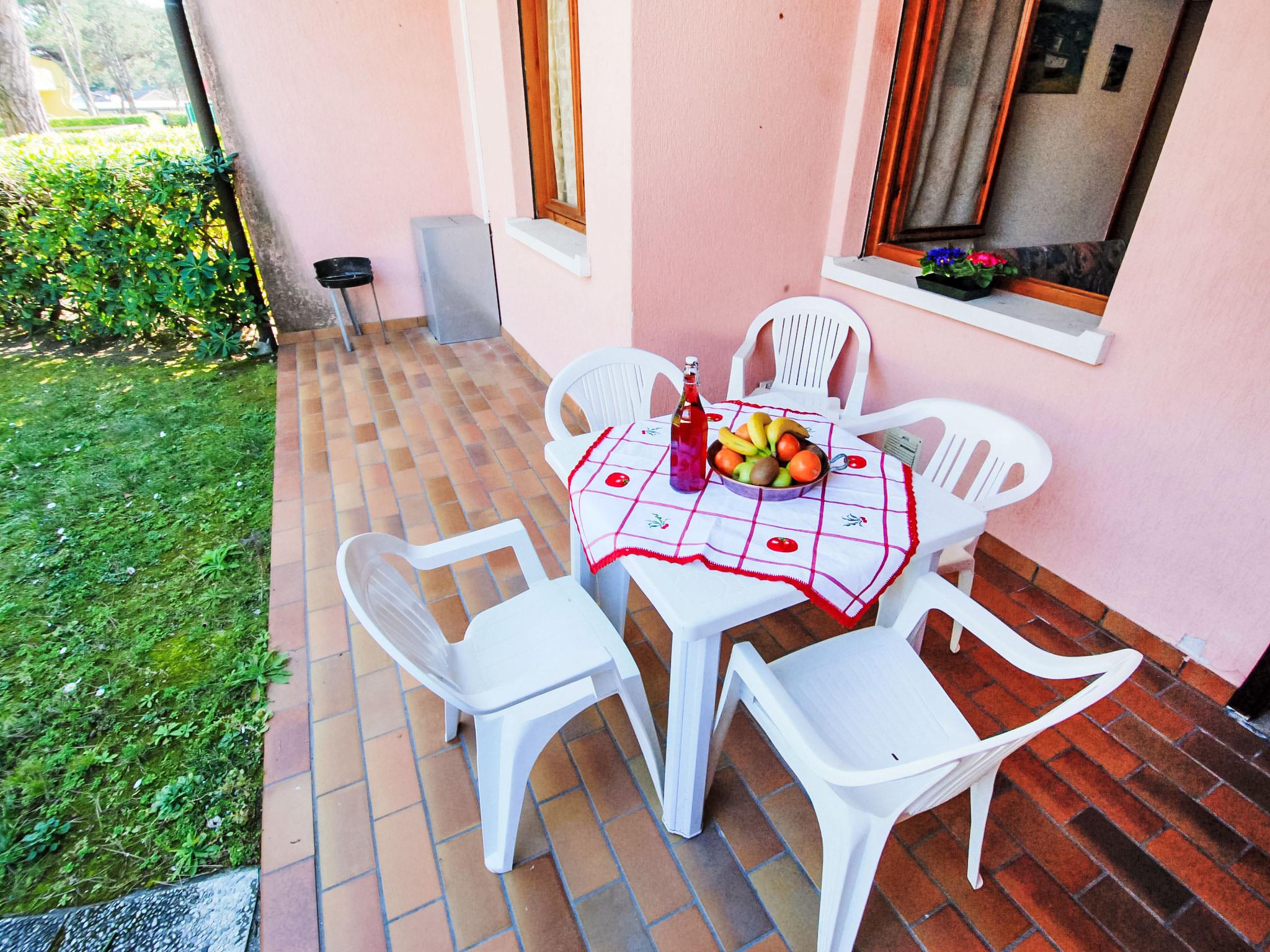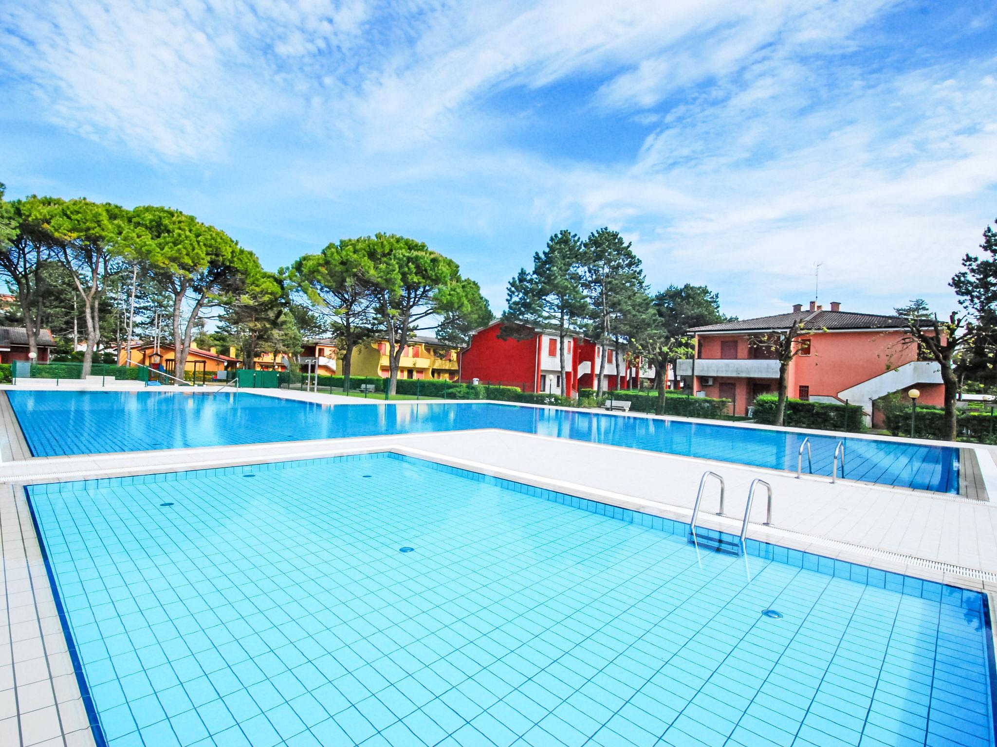 Comfortable residence "Villaggio Azzurro". In the centre of Bibione, in a quiet position, 700 m from the sea, from the beach. For shared use: 2 swimming pools (25 x 10 m, depth 150 - 150 cm, seasonal availability: 15.May. - 15.Sep. pool opening hours: 09:00-13:30 and 15:30-22:00). Parking at the house. Bus stop 850 m. Please note: the photograph shows a typical example. Additional accommodations can be booked.