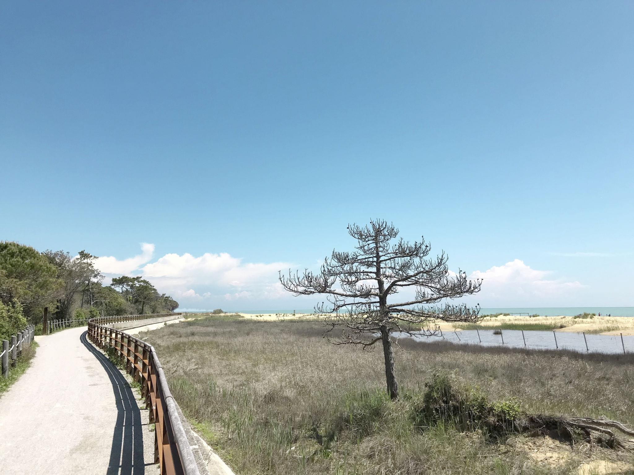 Comfortable residence "Iris Suite", 5 storeys, built in 2021. 16 apartments in the residence. In the district of Bibione Spiaggia 100 m from the centre of Bibione, 13 km from the centre of Lignano, 100 km from the centre of Venezia, 450 m from the sea, 450 m from the beach. For shared use: property (fenced), swimming pool (6 x 6 m, seasonal availability: 15.May. - 15.Sep.). In the complex: lift, sun terrace. Supermarket 230 m, bus stop 450 m, railway station "Latisana" 21 km. Nearby attractions: Oasi Naturalistica Val Grande - Bibione. The photo is just an example. On the 4th floor solarium of approx. 120 m² with swimming pool, sun loungers and corner with armchairs for common use.