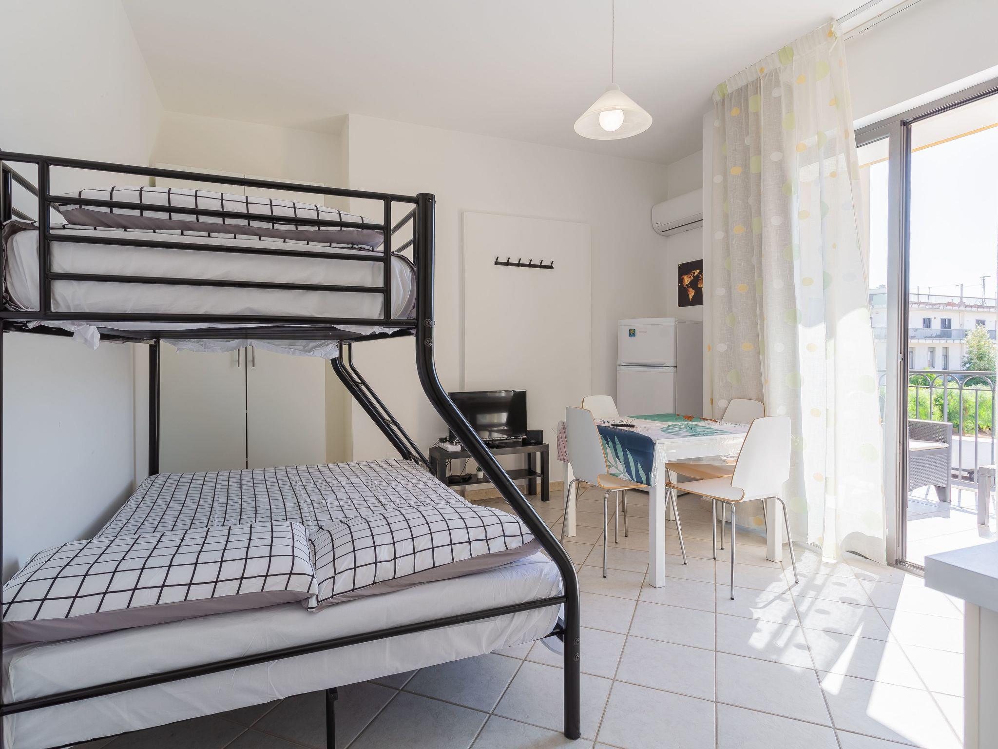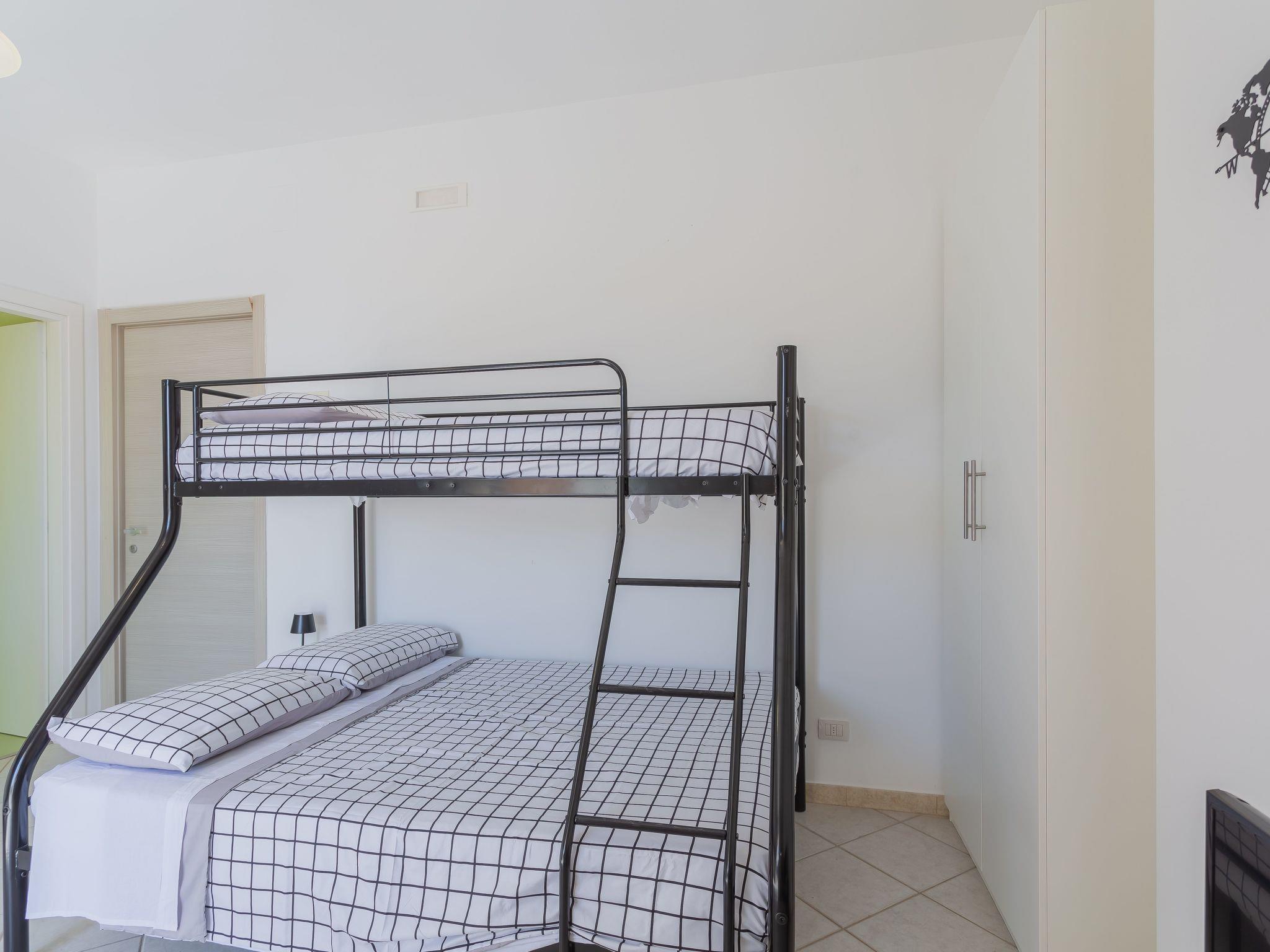 The bedroom is designed to offer versatility: a double bed and a single bunk bed optimise the space for each type of guest. The wardrobe with a large mirror and interior doors offers ample space for your personal belongings. Modern amenities include high-quality bedding, TV with streaming included (Netflix, Disney+, Prime Video) and an Echo Dot Alexa speaker to listen to your favourite music on Spotify.