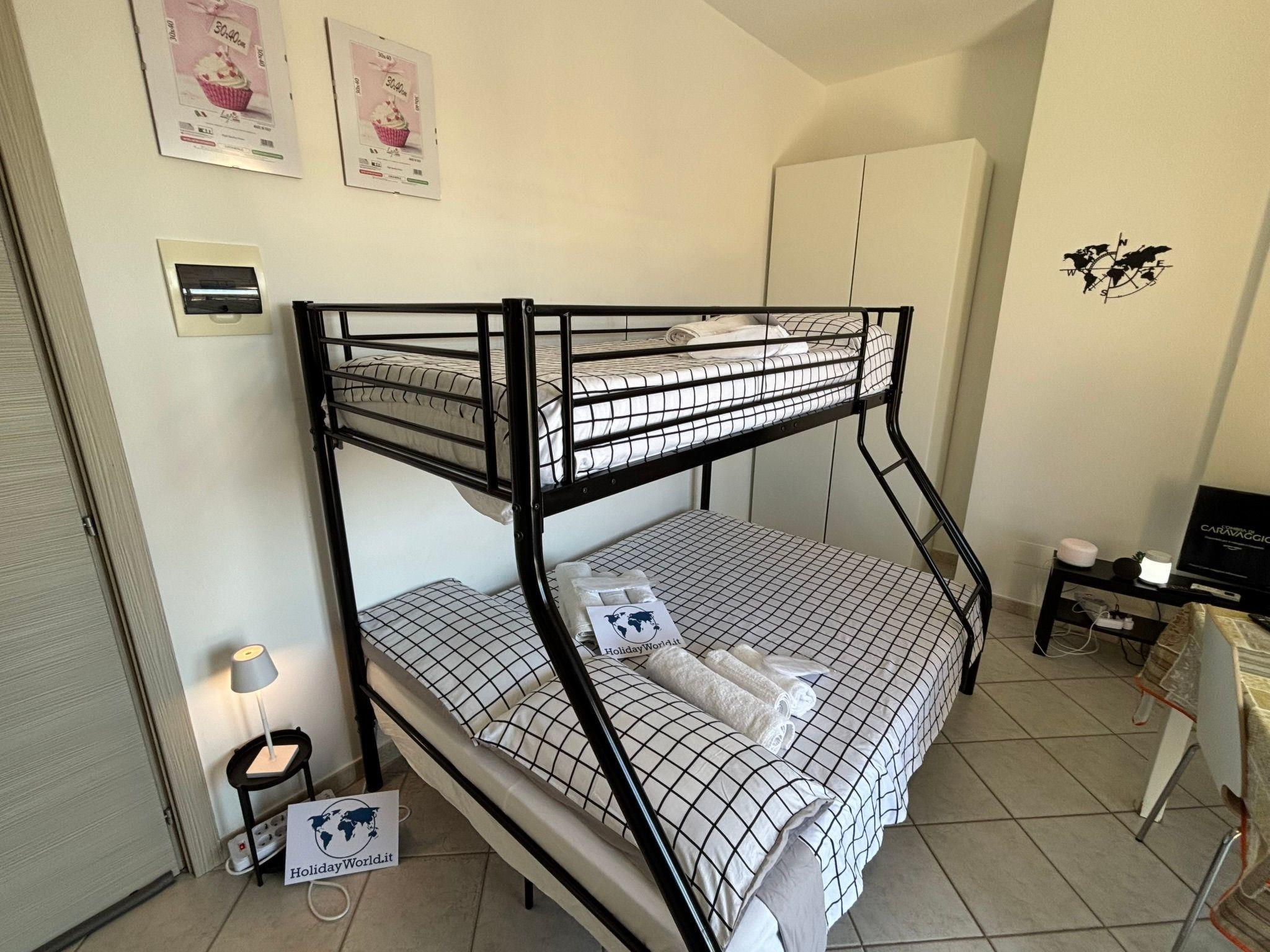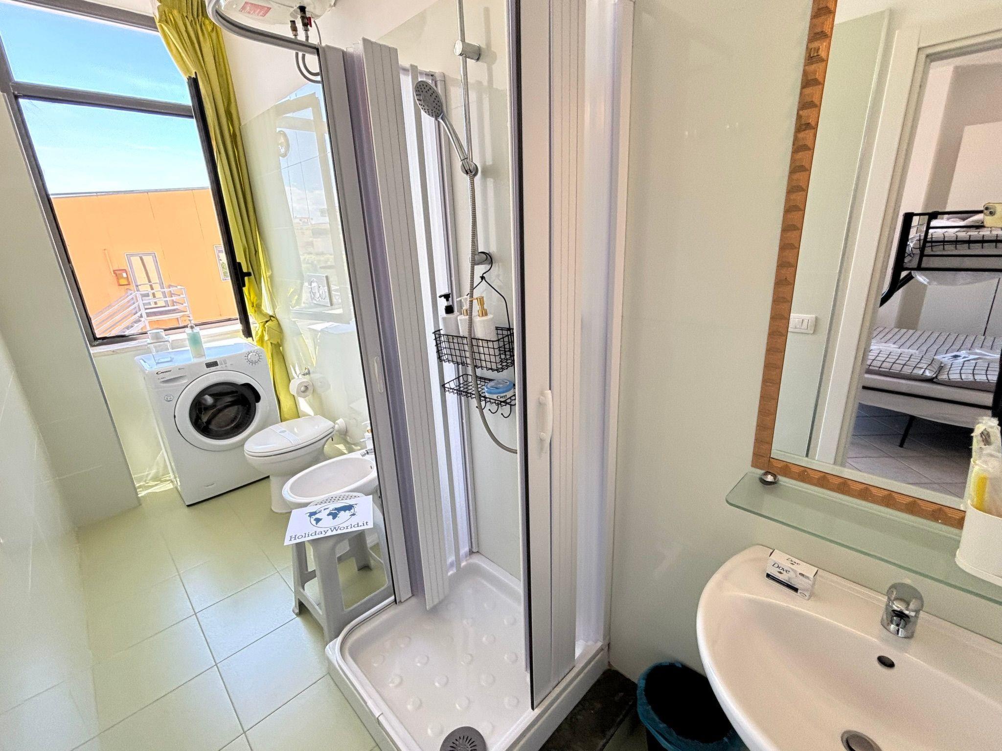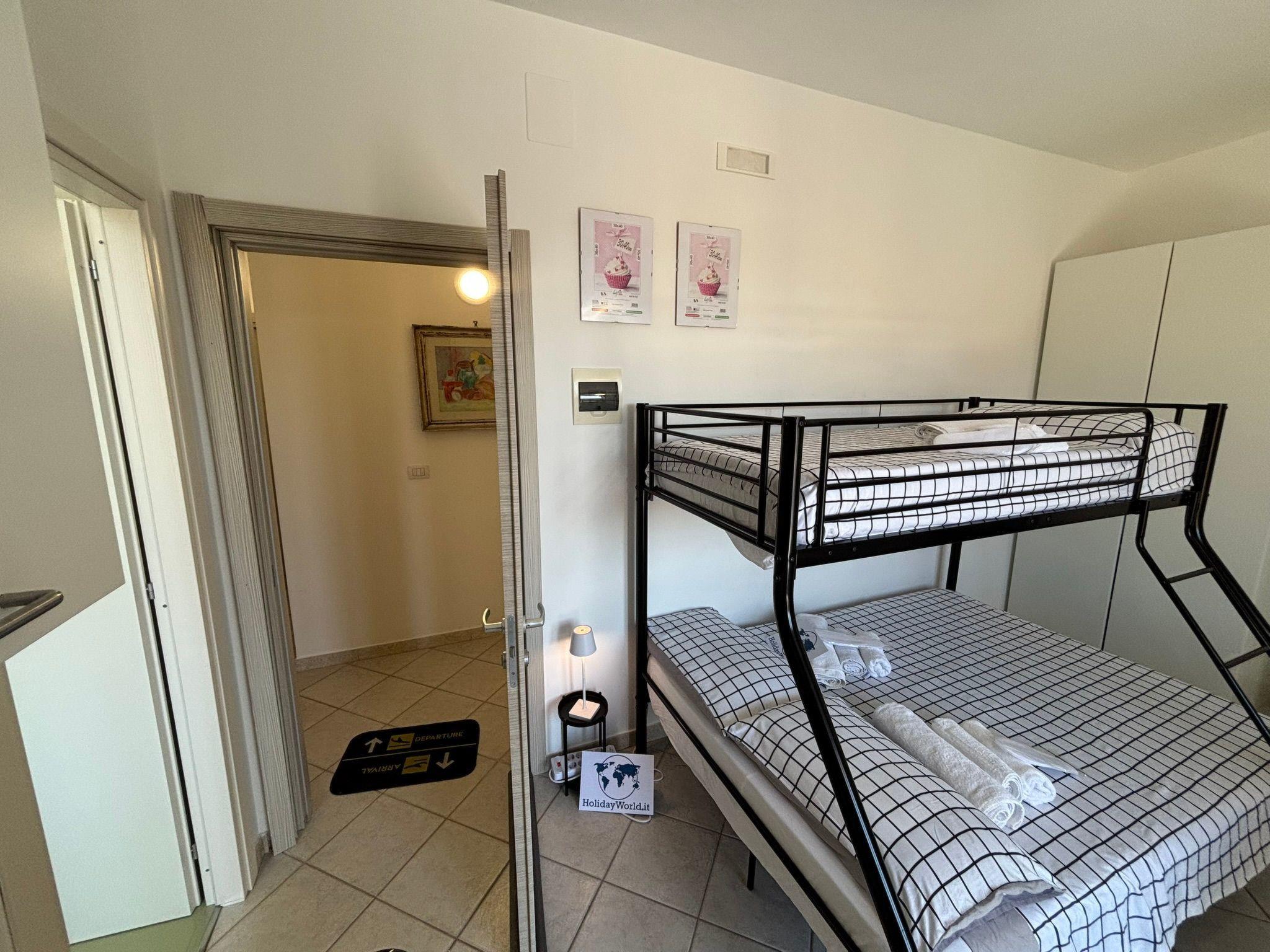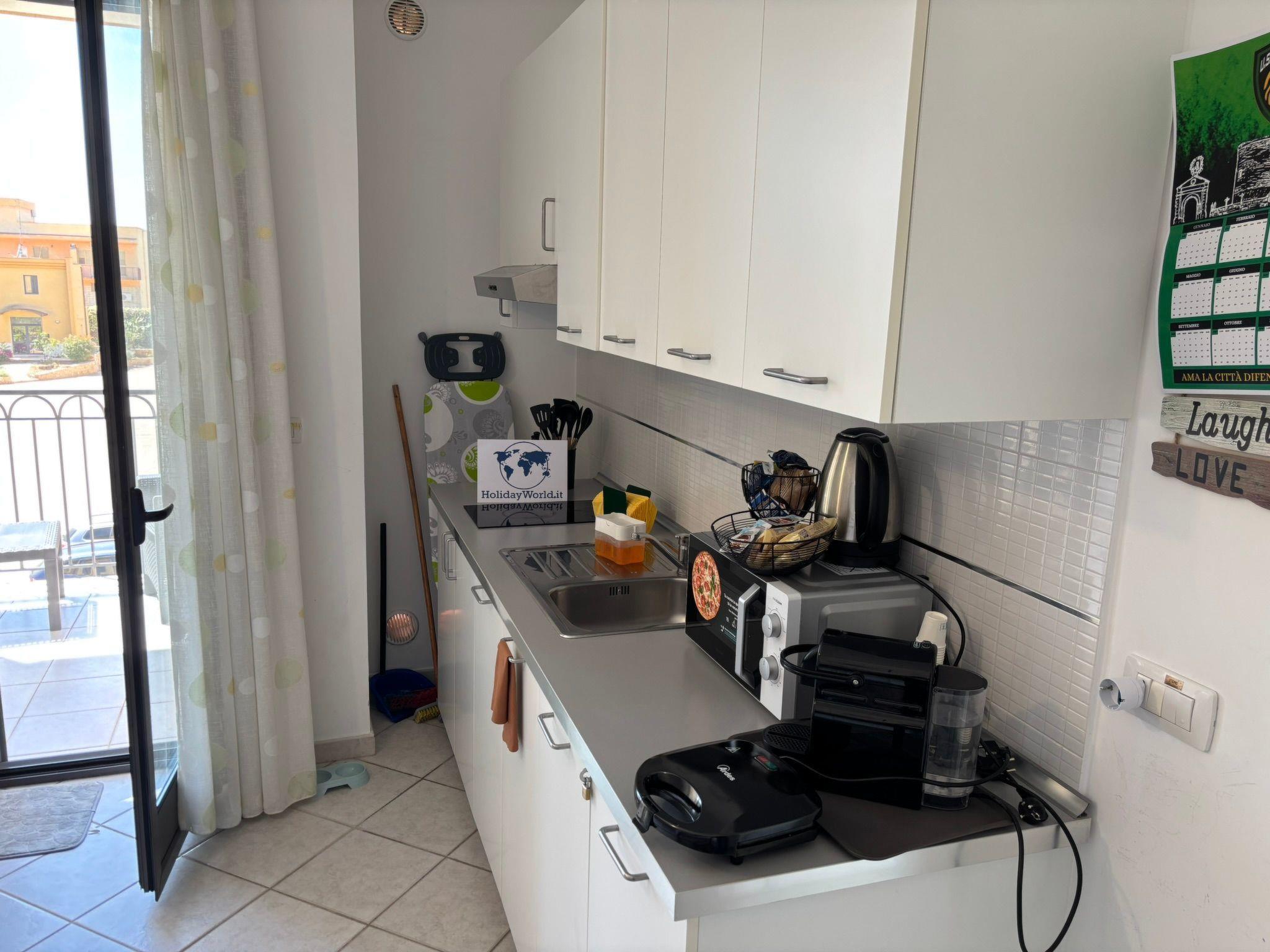 Located on the first floor, the flat is designed to offer you a true all-round hospitality experience, where simplicity and technology blend with Mediterranean warmth. You will find a bright living area, an equipped kitchenette, a functional dining area, a sleeping area with a double bed and a bunk bed, air conditioning and a smart TV. The private bathroom is complete with shower and bidet. The private balcony, overlooking nature