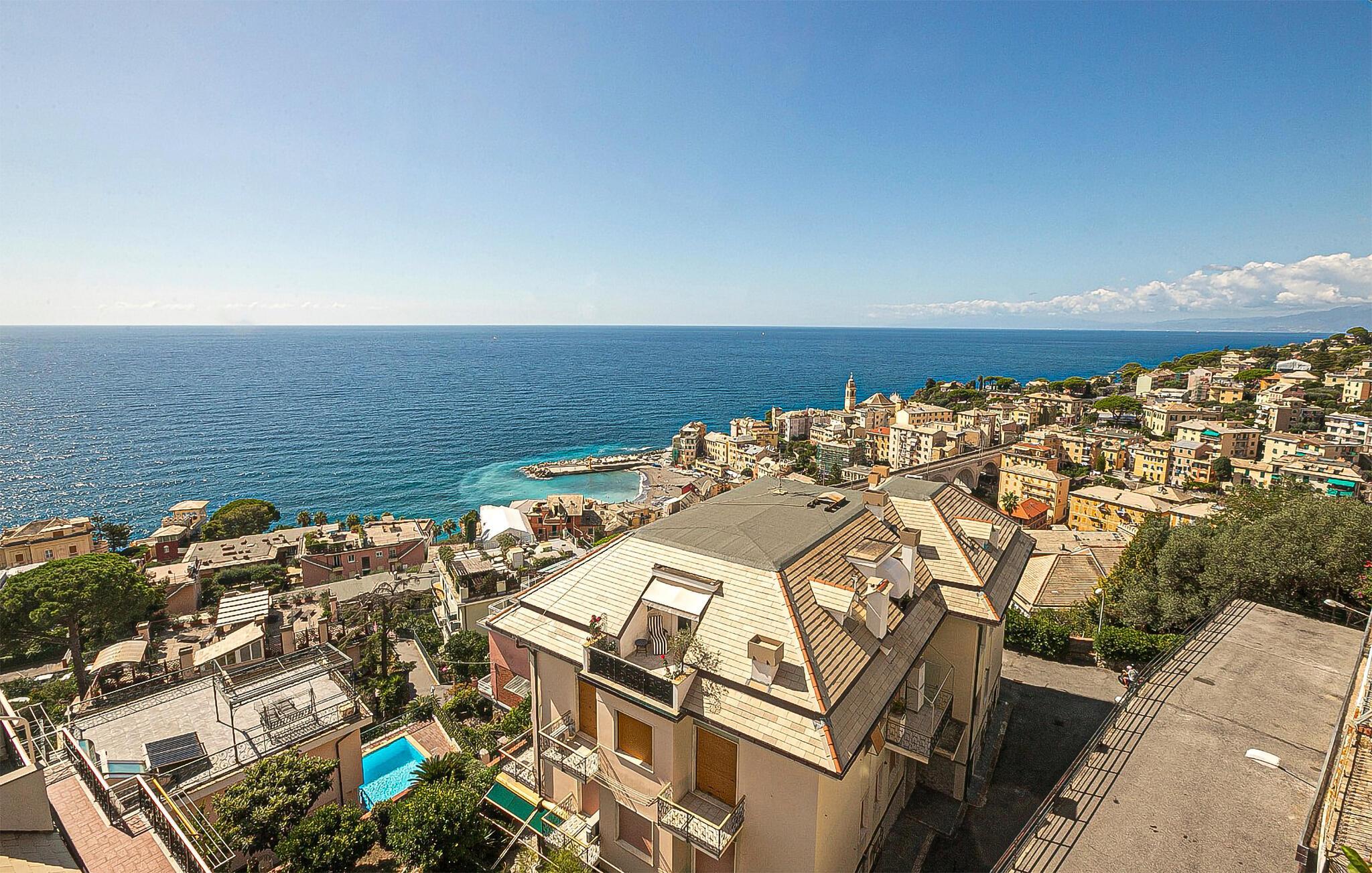 Tag på ferie ved den smukke Golfo Paradiso-kyst i denne lejlighed tæt på stranden i pastelfarvede Bogliasco.