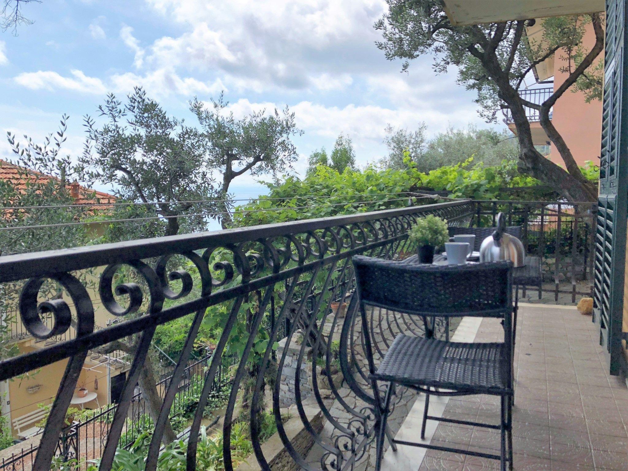Outside, the flat boasts a terrace and a panoramic balcony where guests can enjoy moments of true tranquillity, surrounded by greenery and relaxing under the Riviera sky. This outdoor space, equipped for the convenience of visitors, is the ideal place for outdoor breakfasts, dinners under the stars or simply to admire the sunset over the gulf, surrounded by the lush nature that characterises the area.