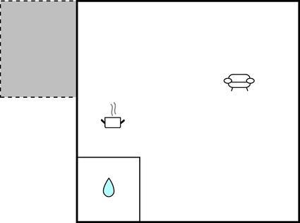 Opholdsstue/køkken - 4 Sovepladser. (Sofa, madras eller lignende).