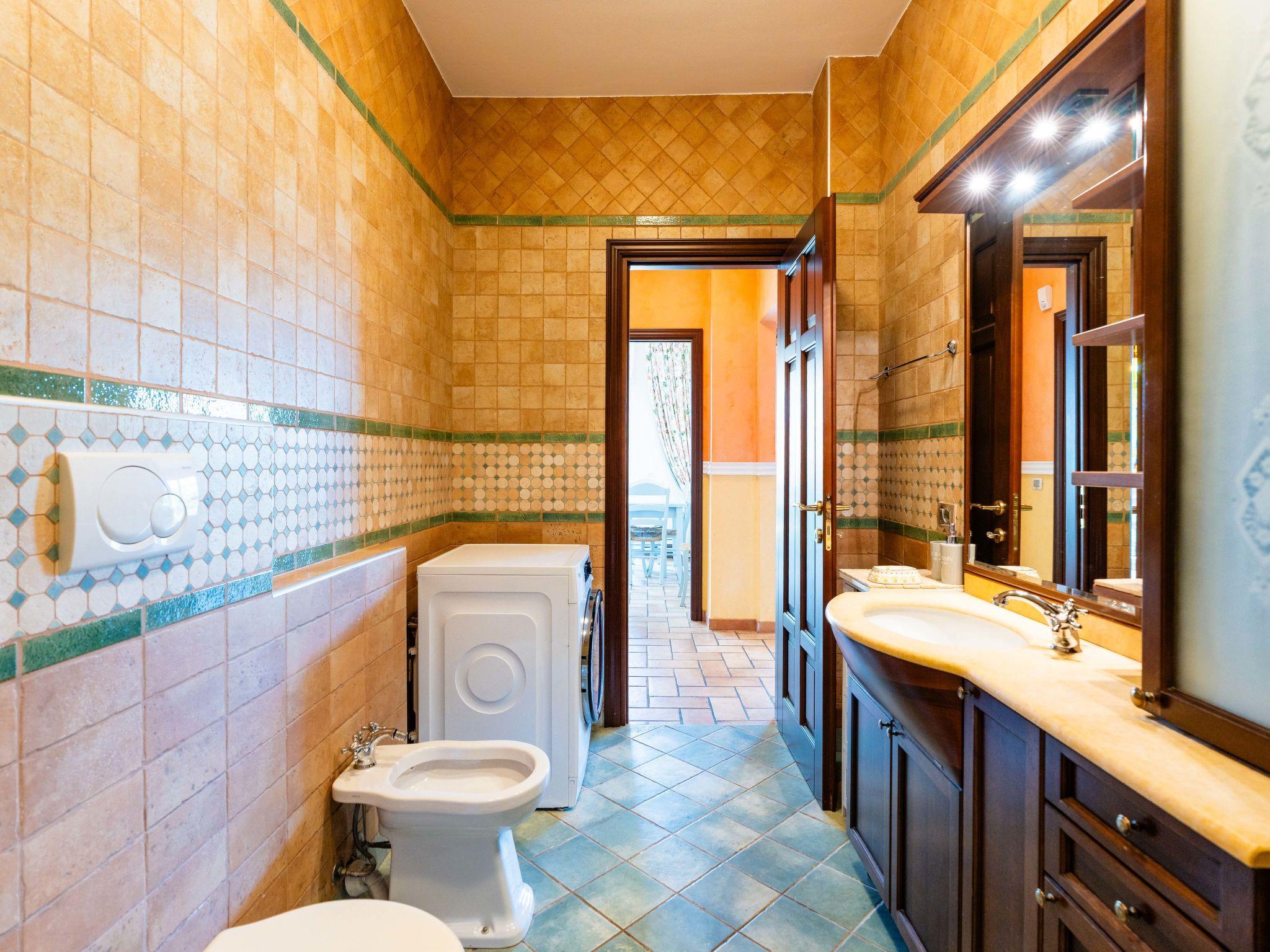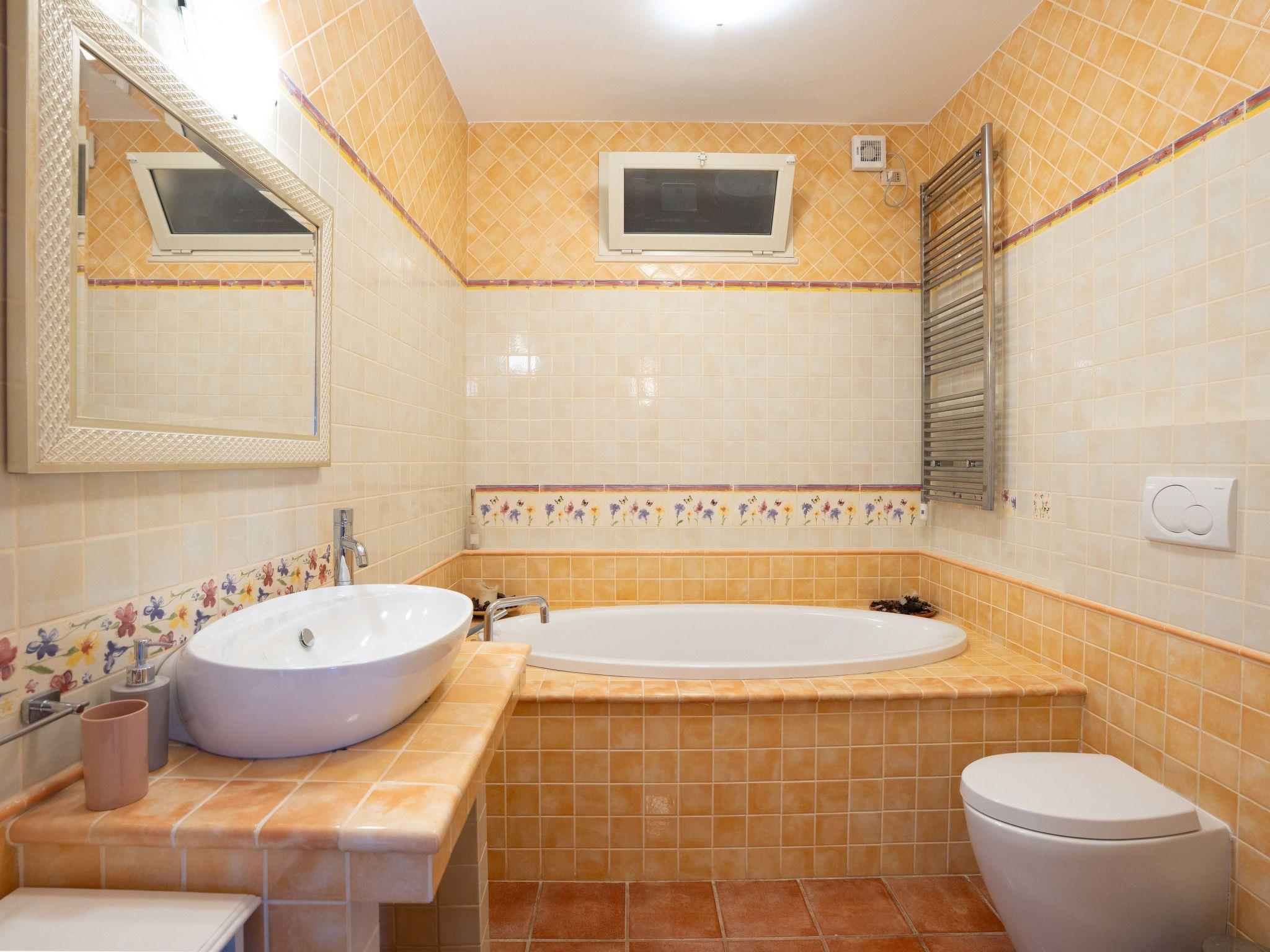 "Pineland app Garden", 4-room apartment 120 m2 on 1st floor. Tasteful and cosy furnishings: living/dining room with 1 double sofabed (160 cm, length 200 cm). Exit to the terrace. 2 double bedrooms. Exit to the balcony. 1 room with 2 beds (90 cm, length 200 cm). Kitchen-/living room (dishwasher, 4 gas rings, toaster, kettle, microwave, electric coffee machine). Exit to the balcony. Bath/bidet/WC, shower/bidet/WC. Gas heating, air-conditioning, forced-air heating. Heating available only from 01.11. to 15.04. Parquet floors. Balcony 20 m2, terrace 30 m2. Terrace furniture. Very beautiful panoramic view of the sea and the resort. Facilities: washing machine, children's high chair, baby cot for up to 2 year olds, hair dryer. Internet (WiFi, free). Please note: non-smoking house. Maximum 1 pet/ dog allowed. Private entrance. No internal connecting door between the separated properties. IT009012B4V9HGBJWF