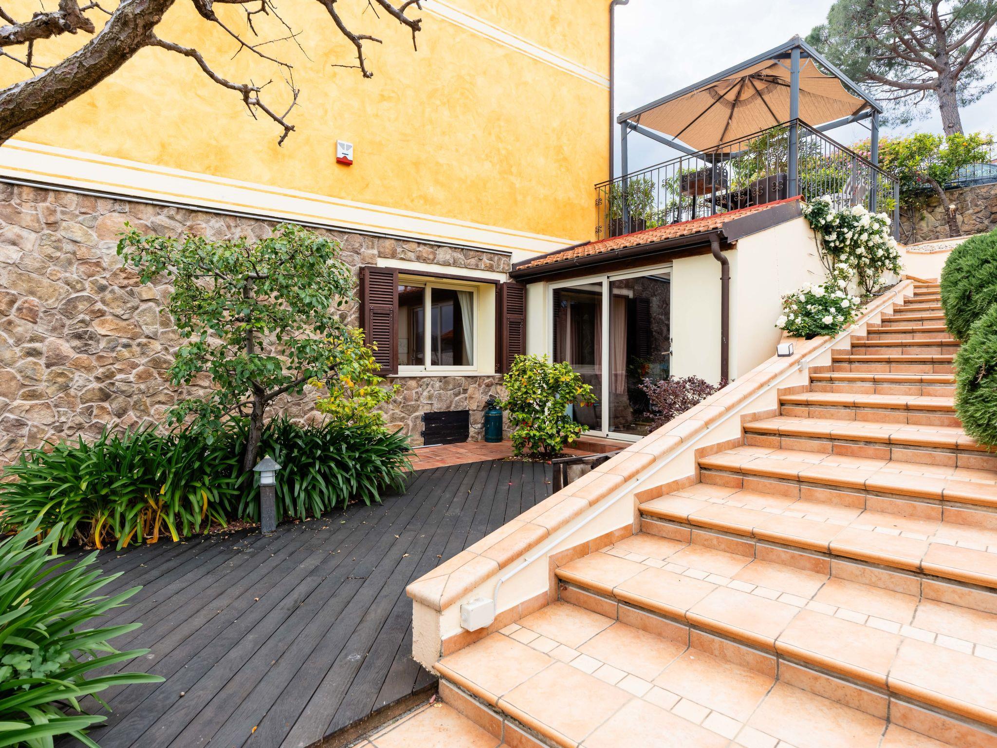 Very comfortable villa "Villa Pineland", 3 storeys. 2 km from the centre of Loano, 3 km from the centre of Borghetto Santo Spirito, 14 km from the centre of Alassio, 2 km from the sea. For shared use: garden 500 m2 (fenced) with lawn and plants, swimming pool kidney-shaped (8 x 4 m, depth 90 - 140 cm, seasonal availability: 01.Jun. - 30.Sep.) with internal staircase. Outdoor shower. Stepped path to the house. Public parking 10 m on the road. Grocery 1 km, supermarket 2 km, restaurant 2 km, bakery 2 km, bicycle rental 2 km, bus stop 400 m, railway station "Loano" 2.5 km, sandy beach "Loano" 2.2 km. Nearby attractions: Grotte Toirano 7 km. Please note: car recommended. Loading and unloading of baggage is possible at the holiday house.