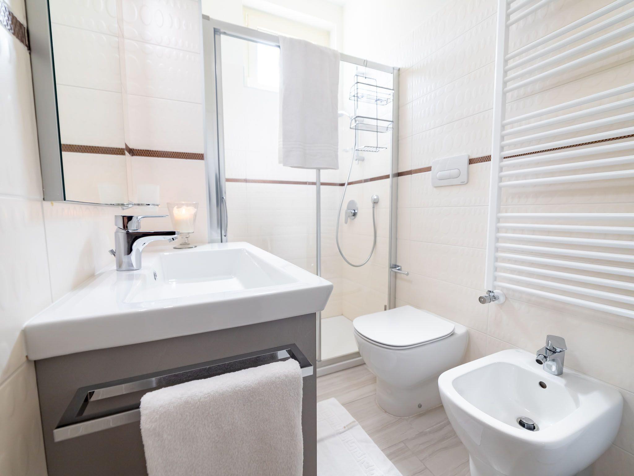 Spread over 55 square metres, on the first floor and enhanced by a lovely terrace with plenty of space in front for complete relaxation, the three-room Michelangelo apartment consists of a living room with table, double sofa bed, LED TV, kitchen with microwave, dishwasher, induction hob, kettle, double bedroom, small room for two and bathroom with shower, washing machine and radiator. Wi-Fi included. Private parking space available.