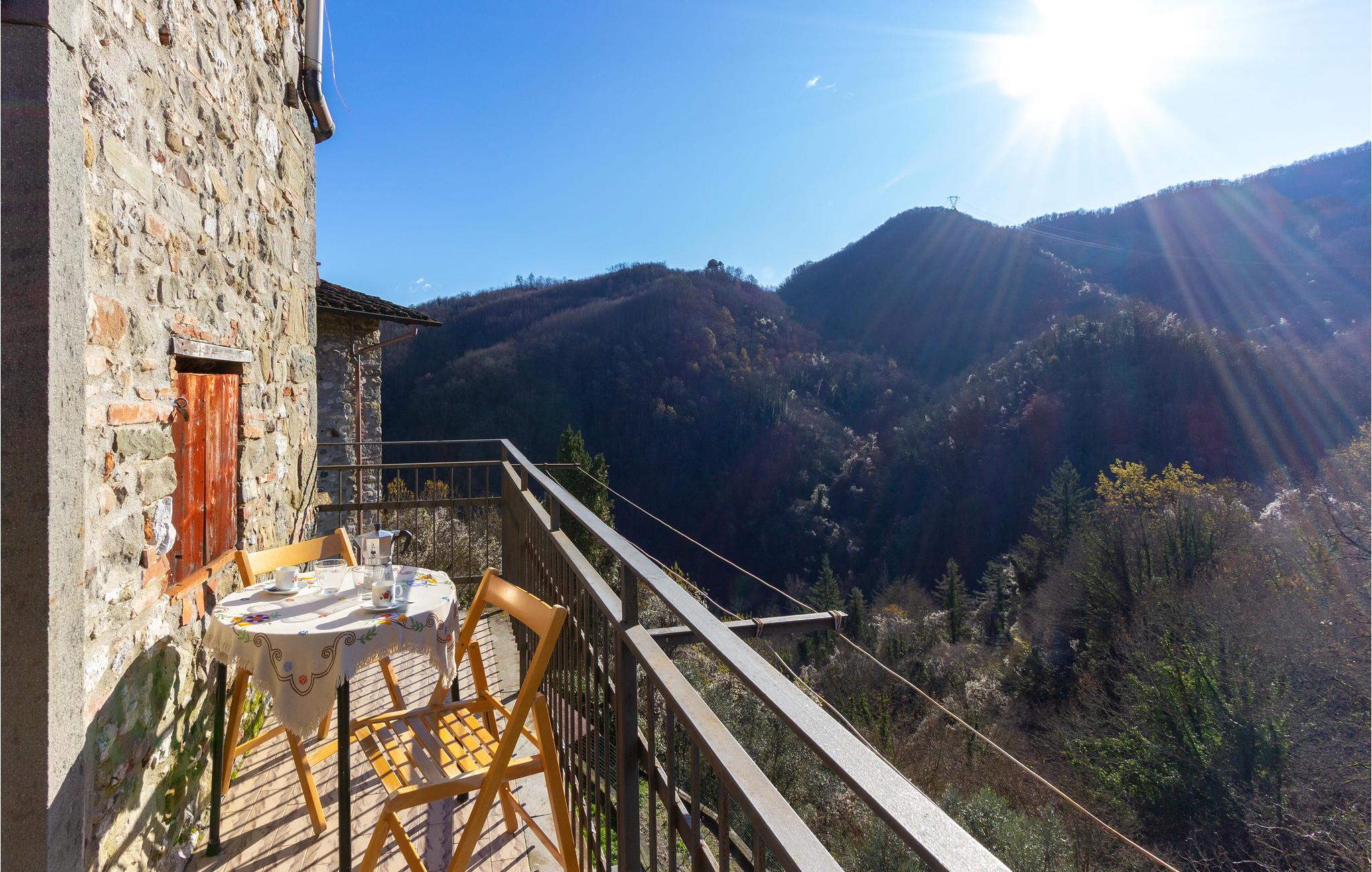 Denne ferielejlighed med altan med udsigt til det skønne landskab ligger i det historiske centrum af Giovano. En lille landsby bygget i sten på toppen af en høj ved floden Serchio, få km fra Lucca og på grænsen til Garfagnana, en bjergrig region hvor I kan vandre og sejle kano, og opdage huler, fæstninger og museer. Området er rigpå kulinariske traditioner og byfester, hvor lokale landbrugsprodukter kan smages. Kun 10 km fra lejligheden ligger Gallicano hvor der er butikker og indkøbsmuligheder, ligesom Bagni di Luccas kurbade hvor I kan slappe helt af. Se også ITL272. Begge lejligheders feriegæster såvel som husejeren benytter samme indgang.