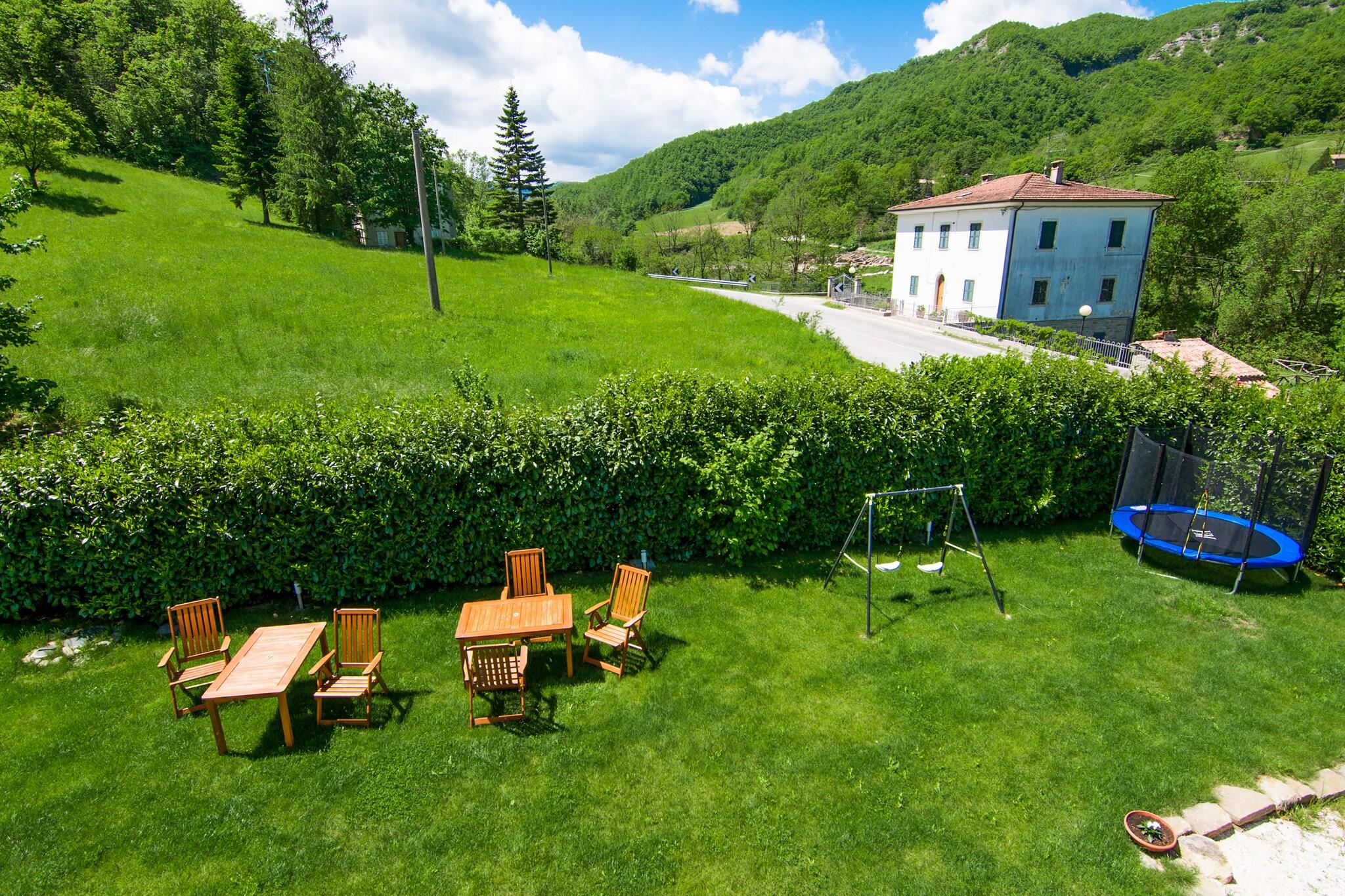 Fredeligt landligt tilbagetog Velkommen til din private flugt i hjertet af Marche-regionen. Dette smukt designede feriehus i Borgo Pace er omgivet af frodig natur og byder på rolige omgivelser for familier og venner. Tilbring dine dage med at slappe af ved den private pool, spis al fresco i den indhegnede have, eller se børnene nyde legeredskaberne og gyngestativet. Hjemmet omfatter flere terrasser til at nyde solen og frisk bjergluft. Med en høj stol og barneseng til rådighed, er små gæster lige så velkomne - og kæledyr også! Udforsk renæssancen og naturens vidundere Kun 1 km fra den maleriske landsby Borgo Pace er du perfekt positioneret til at udforske Marches skjulte perler. Besøg Mercatello sul Metauro (4 km) for dens middelalderlige charme, historiske kirker og livlige piazzaer. Kunstelskere bør ikke gå glip af Urbino (39 km), Raphaels fødested og hjemsted for det fantastiske Palazzo Ducale. For naturskønne gåture i naturen eller kæledyrsvenlige vandreture, tag til Gola del Furlo-kløften eller Alpe della Luna-naturreservatet - begge under en time væk. Smag Le Marches smag Start dit kulinariske eventyr kun 500 m væk på en hyggelig lokal trattoria i Borgo Pace. For flere muligheder, tag til Mercatellos charmerende caféer og restauranter, der serverer regionale specialiteter som trøffelpasta og stegt kød. På solrige dage kan du planlægge en køretur til Fano (79 km) eller Riccione (69 km) for fisk og skaldyr ved stranden, parret med et glas Verdicchio og en fantastisk udsigt over Adriaterhavet.