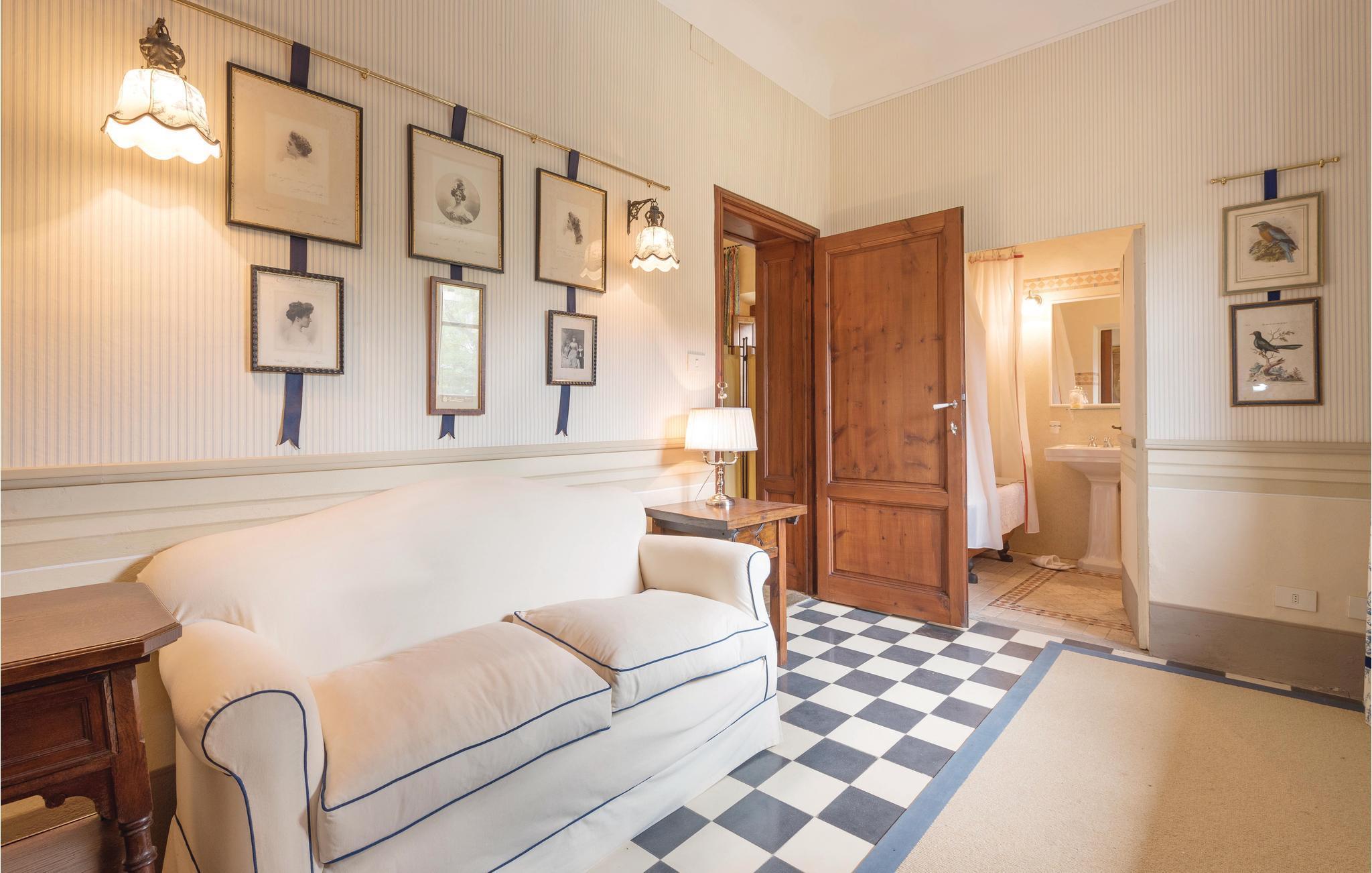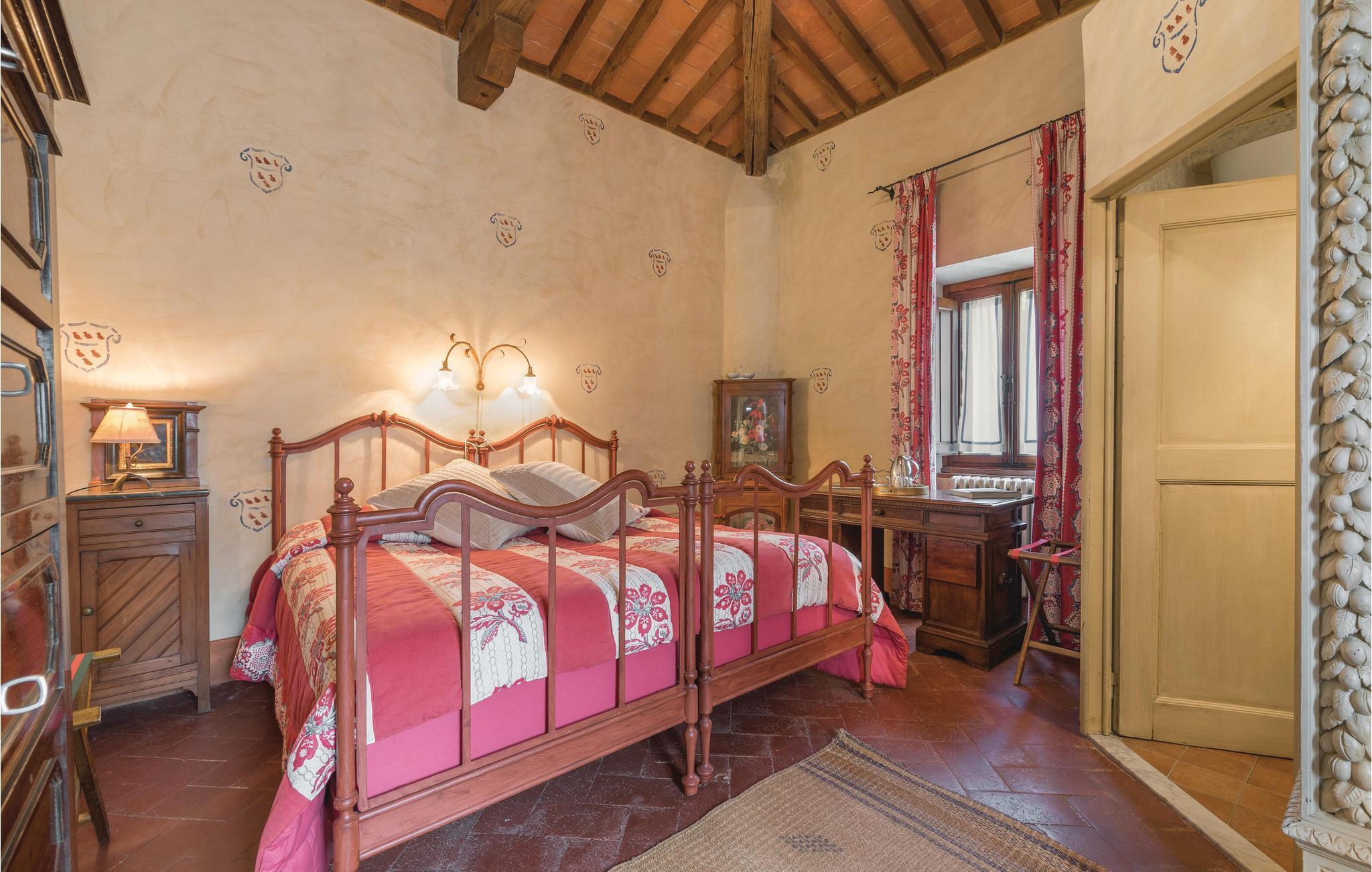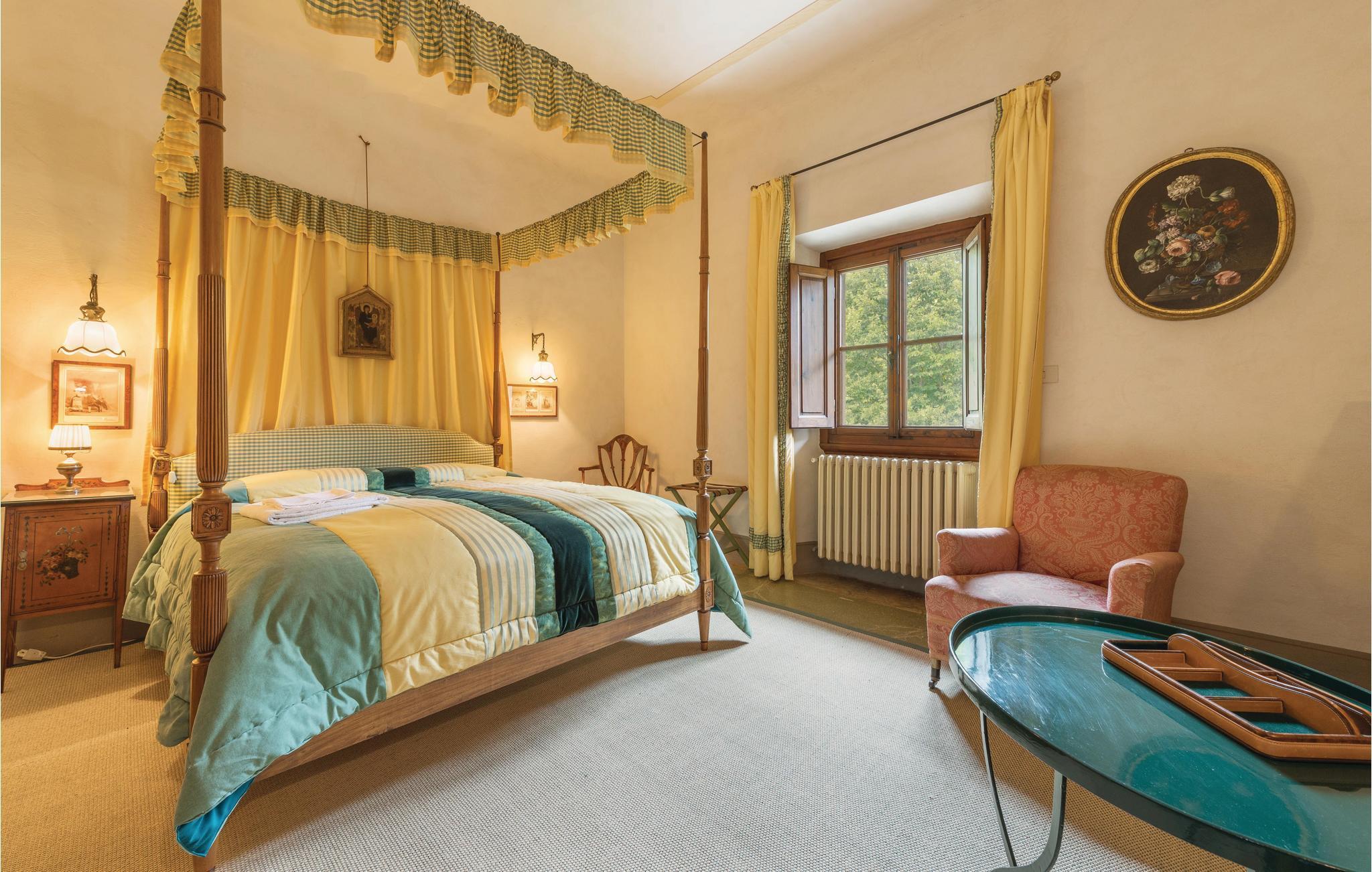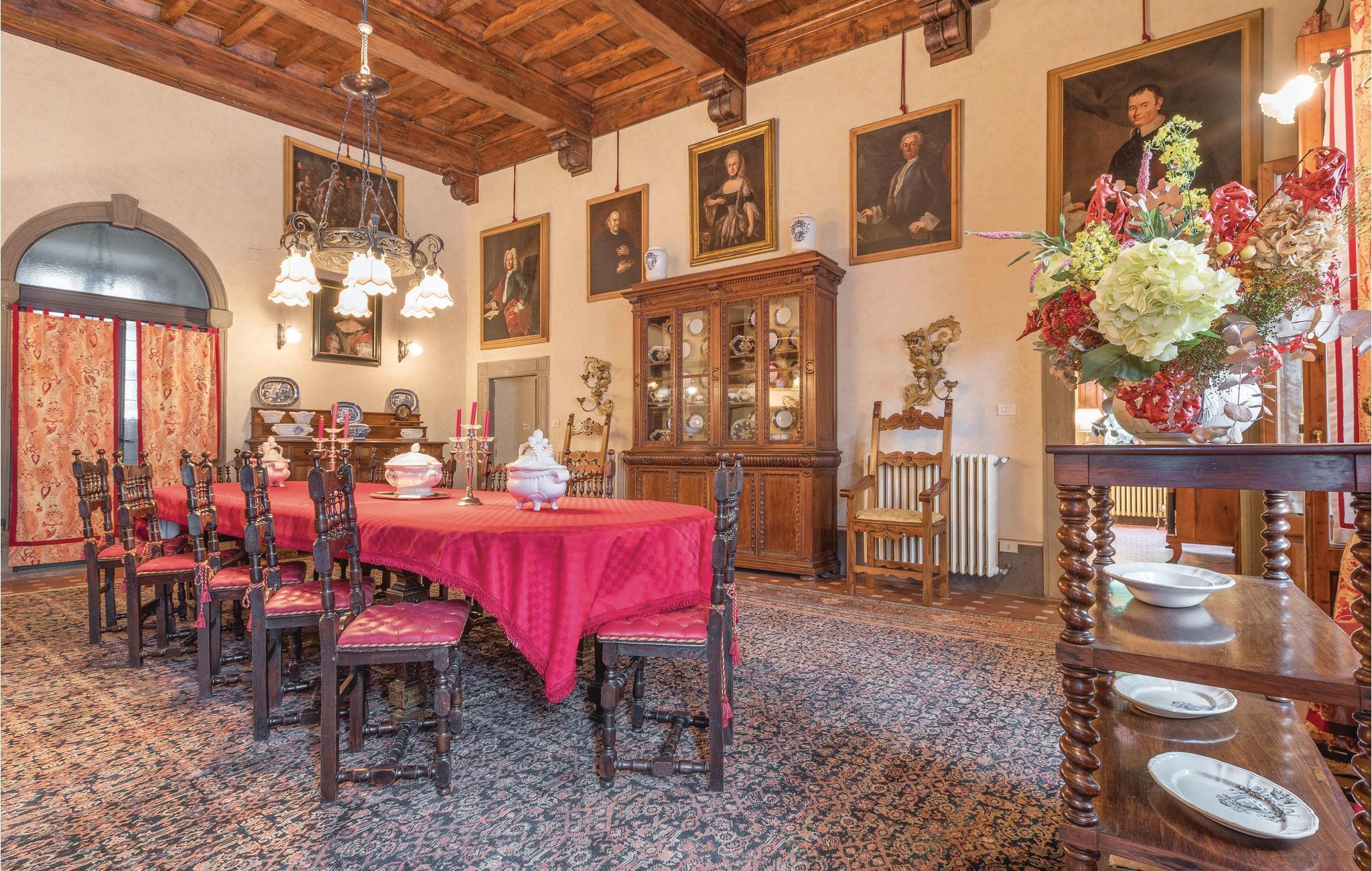 Denne antikke herregård fra det 18. århundrede med privat pool ligger i Mugello-dalen for foden af bakkerne, kun 20 km fra den vidunderlige by Firenze. Den karakteristiske ejendom er indrettet med komfortable og flere antikke møbler samt original dekoration, hvilket giver huset en særpræget stil. Der er en rummelig grund omkring huset, et udendørs område med en stor brændeovn og forskellige værelser, hvor I kan slappe af eller spille billard. Jeres ferielejlighed er fordelt over tre etager, som er forbundet med en elevator. Takket være ejendommens centrale beliggenhed kan I nemt køre til de vidunderlige kunstbyer Firenze, Siena, Lucca og Pisa. Alternativt er der forbindelser til togstationen Borgo San Lorenzo 7 km væk. Poolen har en speciel form (ca. 8x4,5 m, dybde 1,60). På den store grund (ca. 20.000 m²) er der et indhegnet område med et bondehus, som er beboet af en familie. På bagsiden af villaen ligger husejerens bolig, hvor I kan checke ind og ud. Afstande: Firenze 20 km, adgang til motorvej Barberino di Mugello 22 km, San Gimignano 95 km, Siena 115 km, Lucca 105 km, Pisa 125 km. På første sal er der et morgenmadsværelse med tv, hvorfra der er trappe til bryggers.