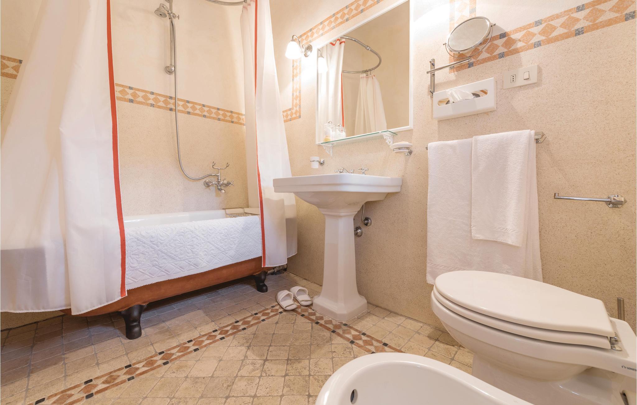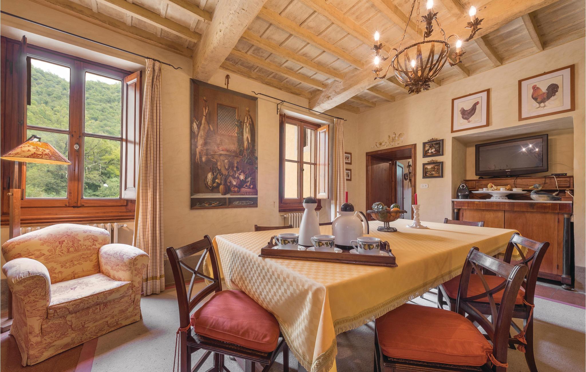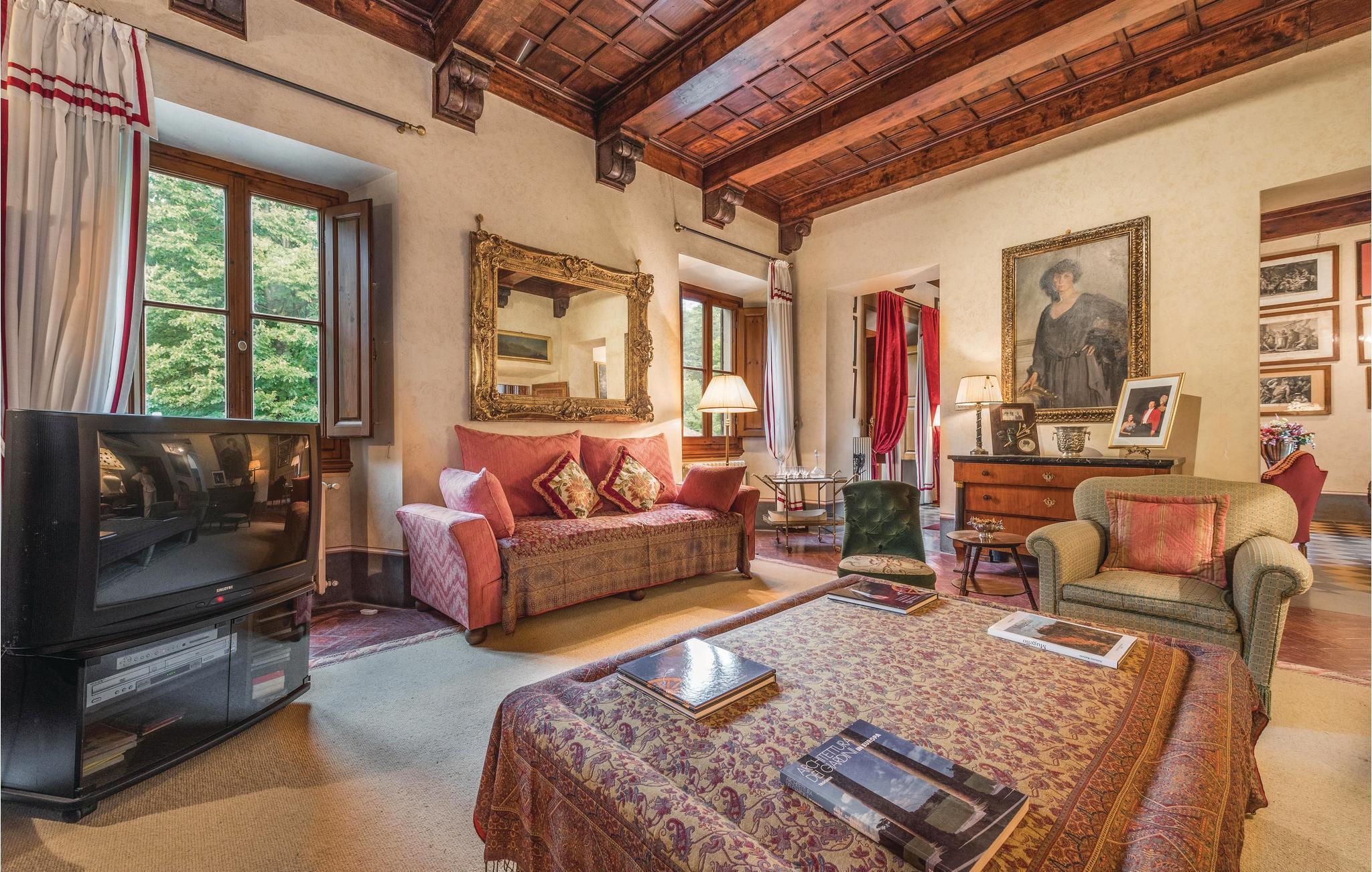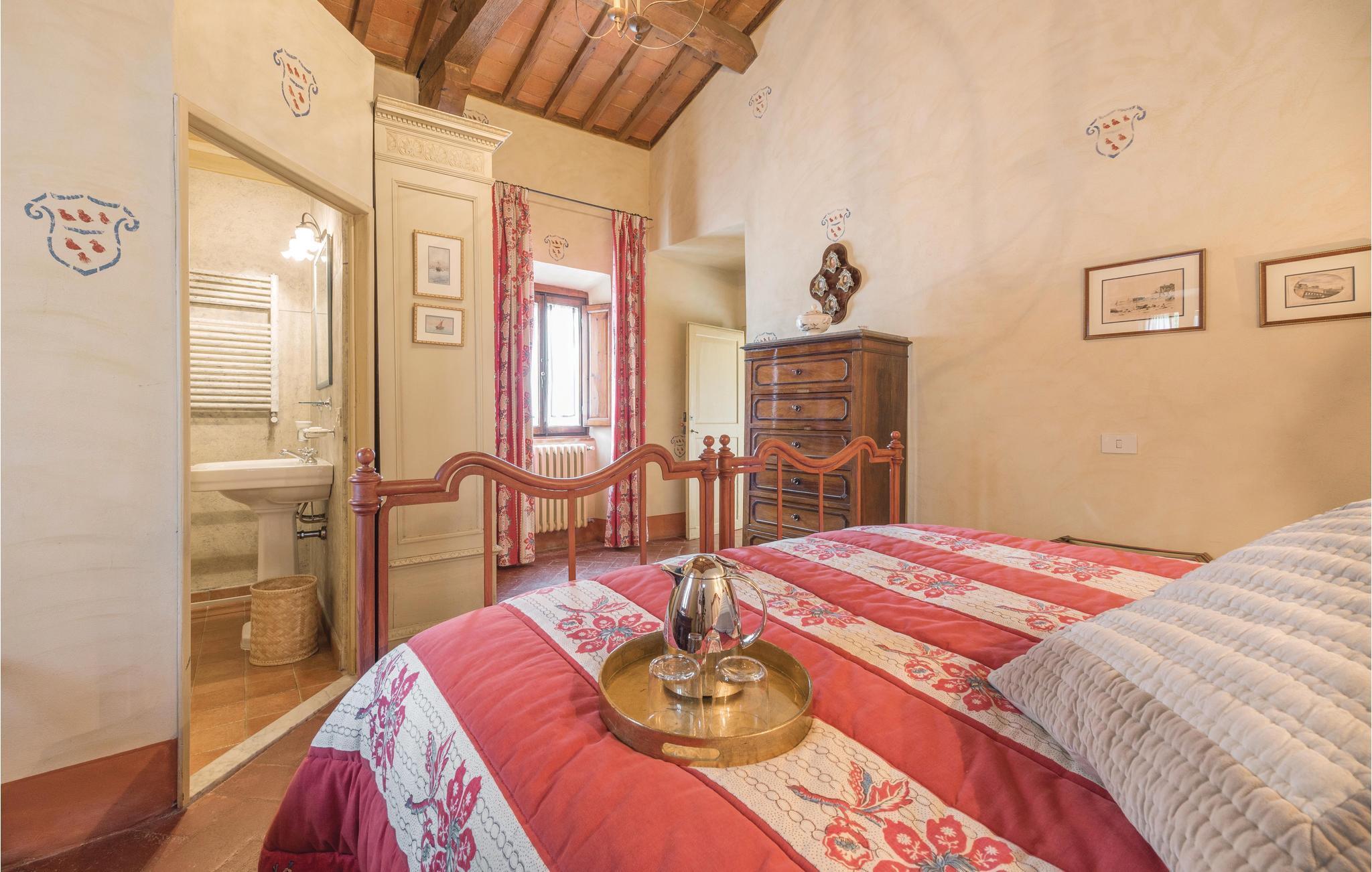 Denne antikke herregård fra det 18. århundrede med privat pool ligger i Mugello-dalen for foden af bakkerne, kun 20 km fra den vidunderlige by Firenze. Den karakteristiske ejendom er indrettet med komfortable og flere antikke møbler samt original dekoration, hvilket giver huset en særpræget stil. Der er en rummelig grund omkring huset, et udendørs område med en stor brændeovn og forskellige værelser, hvor I kan slappe af eller spille billard. Jeres ferielejlighed er fordelt over tre etager, som er forbundet med en elevator. Takket være ejendommens centrale beliggenhed kan I nemt køre til de vidunderlige kunstbyer Firenze, Siena, Lucca og Pisa. Alternativt er der forbindelser til togstationen Borgo San Lorenzo 7 km væk. Poolen har en speciel form (ca. 8x4,5 m, dybde 1,60). På den store grund (ca. 20.000 m²) er der et indhegnet område med et bondehus, som er beboet af en familie. På bagsiden af villaen ligger husejerens bolig, hvor I kan checke ind og ud. Afstande: Firenze 20 km, adgang til motorvej Barberino di Mugello 22 km, San Gimignano 95 km, Siena 115 km, Lucca 105 km, Pisa 125 km. På første sal er der et morgenmadsværelse med tv, hvorfra der er trappe til bryggers.