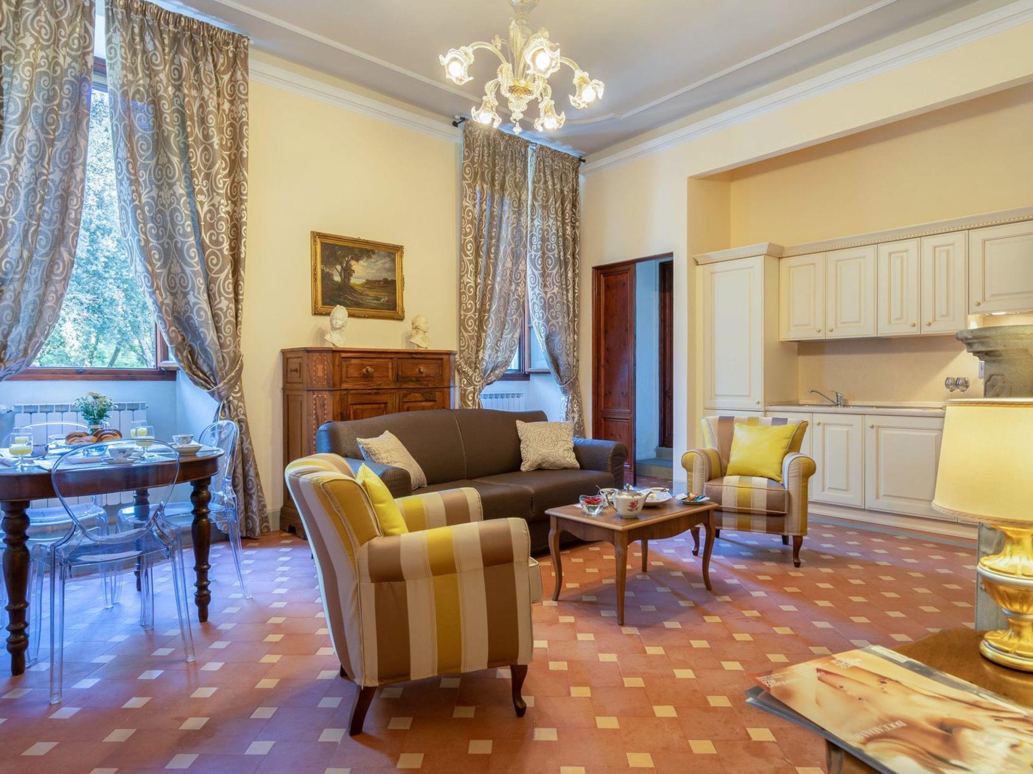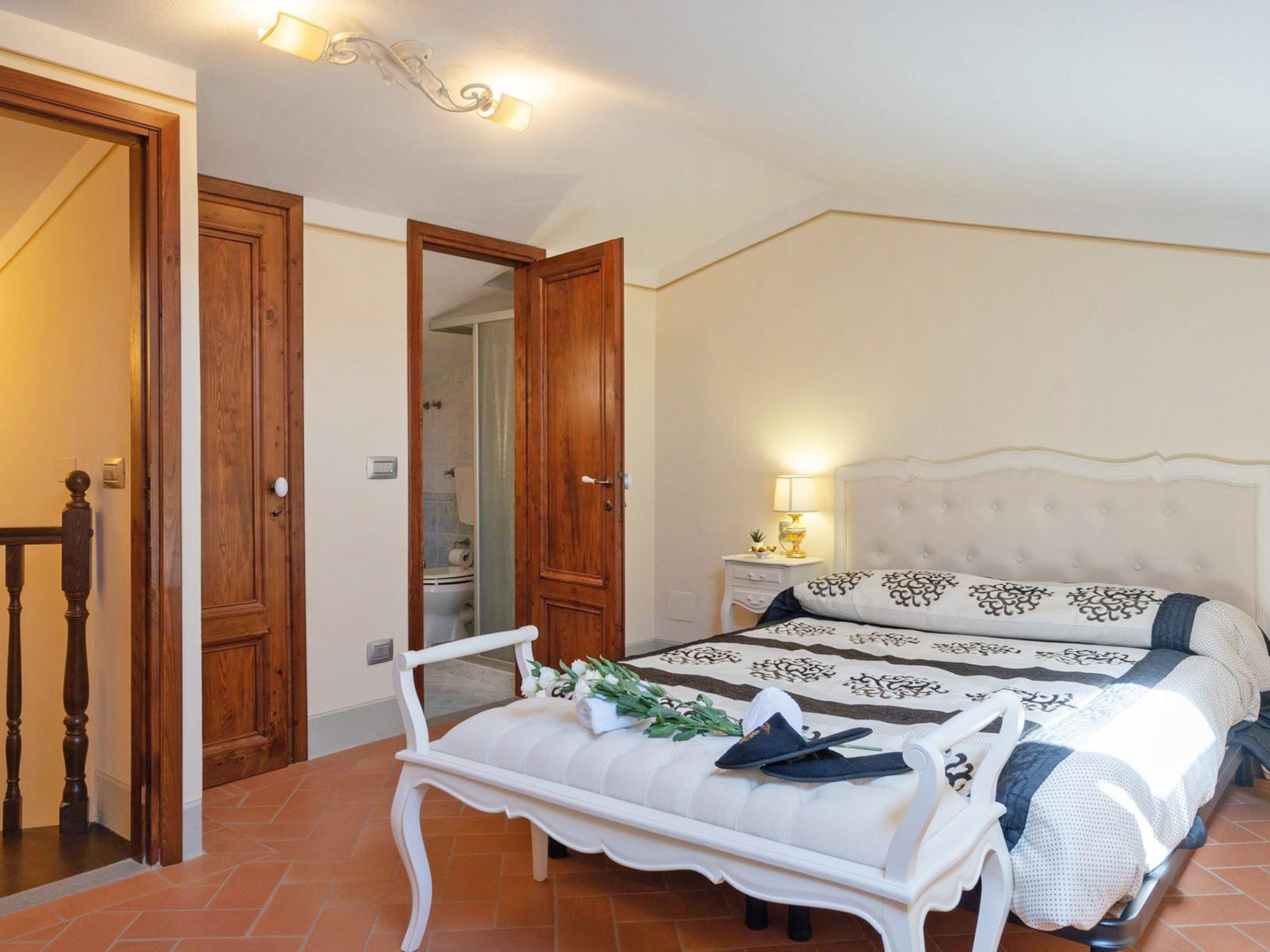 Villa Beatrice located in a hilly position half an hour by car and train from Florence (the train station is 1600 meters from the property) 10 minutes from the Mugello racetrack and the Golf %26 Country Club “Poggio dei Medici ”, an excellent starting point for visiting the surroundings of Mugello and the art cities of Tuscany. The villa, dating back to 1700 and recently renovated, is arranged on several levels and includes 6 autonomous units for a total of 26 people. The furnishings are finely cared for in detail, guaranteeing the atmosphere and authenticity of an eighteenth-century villa, with stylish furniture and antique elements. The structure lends itself very well to being rented as a single environment as on the ground floor there is a large dining room where you can all comfortably eat together, while on the first floor there is a fully equipped common professional kitchen. The use of the professional kitchen is permitted exclusively to the chef appointed by the property or to professionals with HACCP certification, subject to the property's approval. Villa "Beatrice", 600 m a.s.l., detached, built in 1700, renovated in 2018. 6.7 km from the centre of Borgo San Lorenzo, 12.5 km from the centre of Vicchio, 38 km from the centre of Firenze, in a secluded, quiet, sunny position on top of a hill, 20 km from the lake. Private: park (fenced), swimming pool (6 x 11 m, depth 150 cm, seasonal availability: 18.May. - 30.Sep.). Garden furniture, barbecue. In the house: central heating system, heating to be paid on the spot, heating available only from 01.Nov. - 04.Apr.. House maid daily on request (extra). Cook on request (extra). Parking on the premises. Shop 6 km, supermarket 15 km, restaurant 1.2 km, bus stop 300 m, railway station "Borgo San Lorenzo" 6 km, bathing lake "Bilancino" 20 km. Golf course (18 hole) 8 km. Nearby attractions: Autodromo del Mugello 11 km, Scarperia 17 km, Marradi 27 km, Firenzuola 30 km, Fiesole 31 km. Please note: suitable for families.
