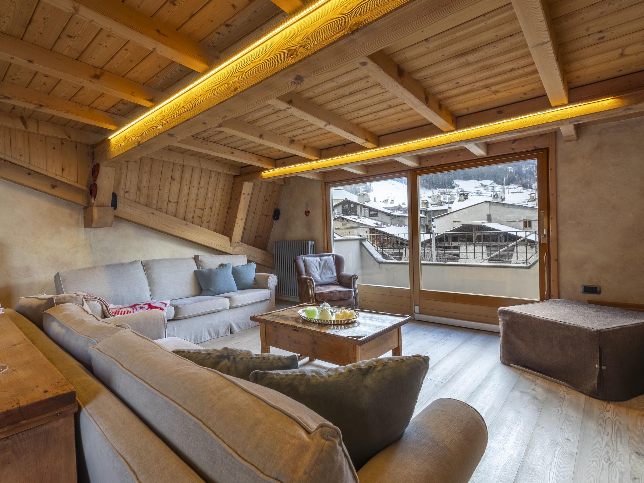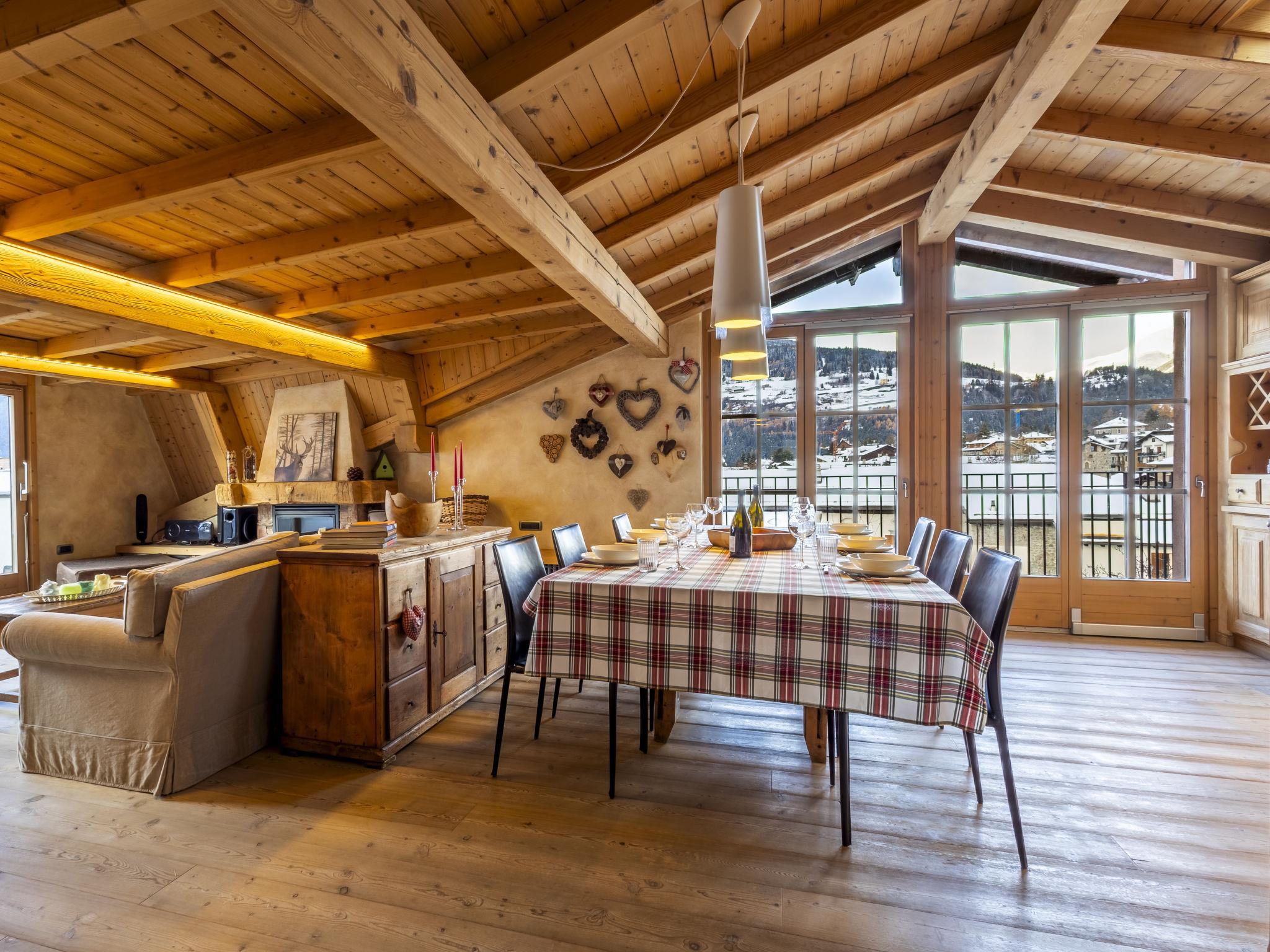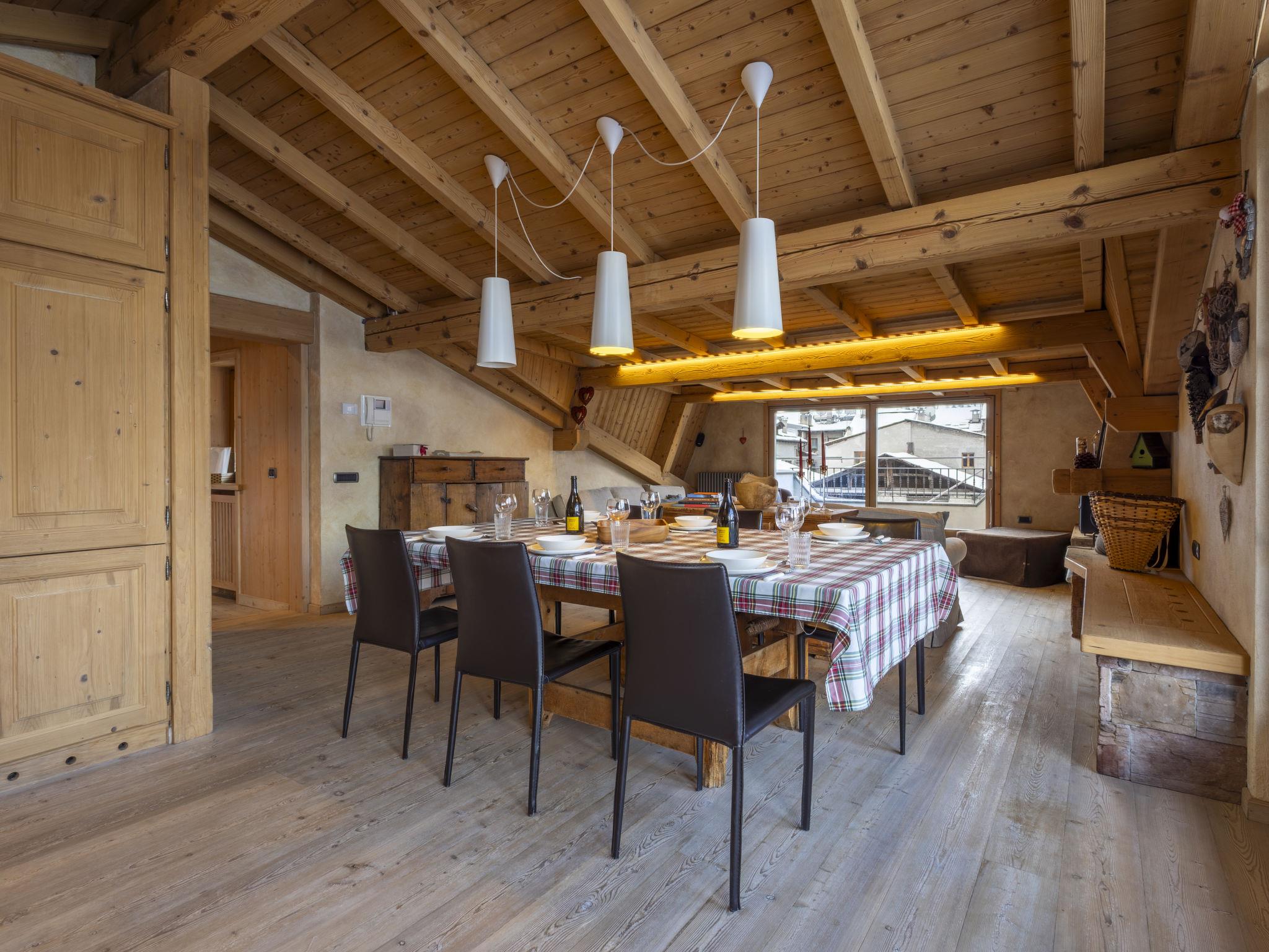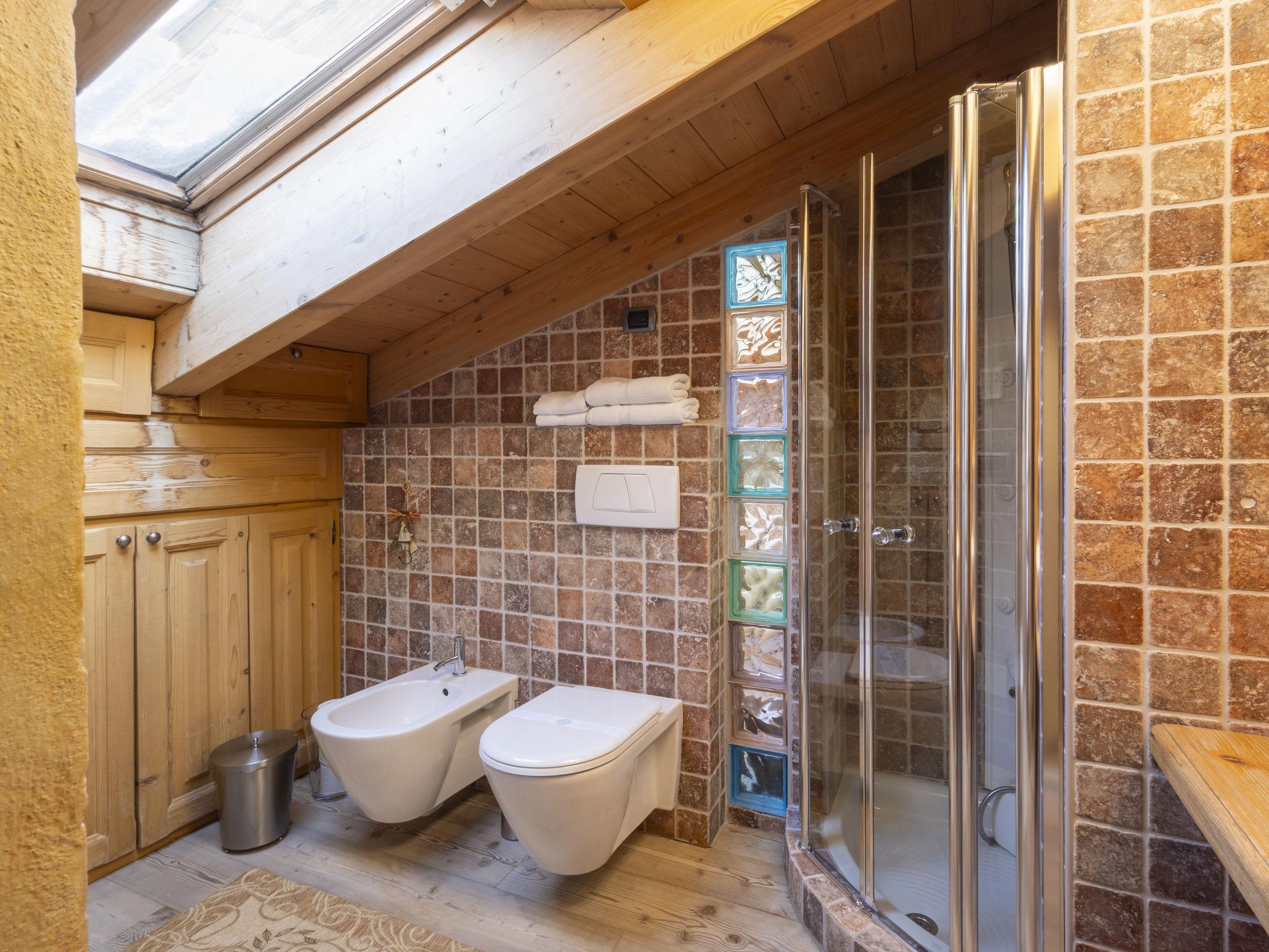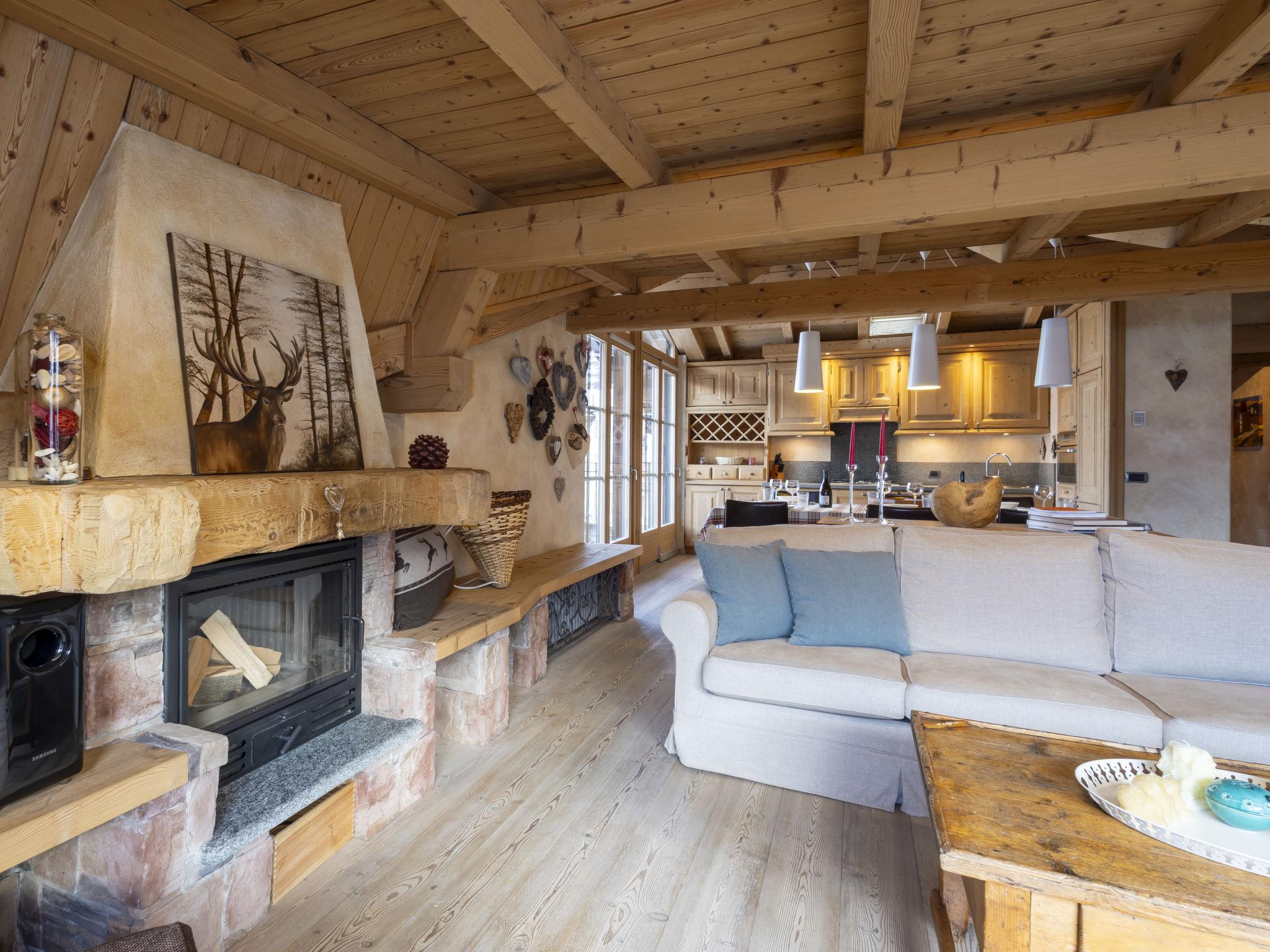 4-room penthouse 110 m2 on 2nd floor. Spacious and bright, with sloping ceilings, stylish and wooden furniture furnishings: large living/dining room with open-hearth fireplace (only for decoration), dining table and TV. Exit to the balcony. 1 double bedroom with sloping ceilings with bath/bidet/WC, double hand-basin and hydro massage bath. 1 room with sloping ceilings with 1 bed. Exit to the balcony. 1 room with sloping ceilings with 2 beds. Exit to the balcony. Large kitchenette (oven, dishwasher, 5 gas rings, toaster, kettle, microwave, freezer, electric coffee machine, Capsules for coffee machine (Nespresso) free) with dining table. Exit to the balcony. Shower/bidet/WC, hydro massage shower. Heating. Parquet floors. 4 balconies. Balcony furniture. Panoramic view of the mountains and the valley. Facilities: washing machine, iron, children's high chair, baby cot, hair dryer. Internet (WiFi, free). Parking (roofed) at the house. Please note: suitable for families. Non-smokers only. Maximum 1 pet/ dog allowed. Smoke alarm, fire extinguisher, no lift. IT014009B4U57S6GTH