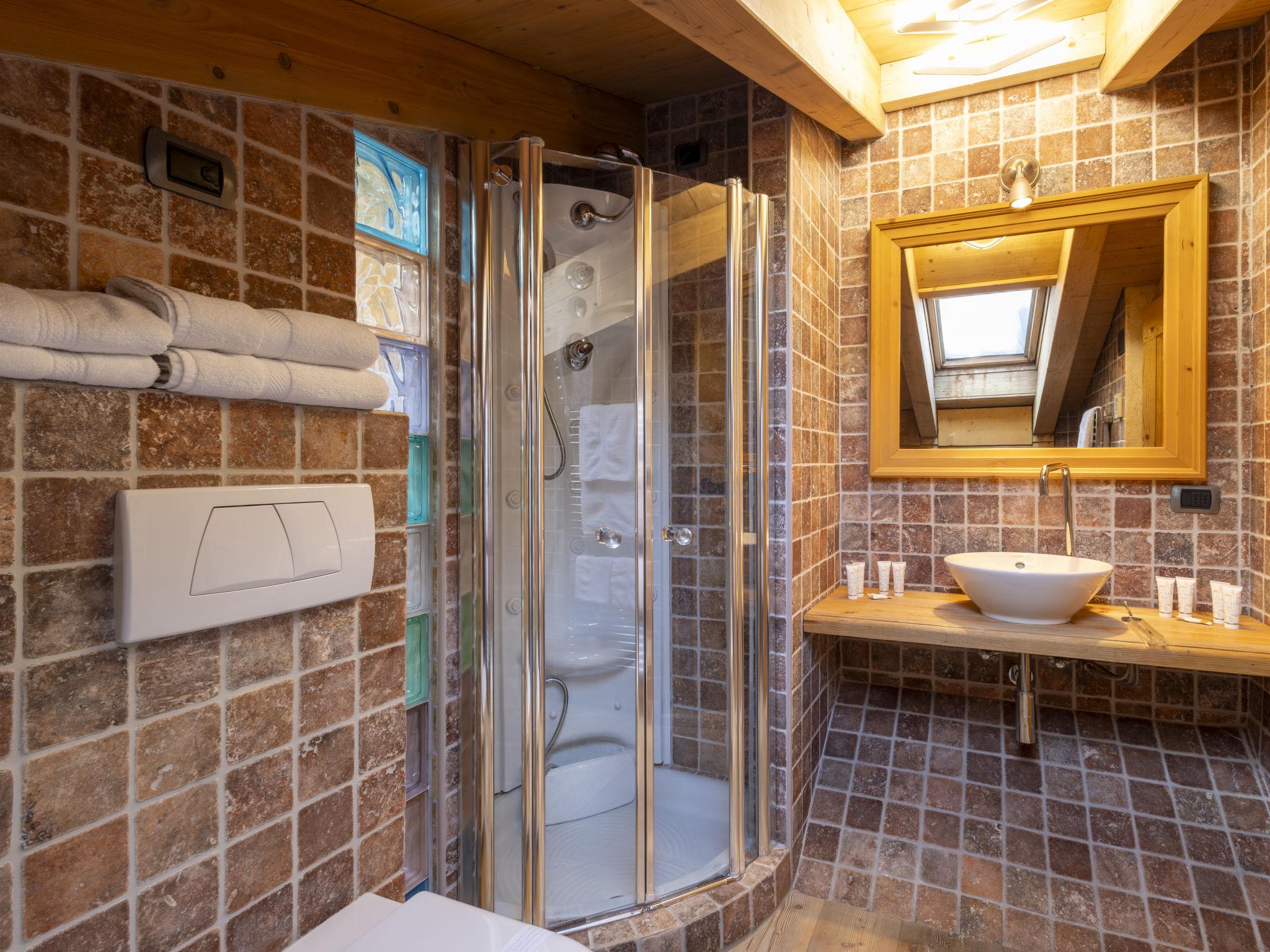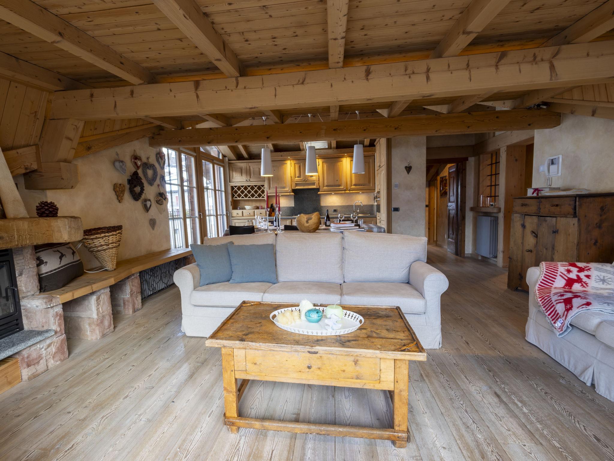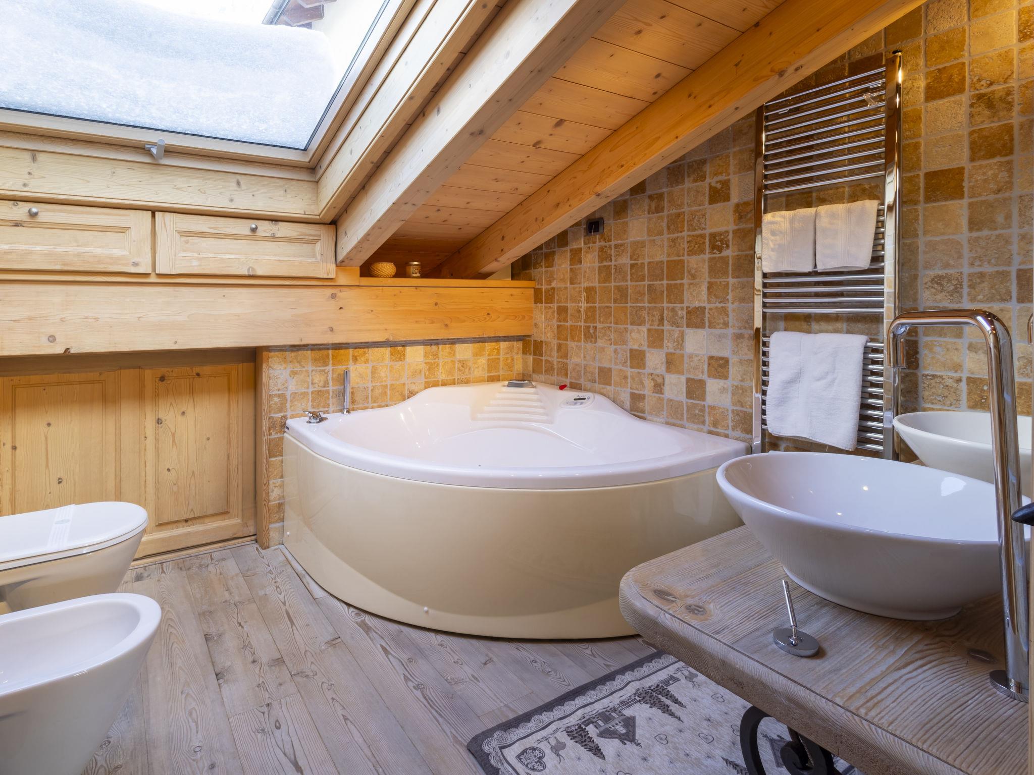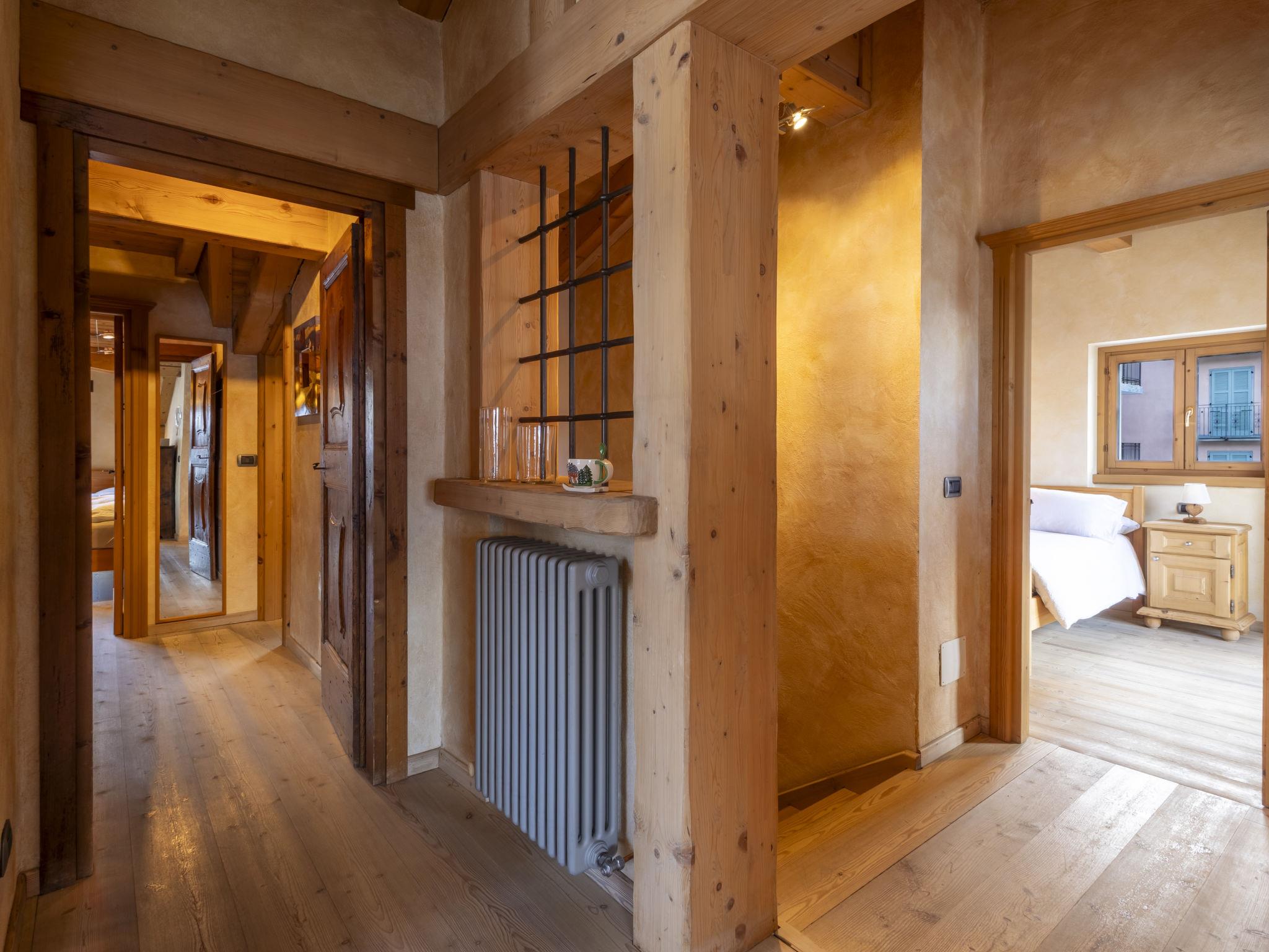 4-room penthouse 110 m2 on 2nd floor. Spacious and bright, with sloping ceilings, stylish and wooden furniture furnishings: large living/dining room with open-hearth fireplace (only for decoration), dining table and TV. Exit to the balcony. 1 double bedroom with sloping ceilings with bath/bidet/WC, double hand-basin and hydro massage bath. 1 room with sloping ceilings with 1 bed. Exit to the balcony. 1 room with sloping ceilings with 2 beds. Exit to the balcony. Large kitchenette (oven, dishwasher, 5 gas rings, toaster, kettle, microwave, freezer, electric coffee machine, Capsules for coffee machine (Nespresso) free) with dining table. Exit to the balcony. Shower/bidet/WC, hydro massage shower. Heating. Parquet floors. 4 balconies. Balcony furniture. Panoramic view of the mountains and the valley. Facilities: washing machine, iron, children's high chair, baby cot, hair dryer. Internet (WiFi, free). Parking (roofed) at the house. Please note: suitable for families. Non-smokers only. Maximum 1 pet/ dog allowed. Smoke alarm, fire extinguisher, no lift. IT014009B4U57S6GTH