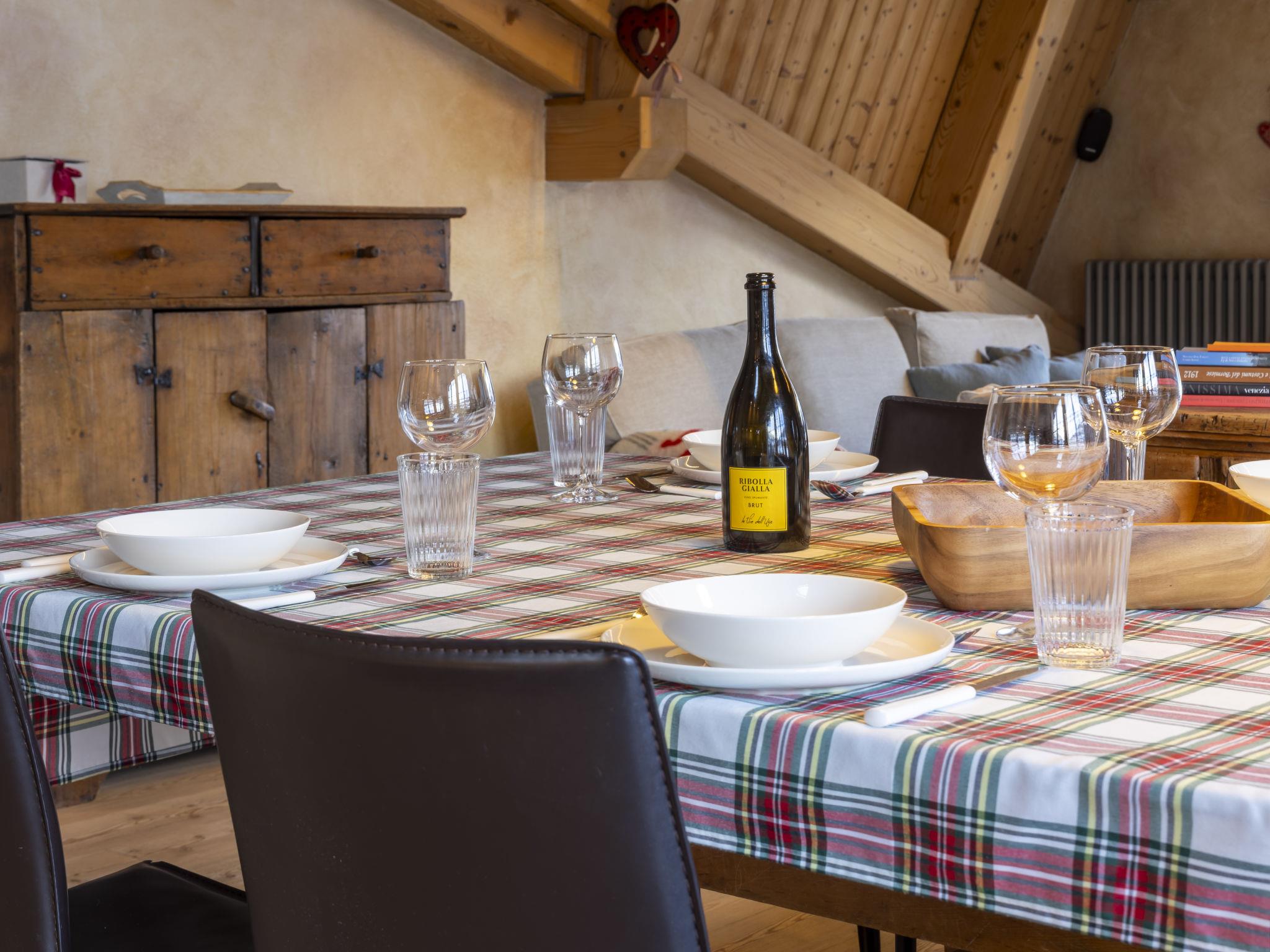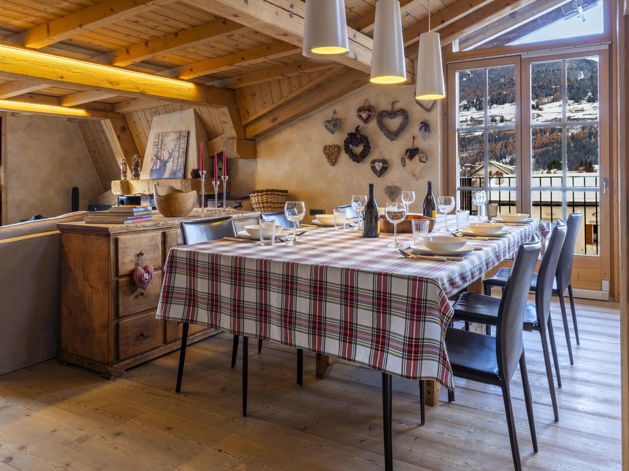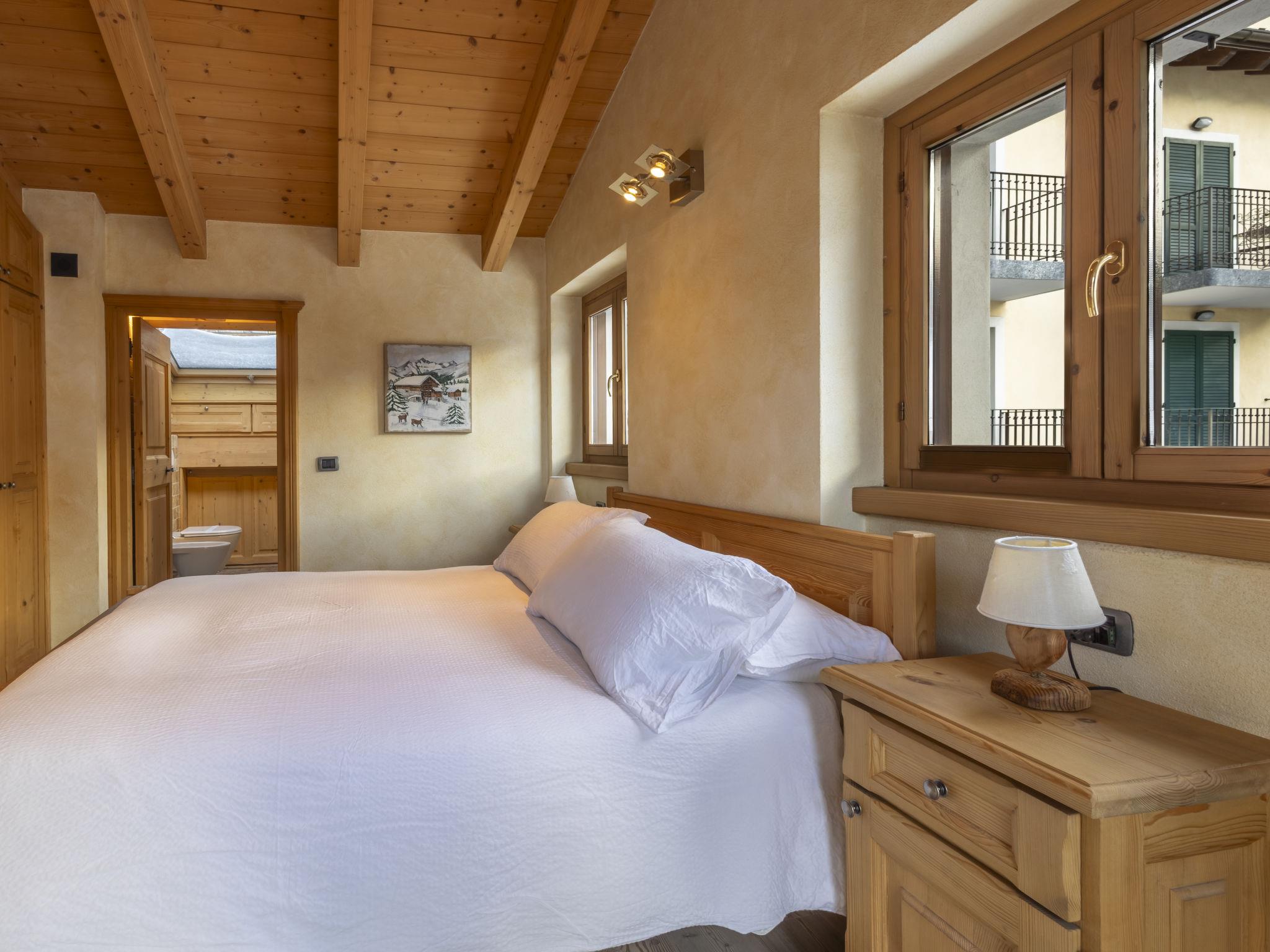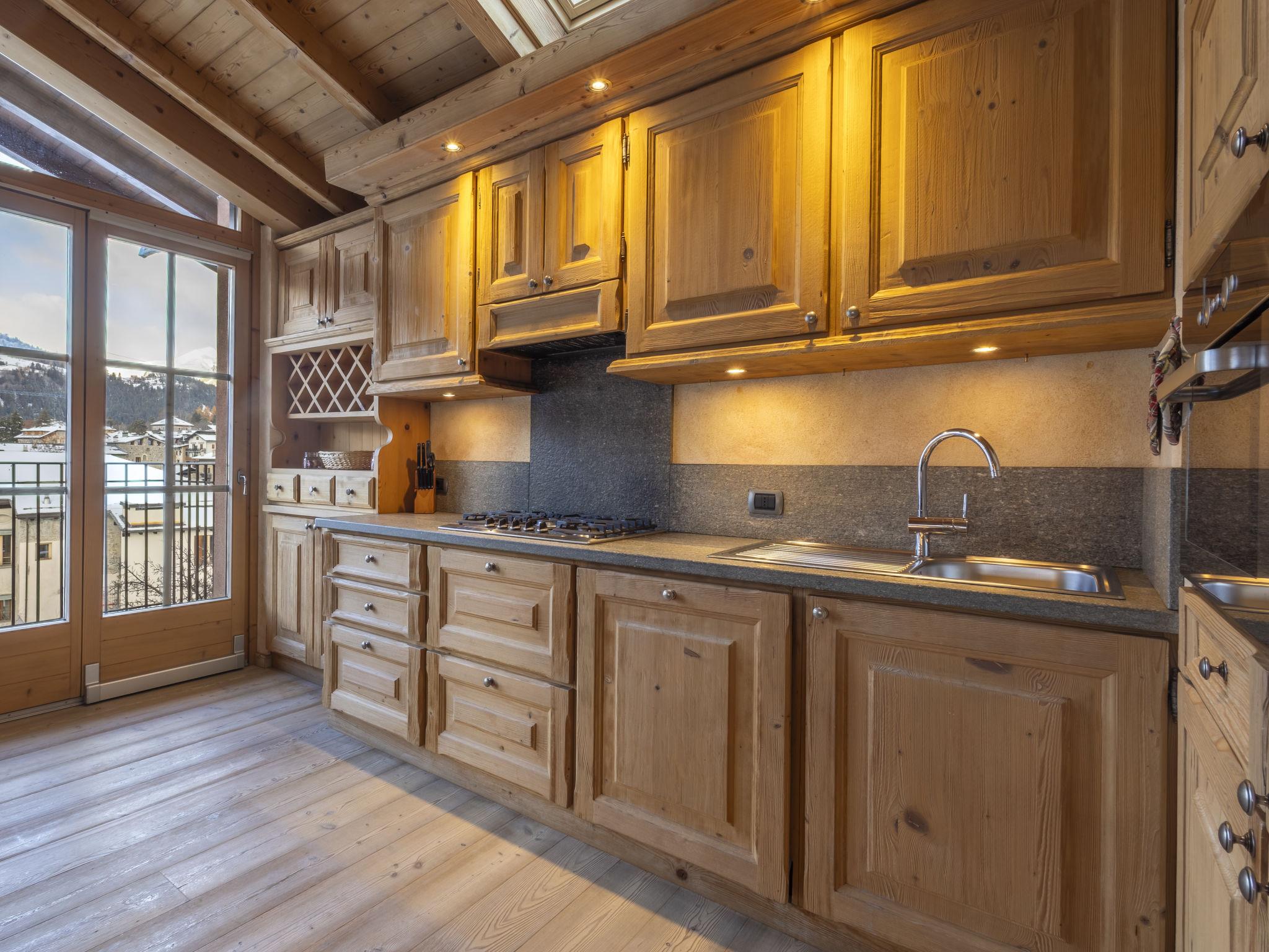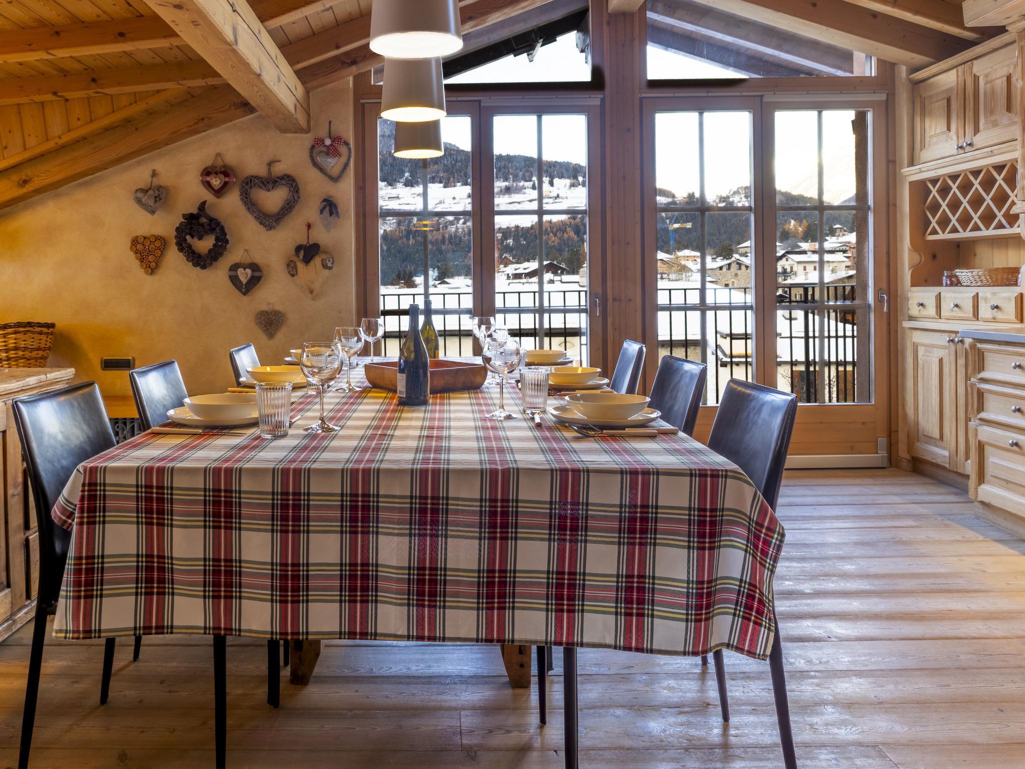 4-room penthouse 110 m2 on 2nd floor. Spacious and bright, with sloping ceilings, stylish and wooden furniture furnishings: large living/dining room with open-hearth fireplace (only for decoration), dining table and TV. Exit to the balcony. 1 double bedroom with sloping ceilings with bath/bidet/WC, double hand-basin and hydro massage bath. 1 room with sloping ceilings with 1 bed. Exit to the balcony. 1 room with sloping ceilings with 2 beds. Exit to the balcony. Large kitchenette (oven, dishwasher, 5 gas rings, toaster, kettle, microwave, freezer, electric coffee machine, Capsules for coffee machine (Nespresso) free) with dining table. Exit to the balcony. Shower/bidet/WC, hydro massage shower. Heating. Parquet floors. 4 balconies. Balcony furniture. Panoramic view of the mountains and the valley. Facilities: washing machine, iron, children's high chair, baby cot, hair dryer. Internet (WiFi, free). Parking (roofed) at the house. Please note: suitable for families. Non-smokers only. Maximum 1 pet/ dog allowed. Smoke alarm, fire extinguisher, no lift. IT014009B4U57S6GTH