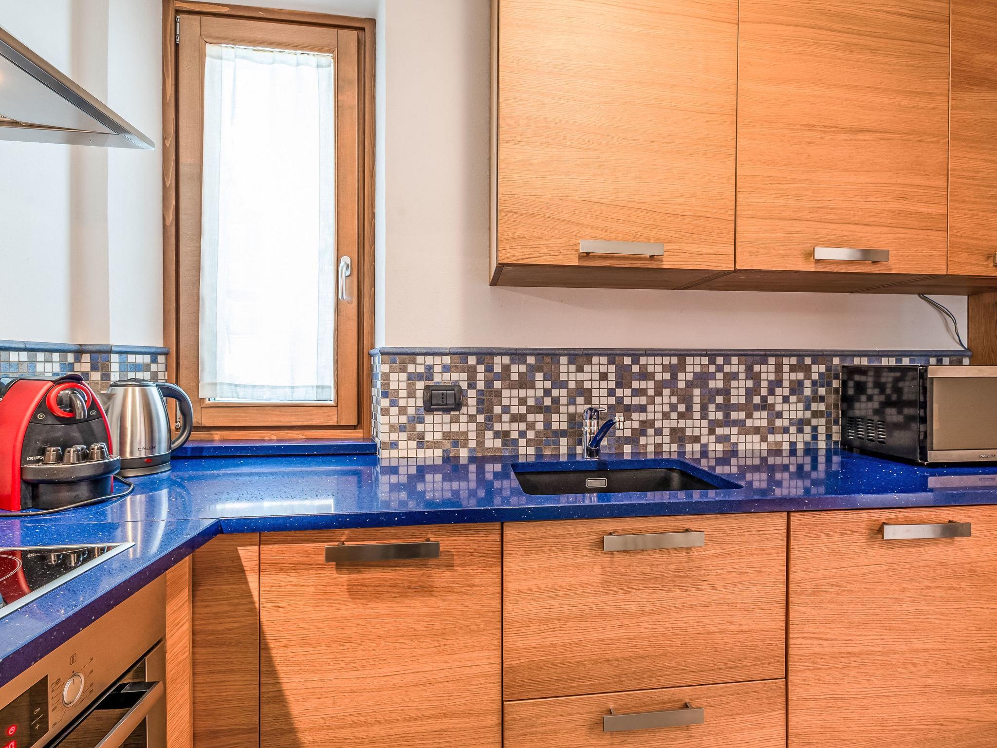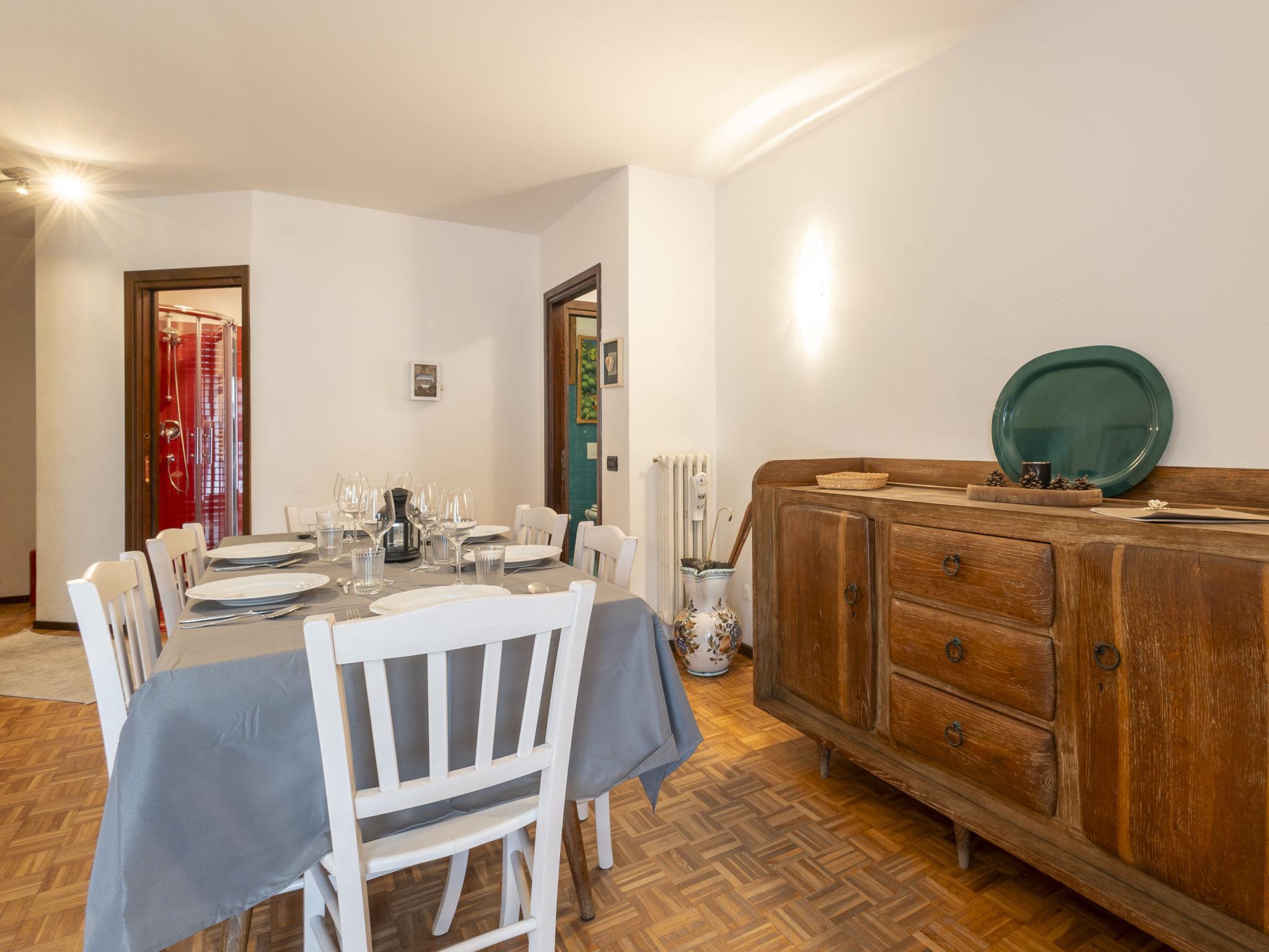 3-room apartment 75 m2, on the ground floor, south facing position. Bright, practical and comfortable furnishings: living/dining room with dining table and TV. Exit to the terrace. 1 room with 2 x 2 bunk beds. 1 double bedroom. Exit to the terrace. Small kitchen (oven, dishwasher, 4 induction hot plates, toaster, kettle, microwave, freezer, electric coffee machine, Capsules for coffee machine (Nespresso) free). 2 showers/bidet/WC. Heating. Parquet floors. Terrace. Terrace furniture. View of the mountains and the garden. Facilities: washing machine, children's high chair, baby cot, hair dryer. Internet (WiFi, free). Please note: suitable for families. Non-smokers only. Maximum 2 pets/ dogs allowed. Fire extinguisher. IT014009C26UW6E9PD