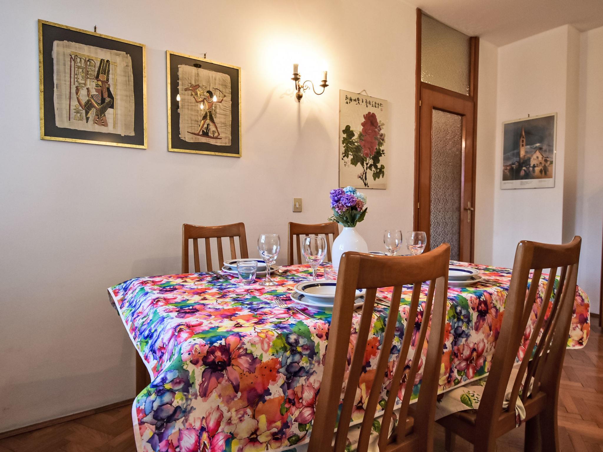 3-room apartment 65 m2 on 1st floor. Bright, practical and comfortable furnishings: living/dining room with dining table and TV. Exit to the terrace. 1 room with 1 x 2 bunk beds. Exit to the terrace. 1 double bedroom. Exit to the terrace. Small kitchen (4 induction hot plates, toaster, kettle, microwave, freezer) with small dining table. Exit to the terrace. Shower/bidet/WC. Heating. Parquet floors. Large terrace 20 m2. Terrace furniture, deck chairs (2). View of the mountains. Facilities: washing machine, children's high chair, baby cot, hair dryer. Internet (WiFi, free). Please note: suitable for families. Non-smokers only. Smoke alarm, fire extinguisher. IT014009C2VR6VO5X5