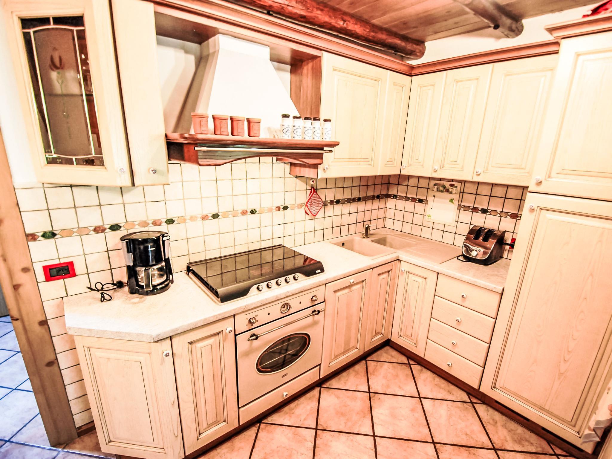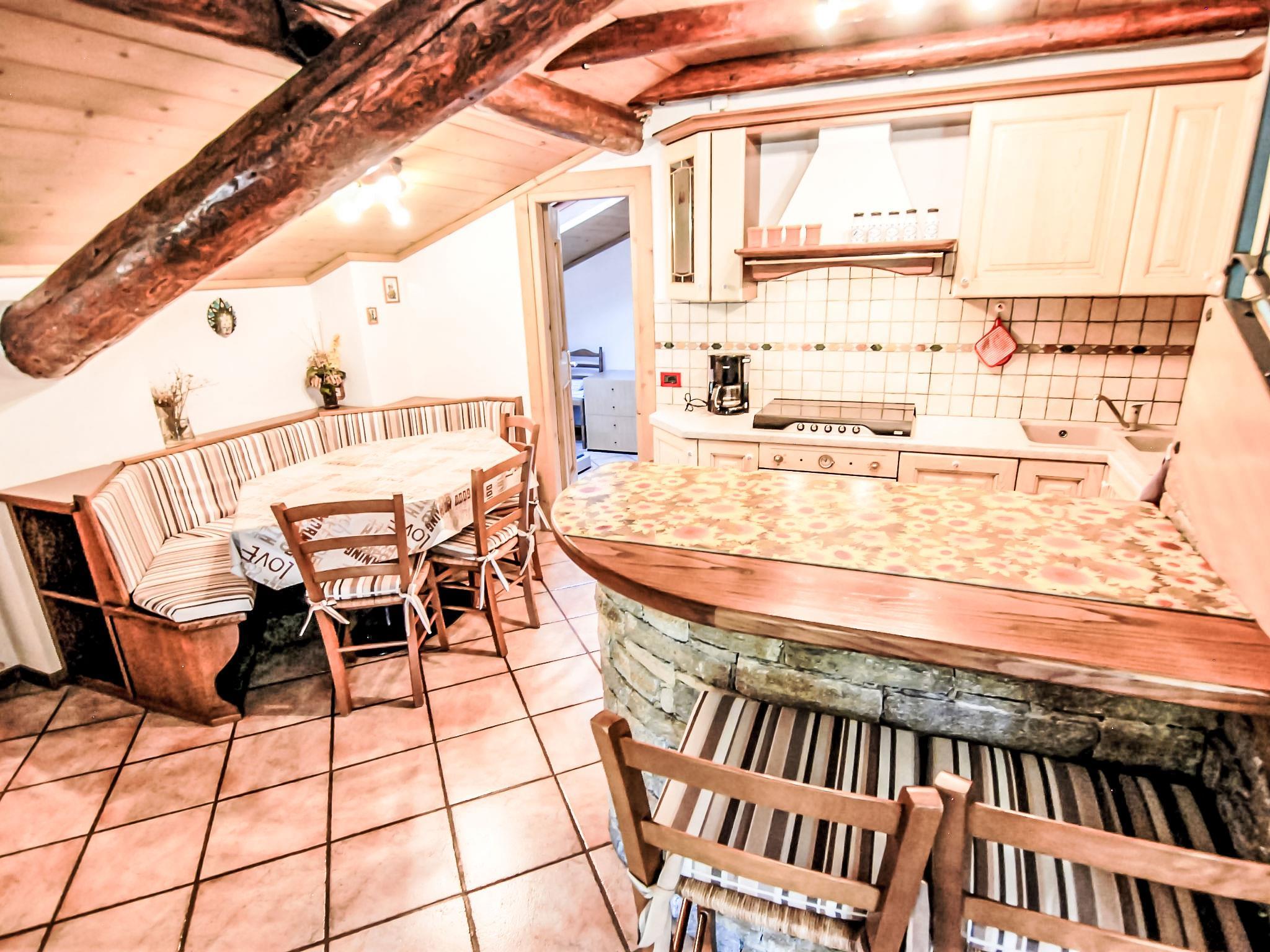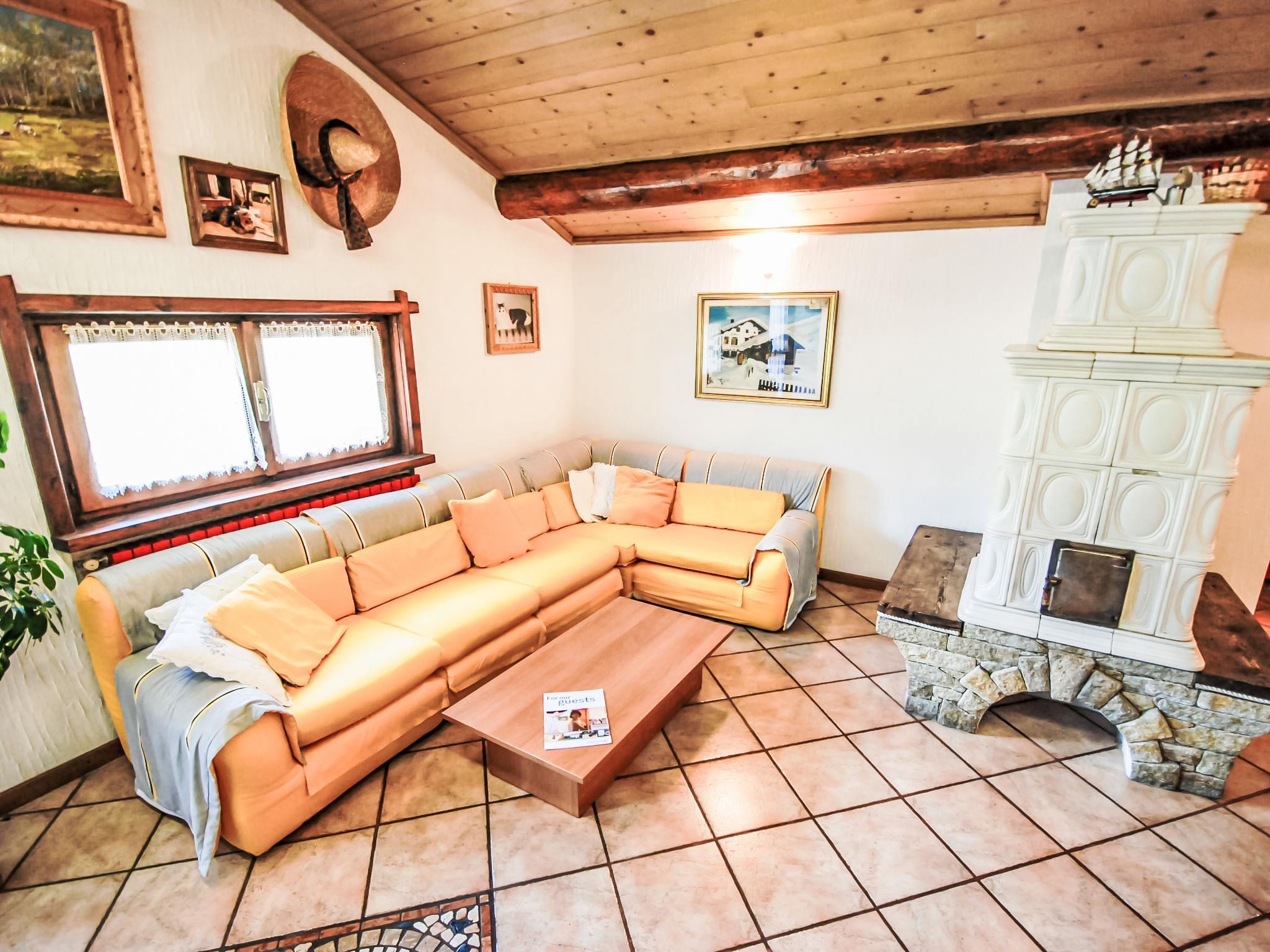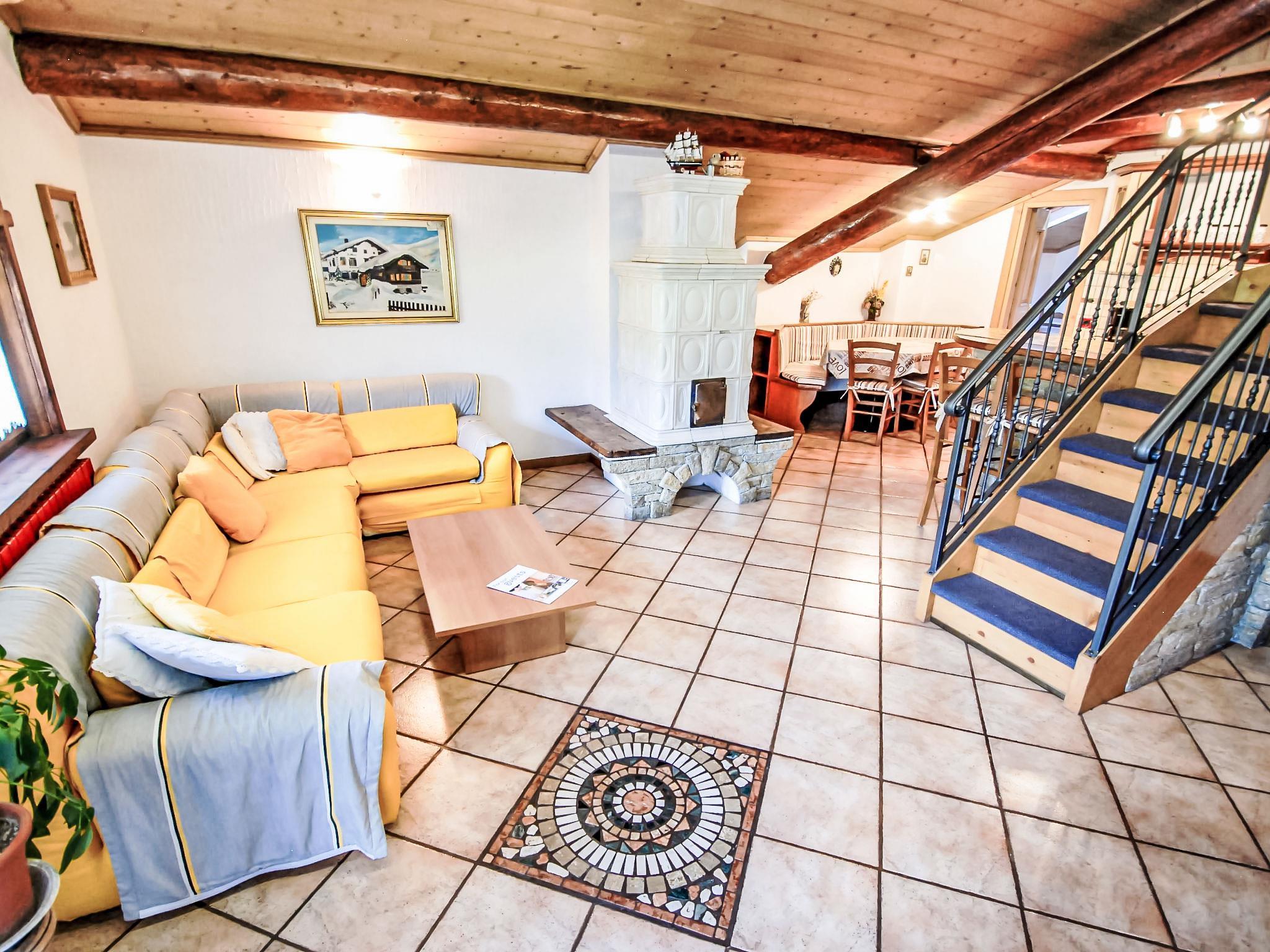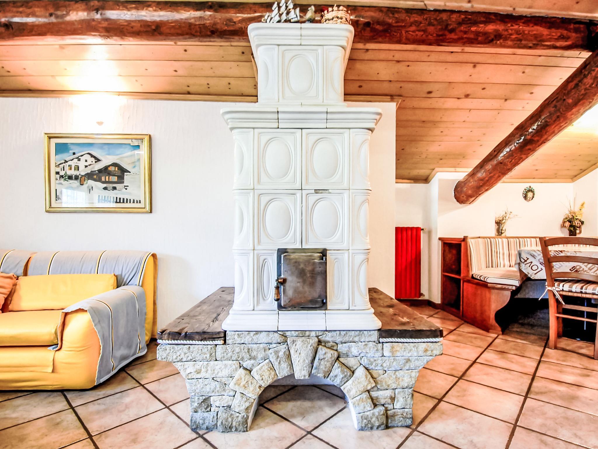 4-room apartment 90 m2 on 2nd floor. Bright, partly with sloping ceilings, comfortable and cosy furnishings: living/dining room with Scandinavian wood stove, dining table, dining nook and TV. Exit to the balcony, south facing position and east facing position. 1 room with 1 french bed. 1 room with 1 french bed. 1 room with 1 french bed. Kitchenette (5 hot plates, oven, dishwasher, freezer) with bar. Bath/shower/bidet/WC. Heating. Beautiful panoramic view of the mountains and the valley. Facilities: Internet (WiFi, free). IT014072C25XIV4VEX