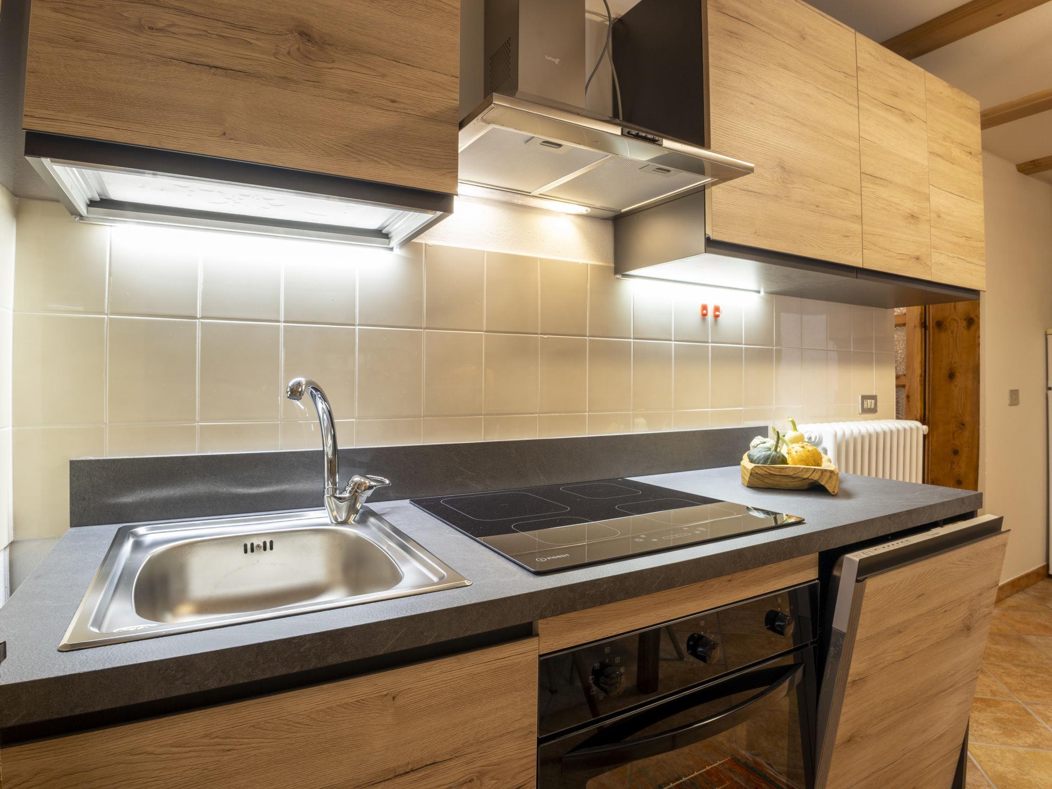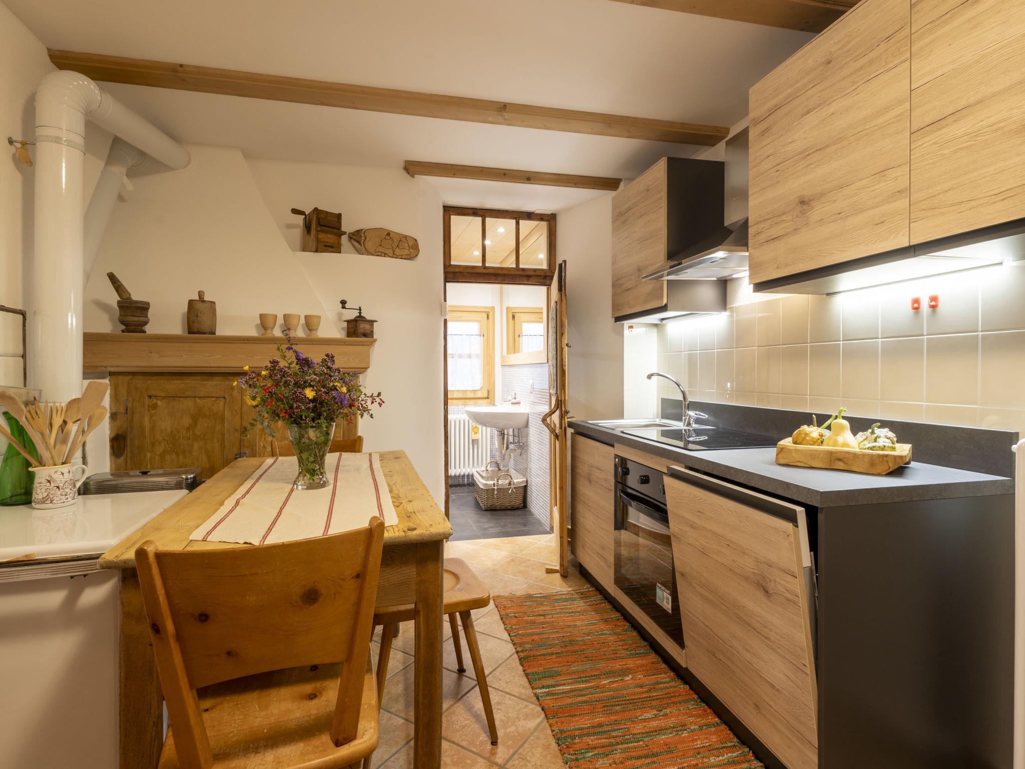 3-room apartment 98 m2 on 1st floor. Comfortable and wooden furniture furnishings: living/dining room with dining table and TV. 1 room with 2 beds. 1 double bedroom. Kitchen in the entrance (oven, dishwasher, 4 induction hot plates, toaster, kettle, freezer, electric coffee machine, Capsules for coffee machine (Nespresso) free) with open-hearth fireplace and Scandinavian wood stove (only for decoration). Shower/bidet/WC. Heating. Parquet floors. Beautiful panoramic view of the mountains and the valley. Facilities: children's high chair, baby cot, hair dryer. Internet (WiFi, free). Please note: suitable for families. Non-smokers only. Smoke alarm, fire extinguisher, no lift. IT014072C2T9NQDE44