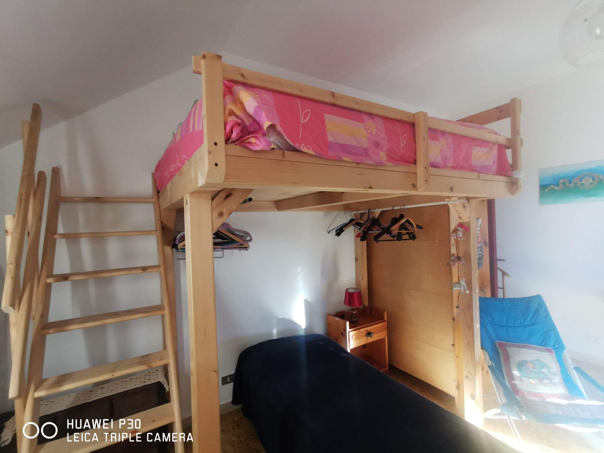 This cosy flat can comfortably accommodate its guests thanks to 2 bedrooms and 2 bathrooms with shower. The accommodation includes one bedroom furnished with a double bed and 2 single beds, wardrobe, table and bedside tables, as well as a private bathroom. The other bedroom has a loft bed and a single bed, also with its own private bathroom. In the living room, which is spacious and has a well-equipped kitchenette, you will also find a sofa bed, a dishwasher, washing machine, iron and ironing board, and of course, WiFi available throughout the house.