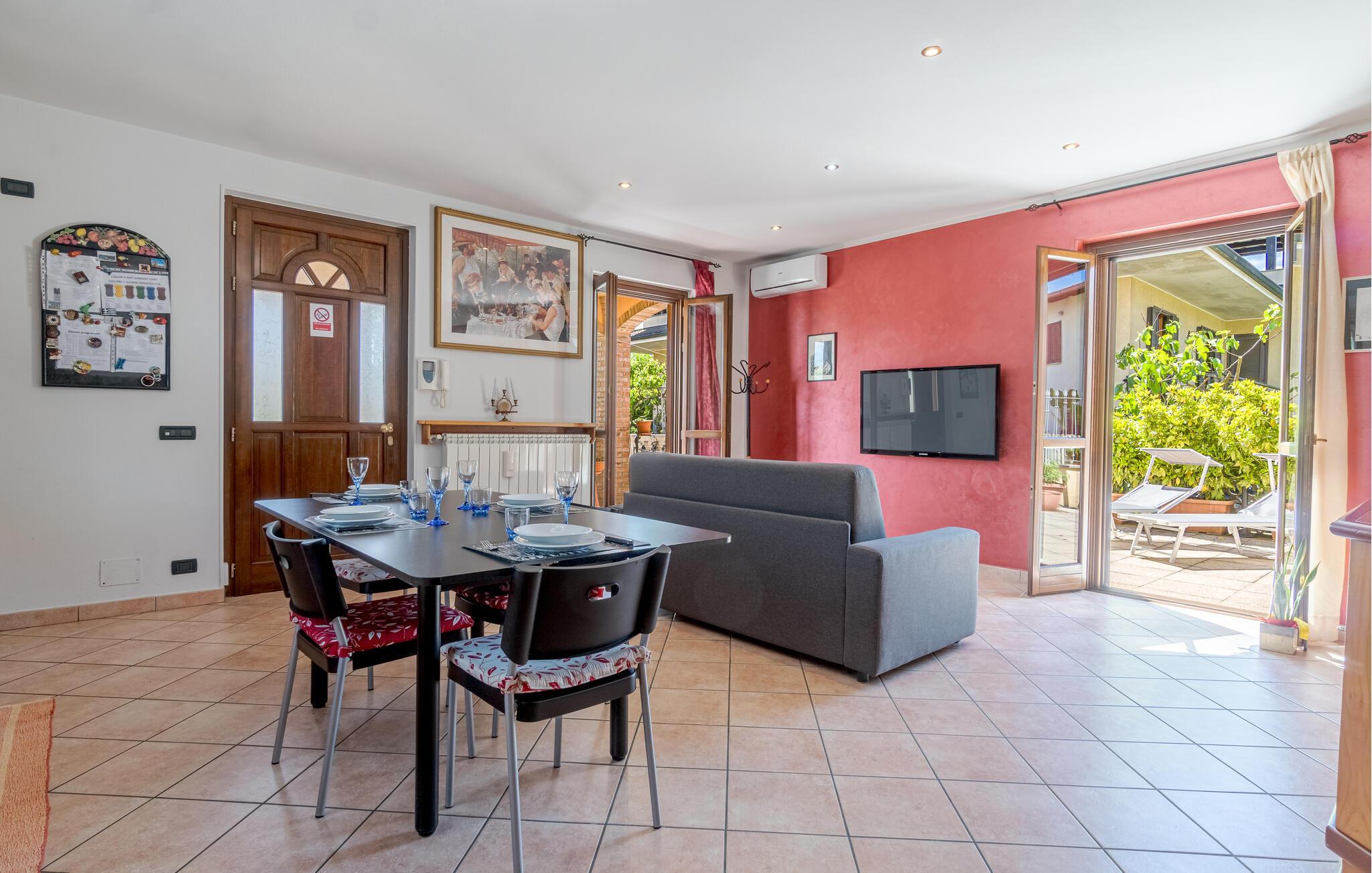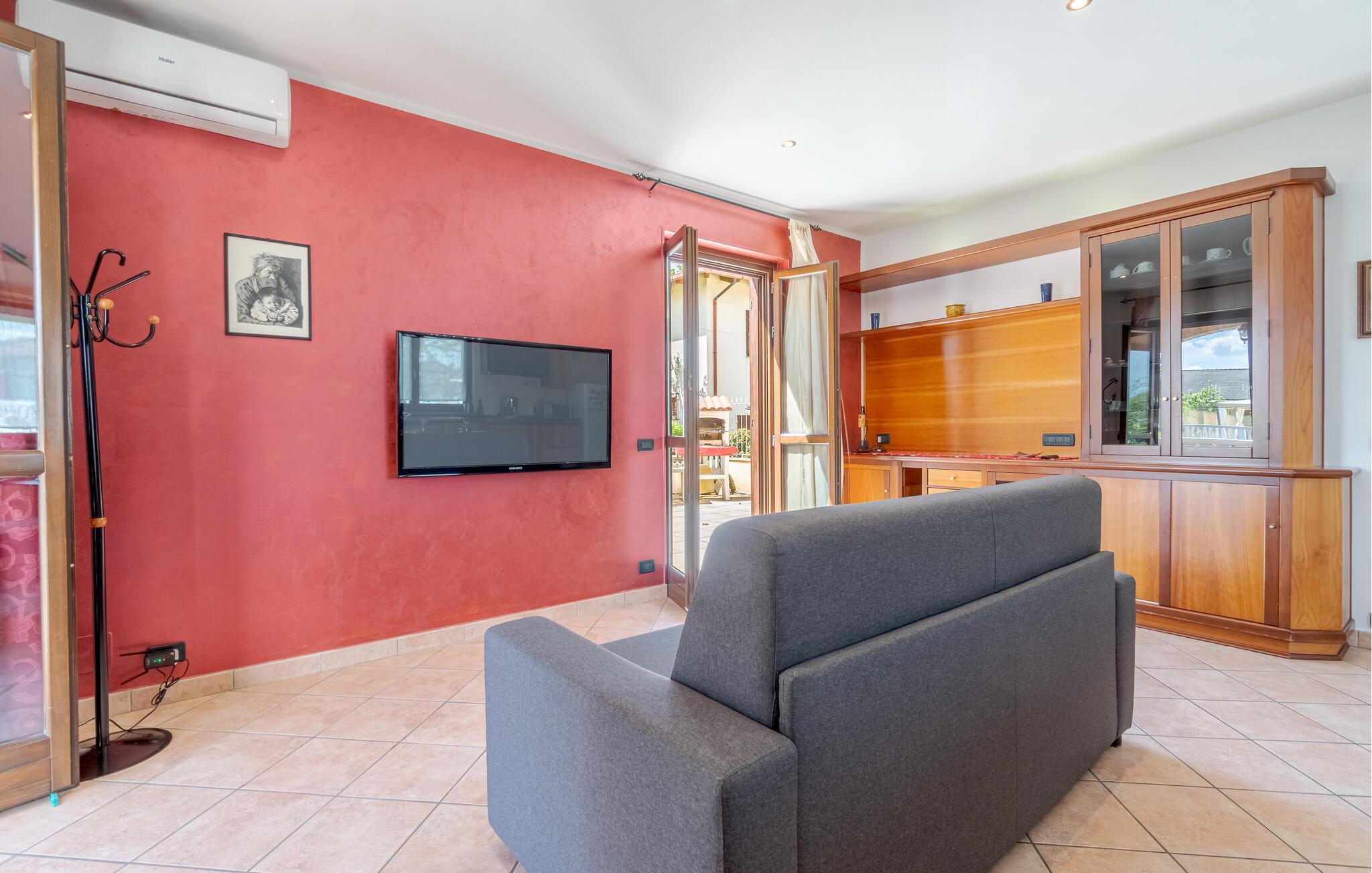 Velkommen i denne rummelige feriebolig med hyggelige og rustikke møbler. Stuen kombinerer køkken, spiseplads, komfortable møbler samt fjernsyn. Huset giver plads nok til at kunne tage jeres husdyr med og lade dem løbe frit rundt udenfor. Opholdsrummet inviterer til hyggelige stunder omkring måltiderne, mens terrassen lægger op til at nyde morgenmaden i skyggen og sætte sig til rette i solen.