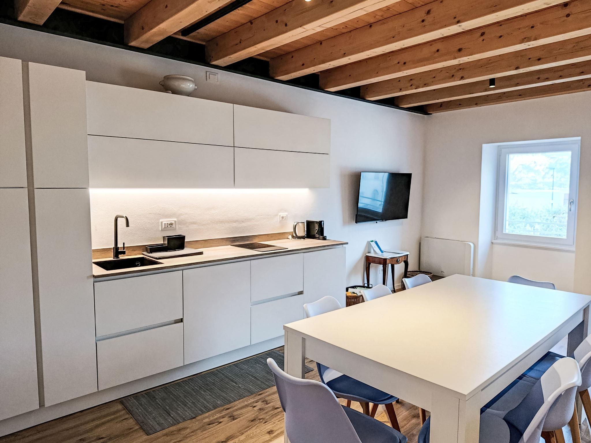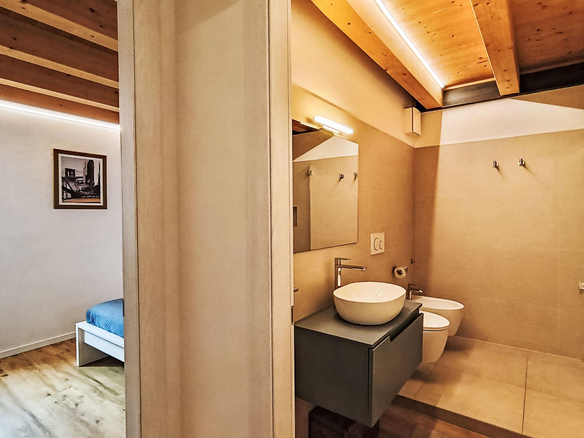 "Panorama", 3-room apartment 80 m2. Spacious and bright, modern and cosy furnishings: living/sleeping room with 1 sofabed and TV (flat screen). 2 double bedrooms. Kitchen (dishwasher, 2 induction hot plates, kettle, freezer, electric coffee machine) with dining table. Shower/WC, shower/bidet/WC. Heating, air-conditioning. Heating available only from 15.11. to 30.04. Wooden floors. Panoramic view of the lake. Facilities: iron, hair dryer. Internet (WiFi, free). Parking (1 car) at the house. Please note: fire extinguisher. IT023014C2ZDKZSC4E