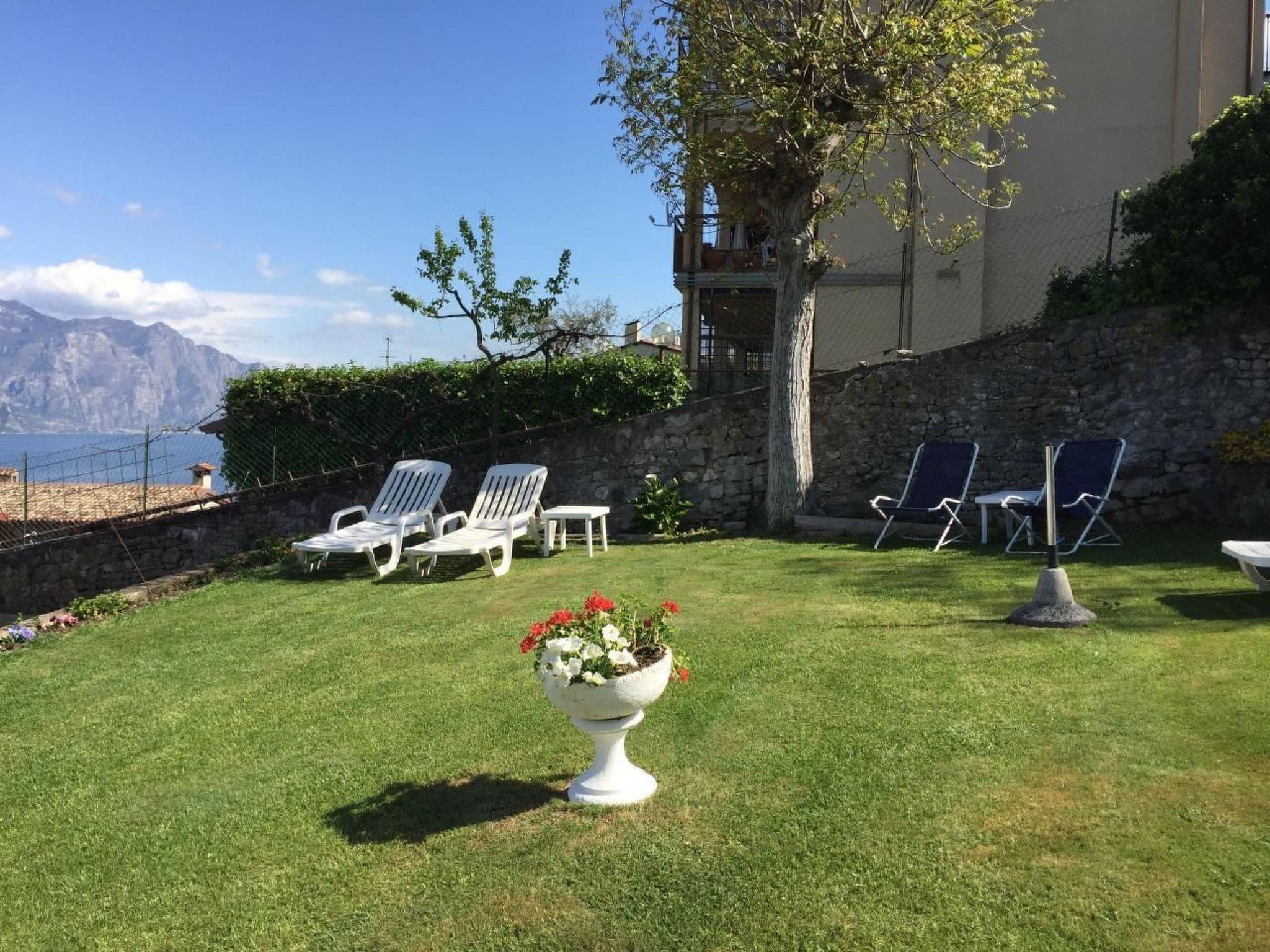 The garden is a dream, very well maintained, sunbeds, wooden benches, fireplace with barbecue, a view over Lake Garda on the west side, like a postcard motif, beautiful location with a view of the lake, very quiet and without traffic in the vicinity, pets are allowed. This small apartment is perfect for two people. It has recently been completely renovated and the ceiling height is 2.10 metres.
