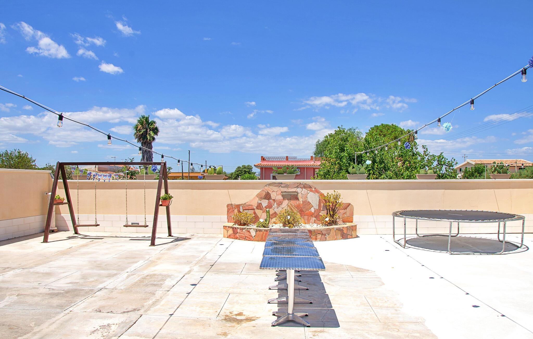 Kombiner afslappende timer ved poolen med spændende eventyr langs Siciliens østkyst, ideelt til en varieret ferie. Det farverige interiør i jeres feriehus skaber en venlig og indbydende atmosfære. Start dagen med en afslappet morgenmad ved spisebordet, eller gå ud på terrassen og nyd morgenens ro. Bagefter kan I forkæle jer selv med en forfriskende dukkert i den private pool. Udenfor inviterer en gynge og trampolin de yngre gæster til at lege og have det sjovt, mens de voksne slapper af i skyggen på den overdækkede terrasse.