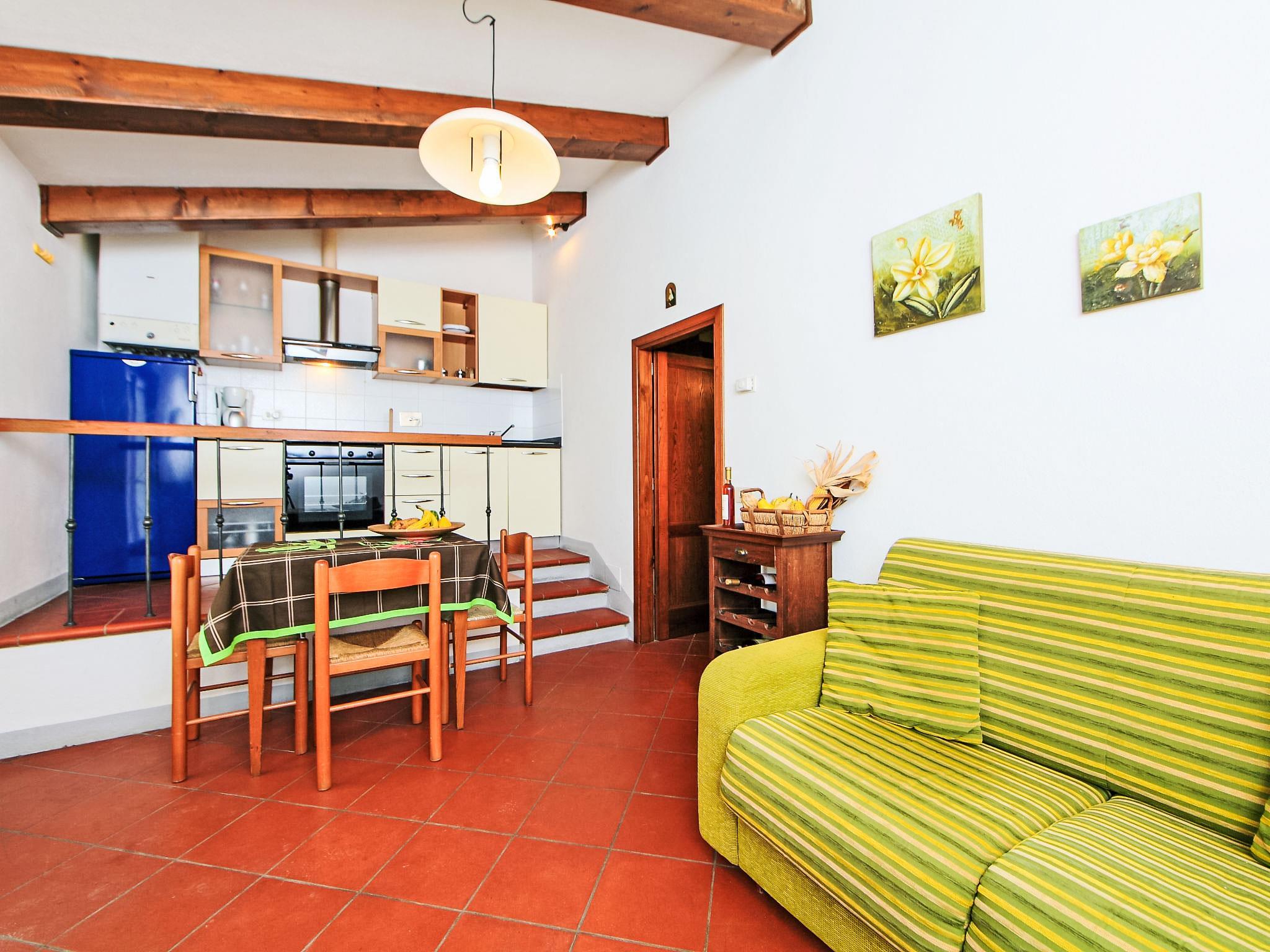 "Simone", 2-room apartment 35 m2, on the ground floor. Practical and cosy furnishings: living/dining room with satellite TV. Exit to the garden. 1 double bedroom with air conditioning and forced-air heating. Kitchenette (4 hot plates, oven, kettle, freezer). Shower/bidet/WC. Small garden. Terrace furniture. Please note: maximum 1 pet/ dog allowed. There are 3 steps from the living room to the kitchenette and also from the bedroom to the bathroom. IT051005B5WYUNTVXP