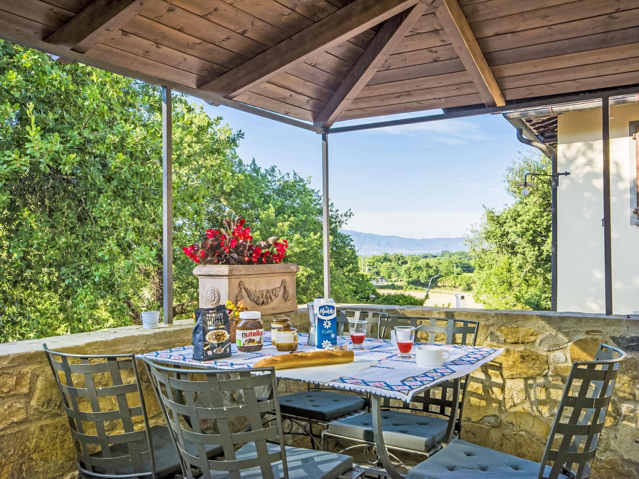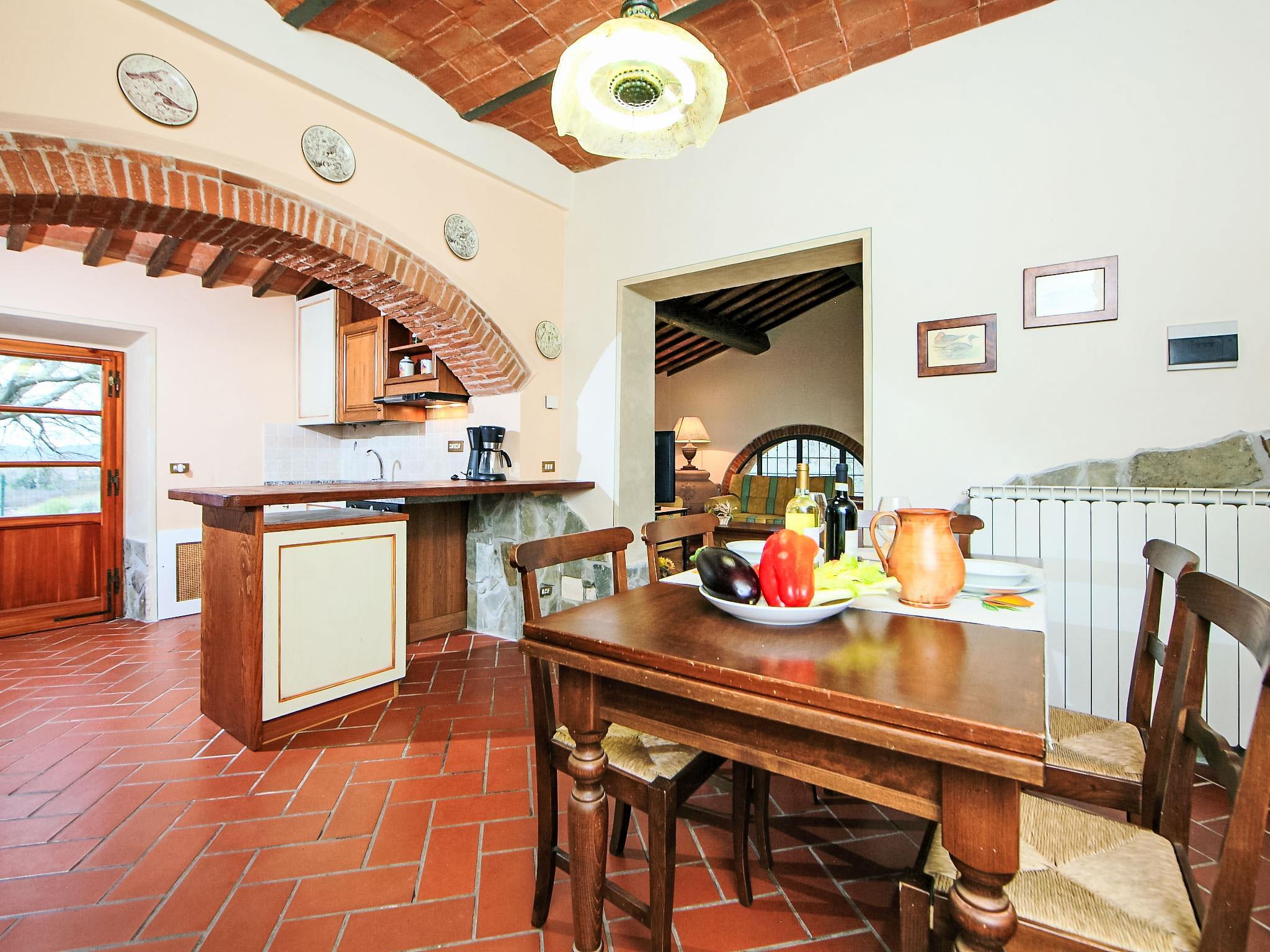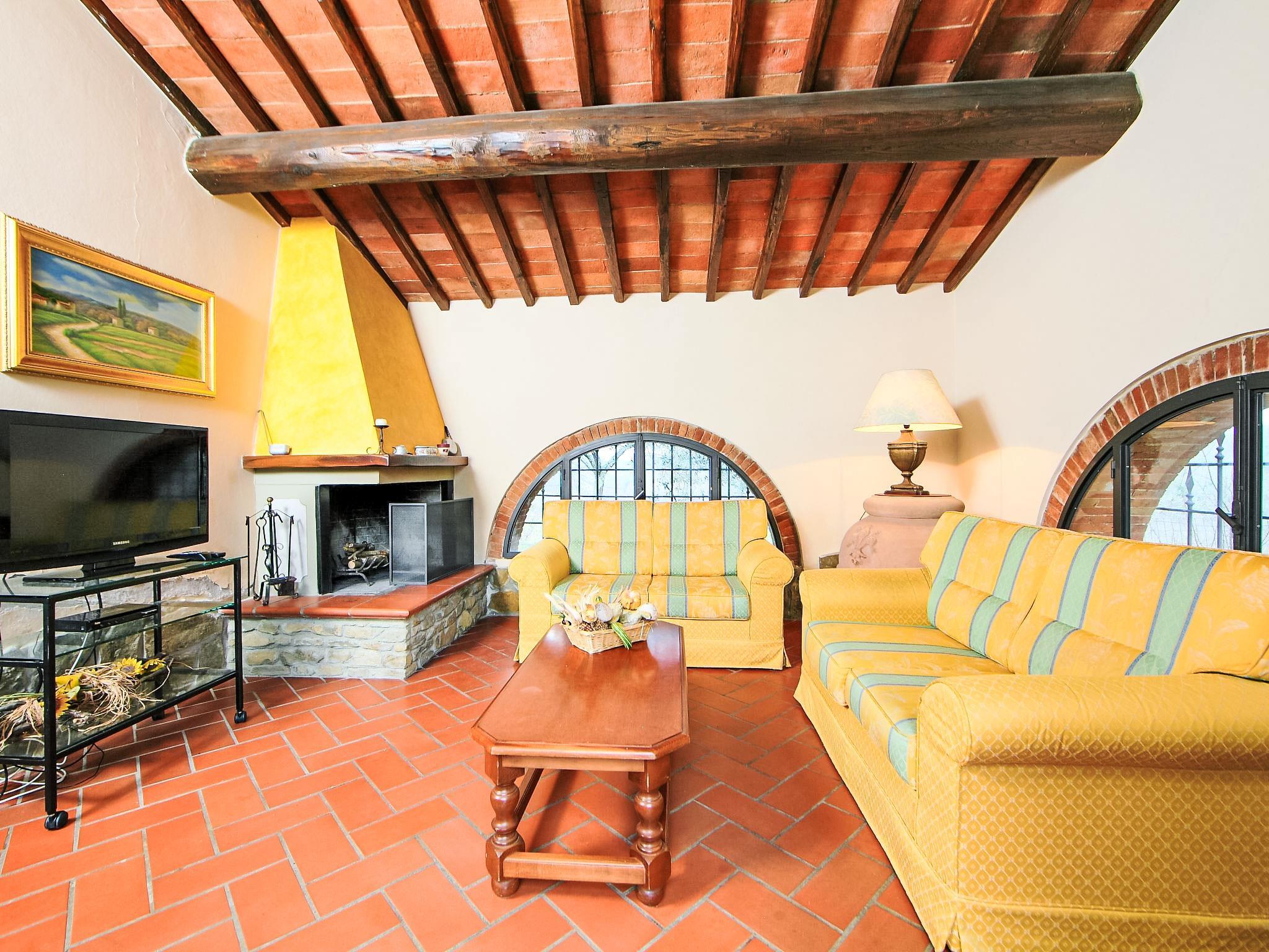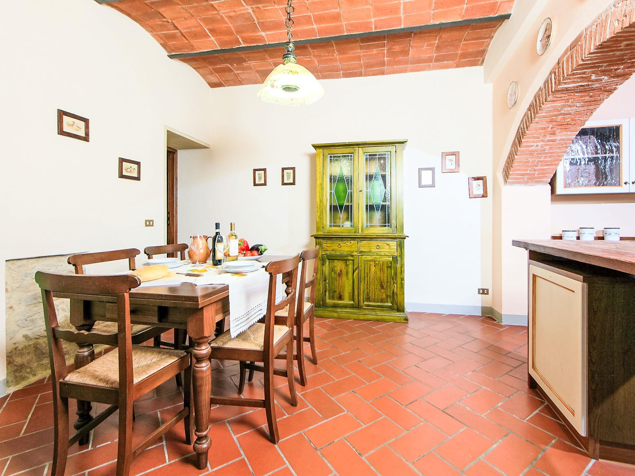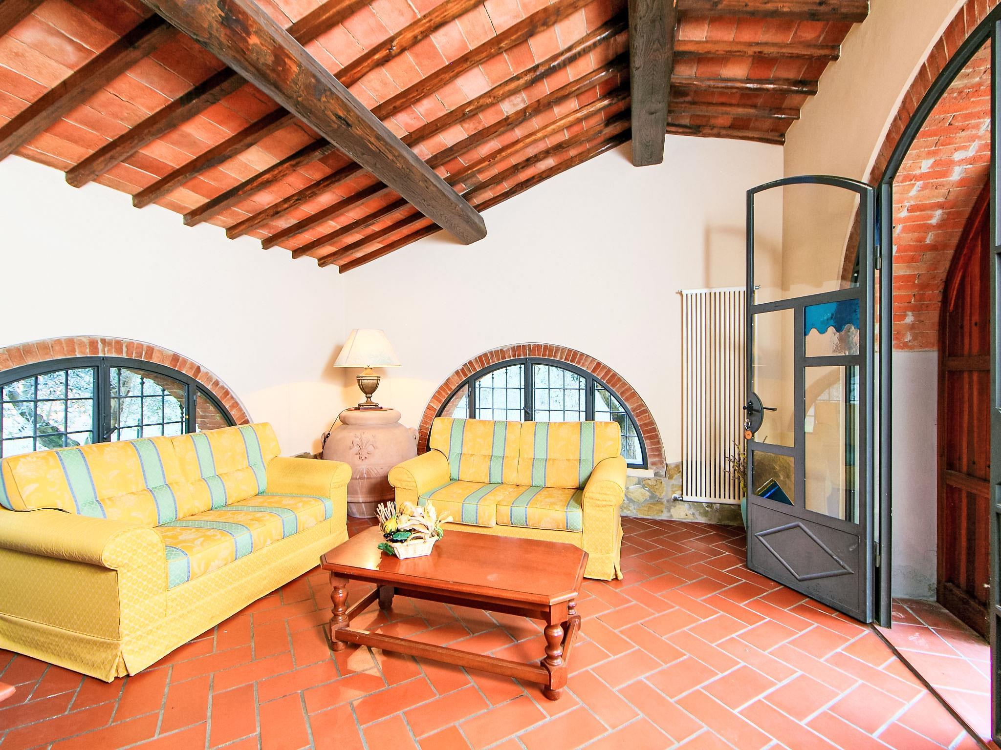 Country estate producing pure olive oil and DOCG Chianti wine. It is possible to take part in the grape harvest at the end of September and the olive harvest in November. The enclosed grounds of vines and olive groves are 8 ha in size, situated in typical Tuscan countryside. In the centre of the Florence/Siena/Arezzo triangle, in the best starting location for cultural trips which, on request, can be organized by the owner along with transport and excursions (extra). Every service available in Bucine. Spaccio Prada, 3 km. Large working farm "Le Mura", renovated, surrounded by trees and fields. 9 apartments in the property. 3 km from the centre of Bucine, 25 km from the centre of Arezzo, 35 km from the centre of Siena, in a quiet position on top of a hill, in the countryside. For shared use: swimming pool (7 x 14 m, depth 160 - 160 cm, seasonal availability: 20.May. - 30.Sep.) with internal staircase. Outdoor shower, children's playground (slide, swing). In the complex: restaurant, WiFi, sun terrace, central heating system, washing machine (for shared use, extra), heating to be paid on the spot, heating available only from 01.Nov. - 15.Apr.. Linen change (suppl. charge extra). Room cleaning on request (extra). House maid on request (extra). Motor access to the house. Parking at the house. Grocery 3 km, supermarket 3 km, restaurant 3 km, bus stop 4 km, railway station "Bucine", thermal baths 20 km. Nearby attractions: Firenze 55 km, Siena 35 km, Arezzo 30 km. Suitable for events.