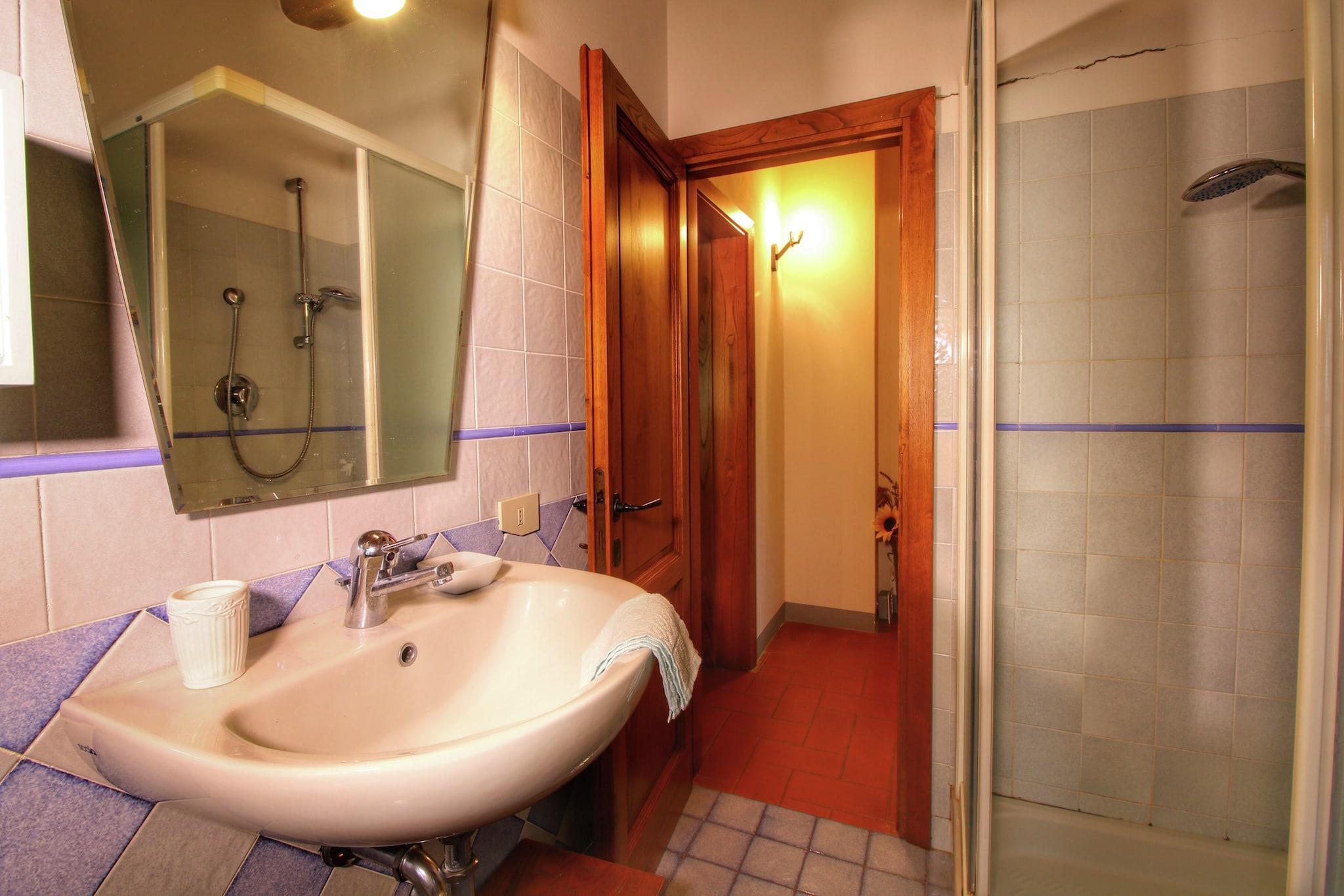 Denne bondegård i Bucine ligger i hjertet af Toscana i bakkerne omkring Ambra-dalen og er en del af agroturismen. 2 soveværelser i denne bondegård kan nemt huse 6 personer. Nyd din fredelige ferie, mens du tager et par omgange i den fælles swimmingpool med en vidstrakt udsigt. Byens centrum med restauranter og butikker ligger 3 km væk. Du kan udforske Arezzo, Siena og Firenze. Den centralopvarmede ejendom har stue og køkken i stueetagen. På 1. sal ligger soveværelserne, velholdte for at give en god nattesøvn. Udenfor er en privat og møbleret have perfekt til at dase sommerdagene væk. Parkering er på stedet. Du kan også tage de tilgængelige cykler og tage ud på en cykeltur. Børneseng kan stilles til rådighed efter anmodning. Du kan nemt komme til offentlig transport, 3 km væk.