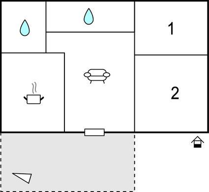 Opholdsstue/køkken - 2 Sovepladser. (Sofa, madras eller lignende).