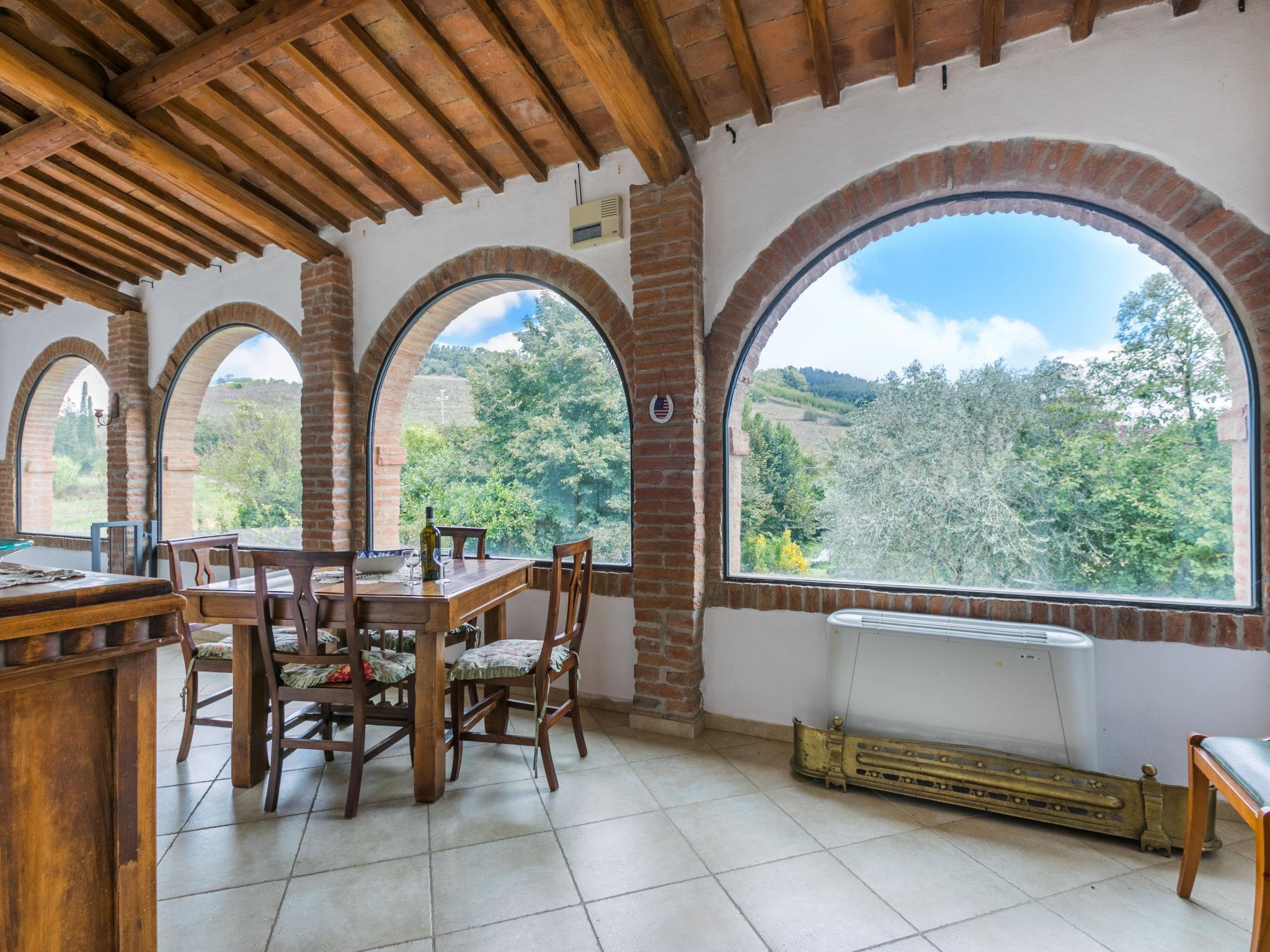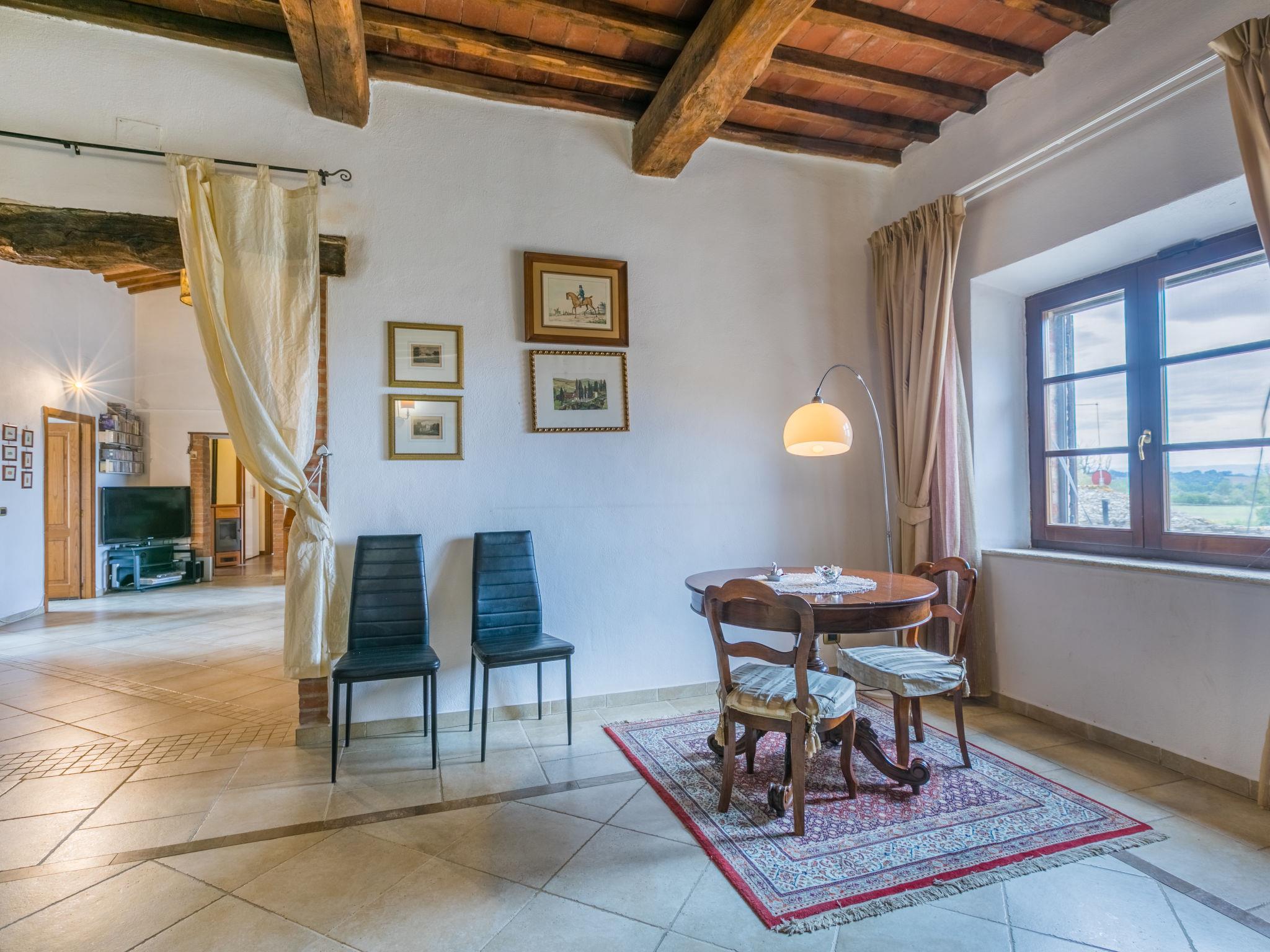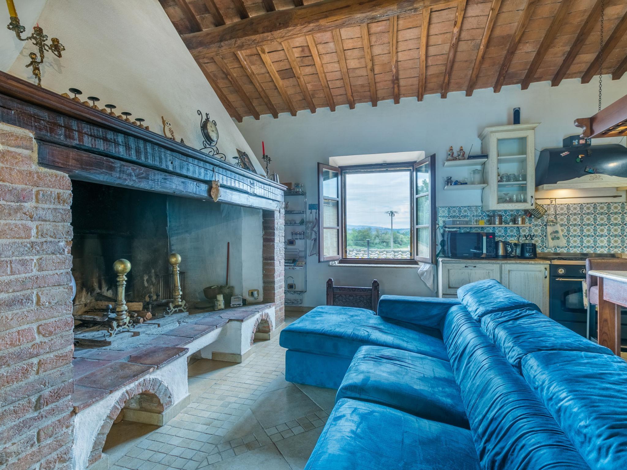 "Podere Palazzetto", 5-room semi-detached house 280 m2 on 2 levels. Spacious, renovated, comfortable and tasteful furnishings: upper floor: living room with panoramic window. Living room with 1 double sofabed, TV and flat screen. 2 double bedrooms with Dressing room. Large kitchen-/living room (oven, dishwasher, Gas stove, 5 gas rings, toaster, kettle, microwave, electric coffee machine) with dining table, open-hearth fireplace. Bath/bidet/WC, shower/bidet/WC. 2nd upper floor: 1 open large double bedroom with shower/bidet/WC. Gas heating, air-conditioning. Natural stone floors. Patio. Terrace furniture, barbecue, deck chairs, covered balcony, box-room. Beautiful panoramic view of the countryside. Facilities: washing machine, iron, mosquito net, children's high chair, baby cot for up to 2 year olds, hair dryer, logs (extra). Internet (WiFi, free). Parking at the house. Please note: non-smokers only. Maximum 1 pet/ dog allowed. The pool mentioned in the description is for private use. IT052003C2IWB3GK4S