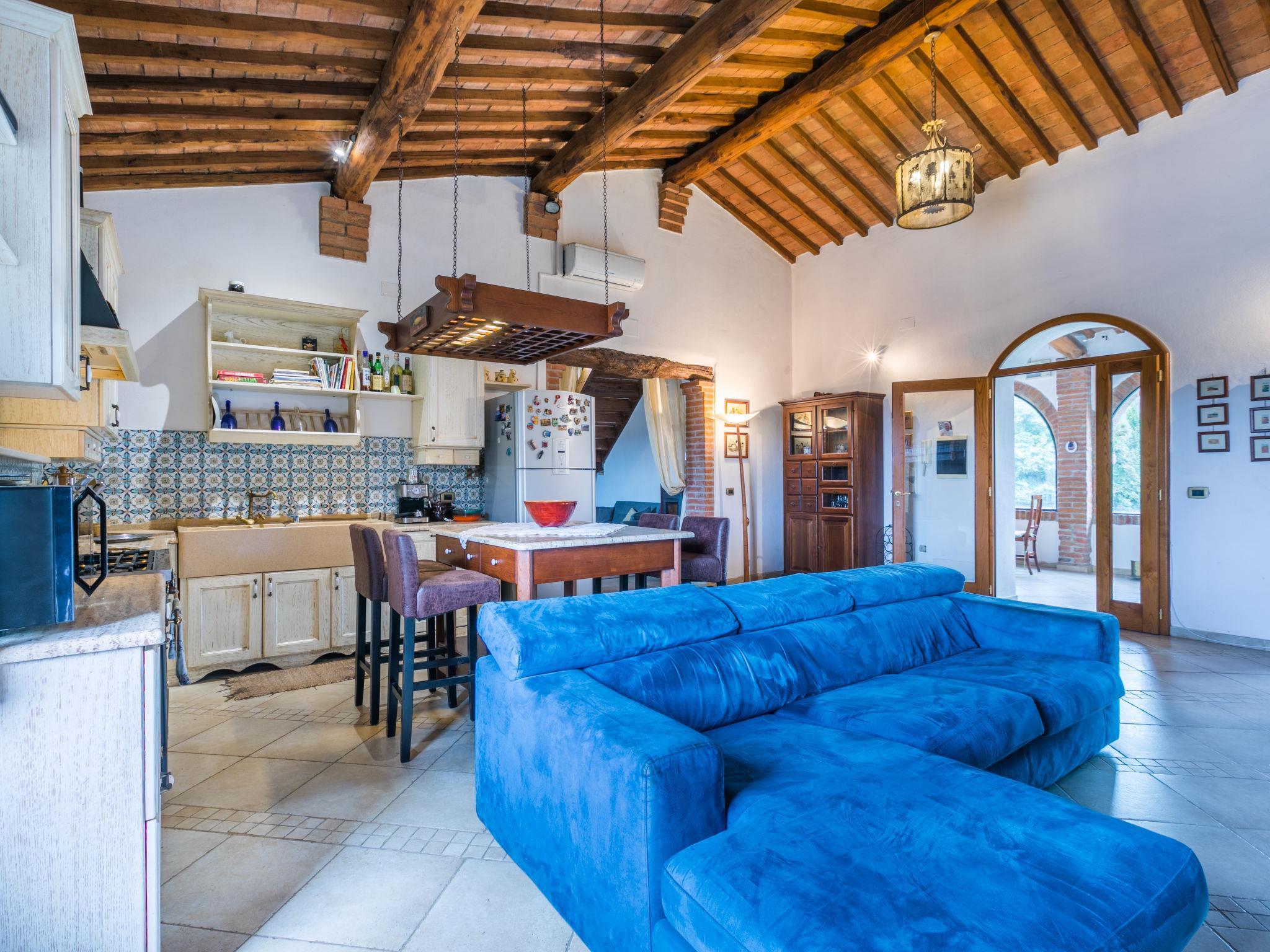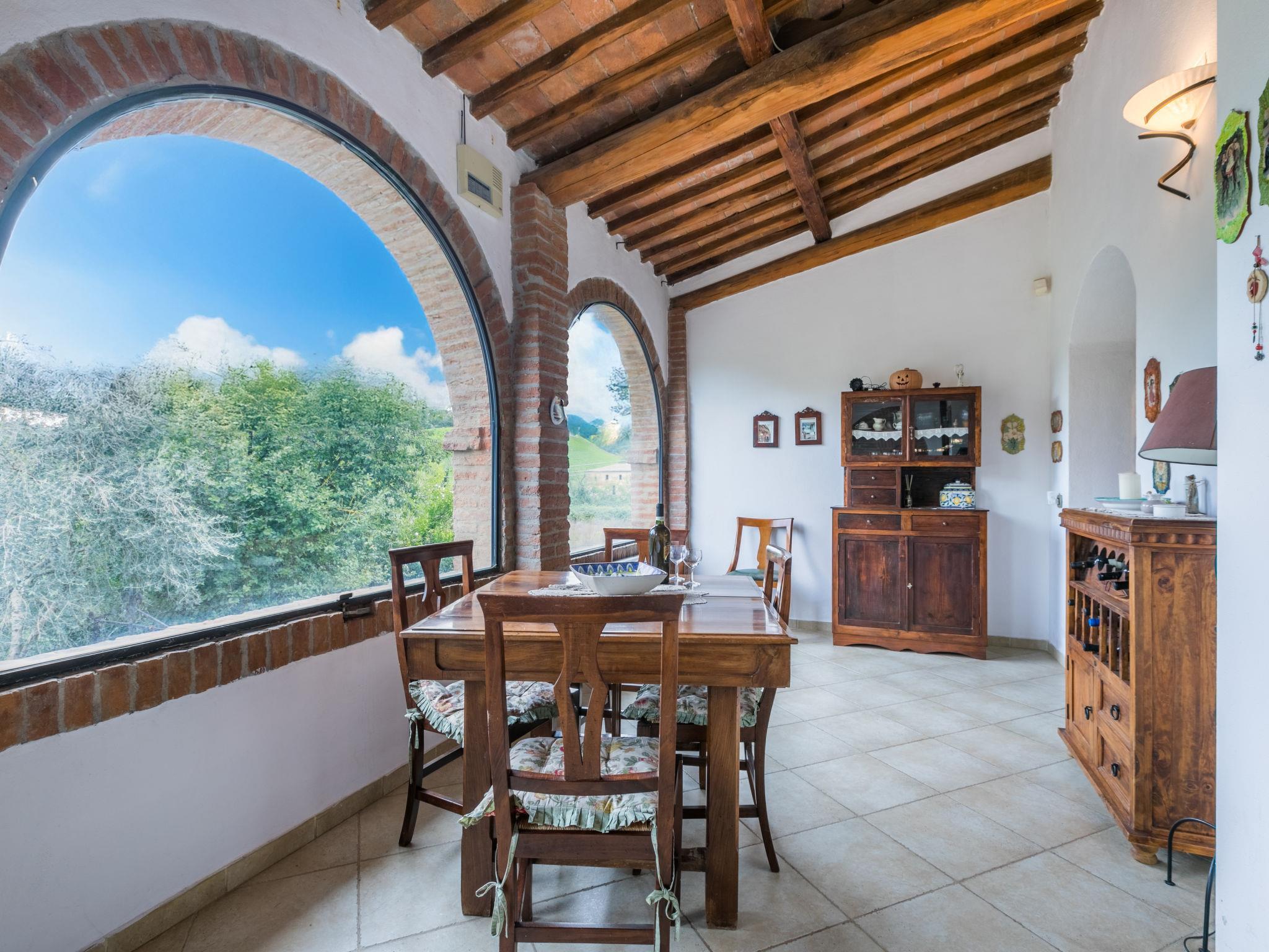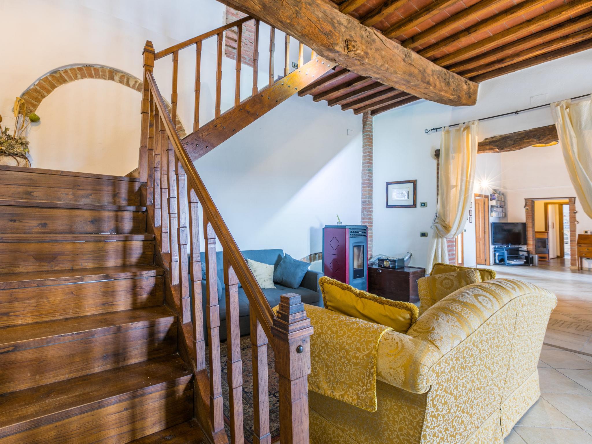 "Podere Palazzetto", 5-room semi-detached house 280 m2 on 2 levels. Spacious, renovated, comfortable and tasteful furnishings: upper floor: living room with panoramic window. Living room with 1 double sofabed, TV and flat screen. 2 double bedrooms with Dressing room. Large kitchen-/living room (oven, dishwasher, Gas stove, 5 gas rings, toaster, kettle, microwave, electric coffee machine) with dining table, open-hearth fireplace. Bath/bidet/WC, shower/bidet/WC. 2nd upper floor: 1 open large double bedroom with shower/bidet/WC. Gas heating, air-conditioning. Natural stone floors. Patio. Terrace furniture, barbecue, deck chairs, covered balcony, box-room. Beautiful panoramic view of the countryside. Facilities: washing machine, iron, mosquito net, children's high chair, baby cot for up to 2 year olds, hair dryer, logs (extra). Internet (WiFi, free). Parking at the house. Please note: non-smokers only. Maximum 1 pet/ dog allowed. The pool mentioned in the description is for private use. IT052003C2IWB3GK4S