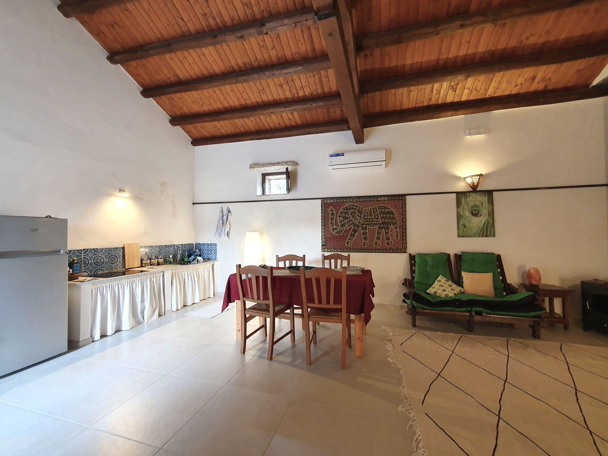 Farmhouse "Baglio Anastè", 300 m a.s.l., built in 1890, surrounded by fields. Property composed of main house and outbuilding 3.5 km from the centre of Buseto Palizzolo, 7 km from the centre of Fulgatore, 18 km from the centre of Trapani, in a sunny position, 12 km from the sea, 18 km from the beach. Private: property 1'000 m2, natural garden, orchard, swimming pool (above ground) (8 x 4 m, depth 140 cm, seasonal availability: 01.Apr. - 31.Oct.). Outdoor shower, pool maintenance by the owner/gardener. Grocery 2 km, supermarket 5.5 km, restaurant 1 km, bus stop 19 km, railway station "Trapani" 20 km, sandy beach "Cornino" 18 km. Nearby attractions: Saline di Trapani 19 km, Porto Aliscafi per Isole Egadi 20 km, Parco Archeologico di Segesta 20 km, Erice 22 km, San Vito lo Capo 33 km, Marsala 38 km. Hiking paths: Riserva Naturale dello Zingaro 24 km. Please note: car recommended. Owner lives in separate semi-detached house. The tap water has no drinking water quality.