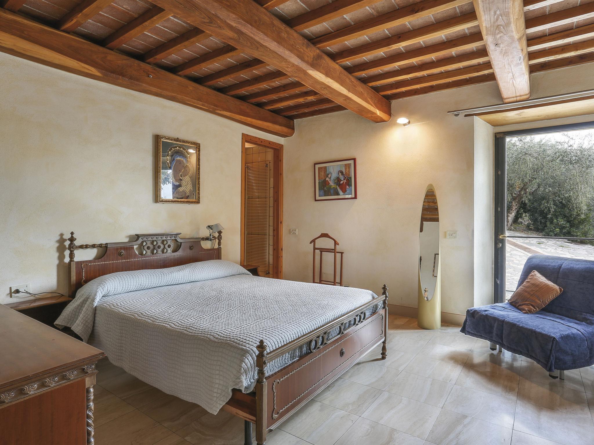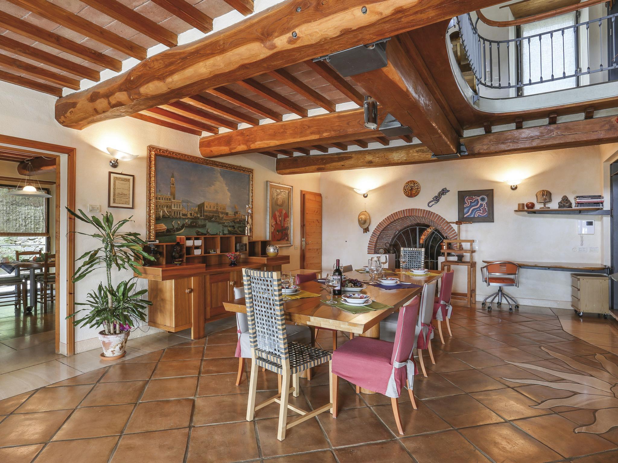 "Maestraccio", 7-room house 300 m2 on 3 levels. Beautiful and cosy furnishings: living/dining room with open-hearth fireplace, dining table and satellite TV. 1 room with 1 french bed (160 cm), shower/WC. Kitchen (6 hot plates, oven, dishwasher, microwave, freezer, electric coffee machine) with small dining table. Shower/WC. Upper floor: (spiral staircase), 1 room with 1 french bed (160 cm), shower/WC. 1 room with 2 beds. 1 room with 1 french bed (140 cm), shower/WC and double hand-basin. 2nd upper floor: (spiral staircase), 1 room with 1 french bed (160 cm), shower/WC, gas heating and air conditioning. Parquet floors. Terrace partly roofed. Terrace furniture, barbecue, box-room. Panoramic view. Facilities: washing machine, children's high chair, baby cot. Internet (WiFi, free). Please note: non-smokers only. Maximum 1 pet/ dog allowed. IT050002B49M46EK4W