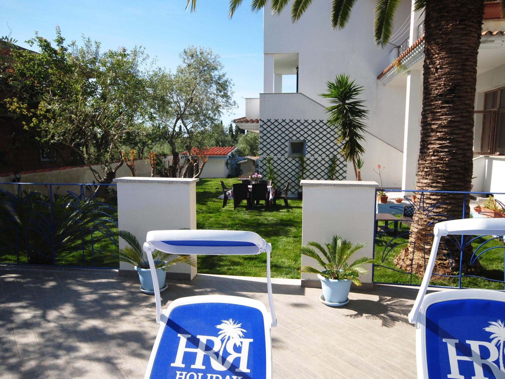 3-room flat 55 m², for 4 persons, 1st floor with 10 m² terrace, 1 large and 1 small bedroom with double bed and private bathroom. Kitchen-living room with double sofa bed. Fireplace and veranda with marvellous view of olive grove and mountains. Air conditioning/heating, fully equipped kitchen, fridge, freezer, gas hob, oven, washing machine in common room, tastefully furnished rooms (see photos, subject to change), barbecue. INCLUDED IN THE PRICE: air conditioning/heating, car park in the courtyard, WIFI, TV and towels.