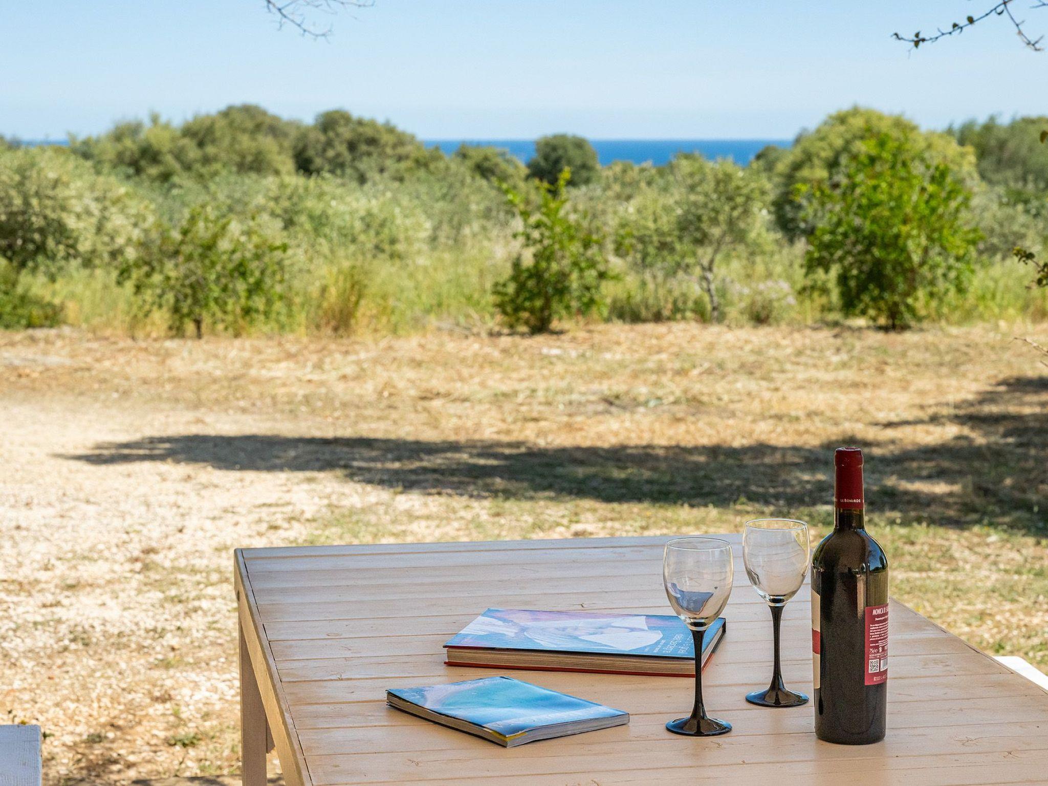 The holiday home offers cosy and functional rooms: a bright living-dining room with kitchenette on the right, ideal for cooking in company, and a comfortable sitting room with sofa on the left; the sleeping area, separated by a practical hallway, comprises two well-furnished double bedrooms and a modern bathroom with shower. Outside, a large private garden surrounds the villa, complete with an outdoor shower and a barbecue area perfectly equipped for al fresco dining, where you can enjoy the scents and colours of the Mediterranean maquis. A convenient reserved parking space completes the property, guaranteeing convenience and comfort.