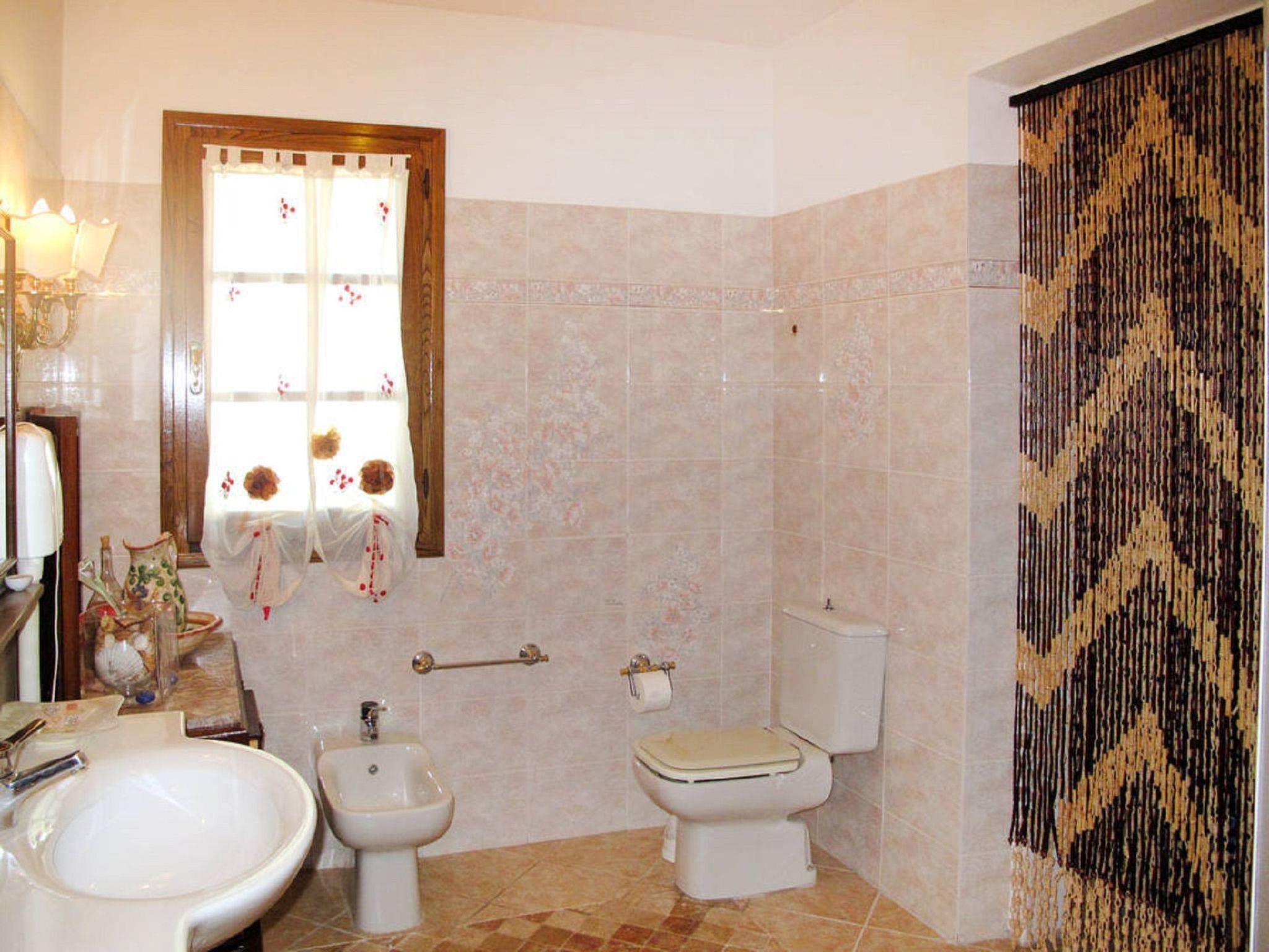 Furnishings: Attractive, rustic furnishings with lots of wood. Cotto and parquet floors. Partly wooden beamed ceilings. Satellite TV. Internet access (WLAN, included). No heating facilities. The living area of approx. 100 m² is on the ground floor. Living room with sofa bed, fireplace (decoration only) and dining area, through open brick archway to the kitchen (hobs, microwave, fridge, coffee machine). Bedroom with double bed (1.60 m wide) and balcony exit. Double bedroom (beds 0.80 m wide, can be joined together). Bathroom with shower/WC.